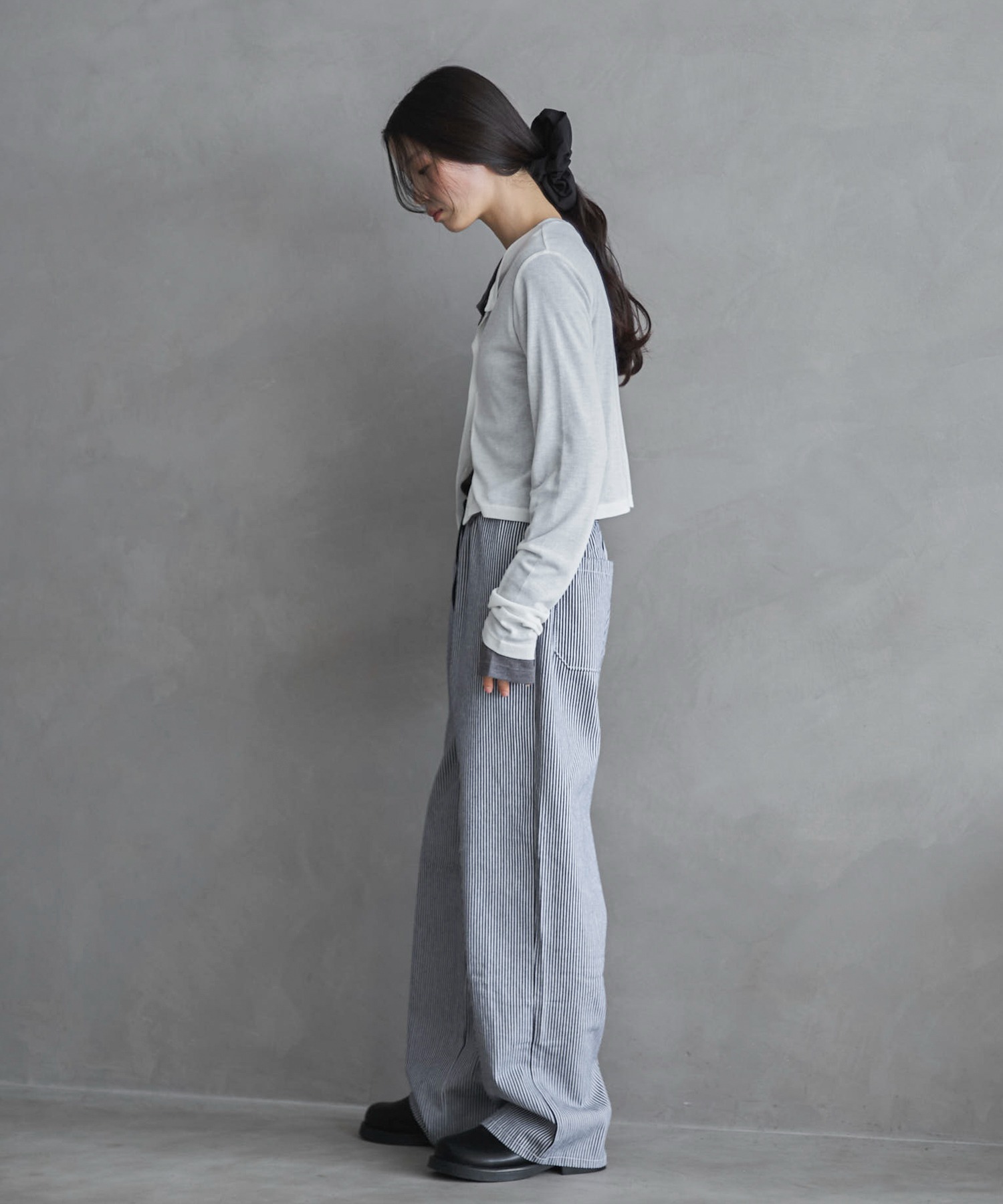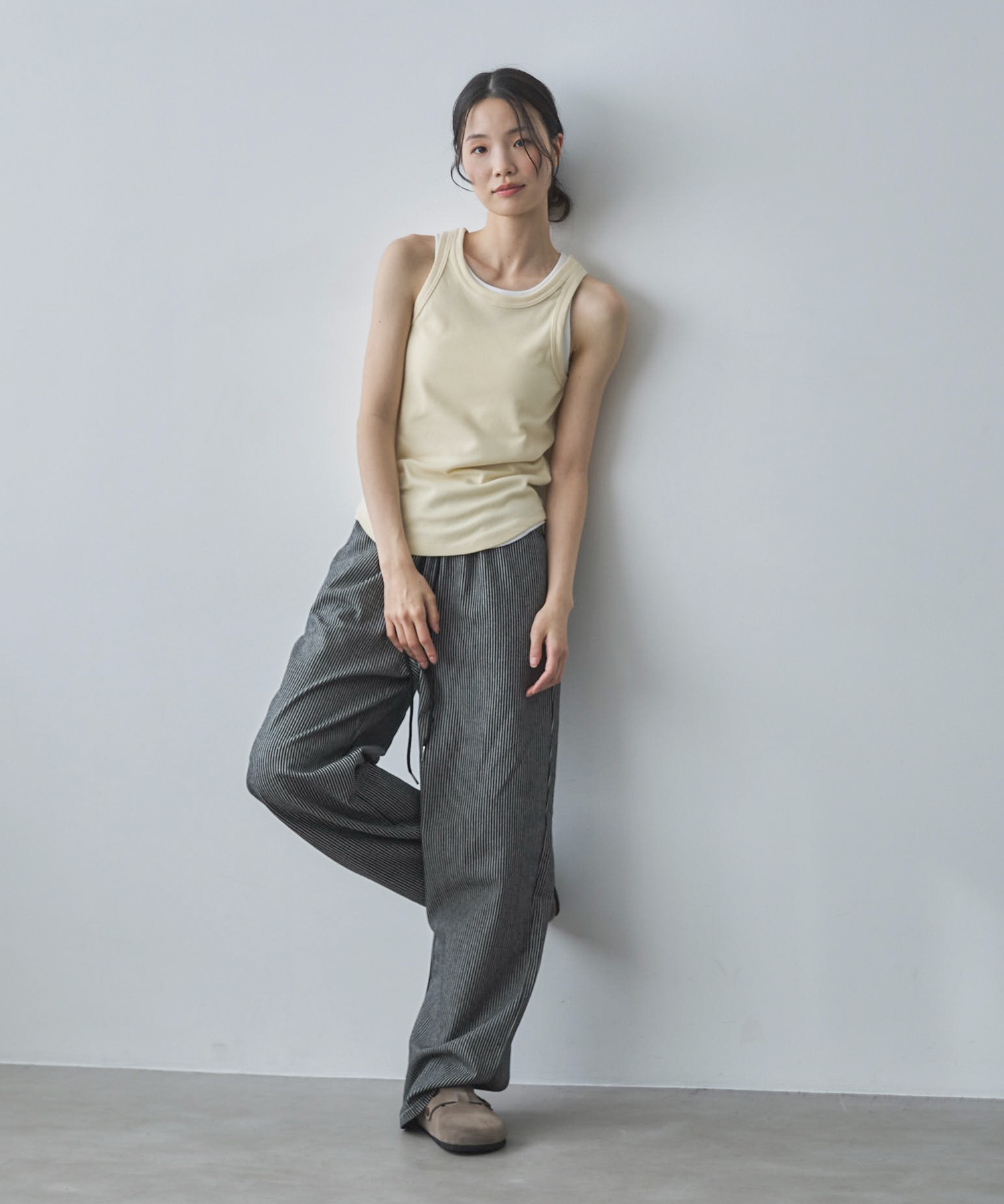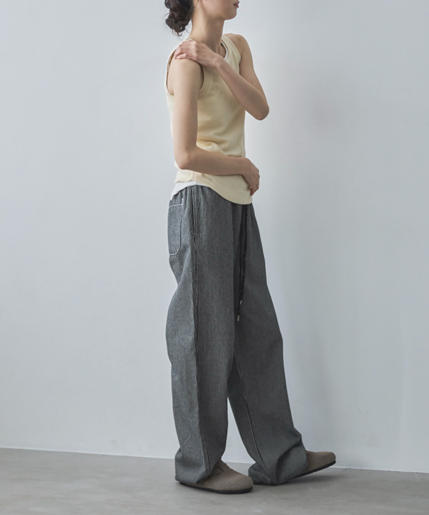 スタンダードなデニムパンツとはまた違う雰囲気で着回しが楽しめ、スタイリングの幅が広がります。