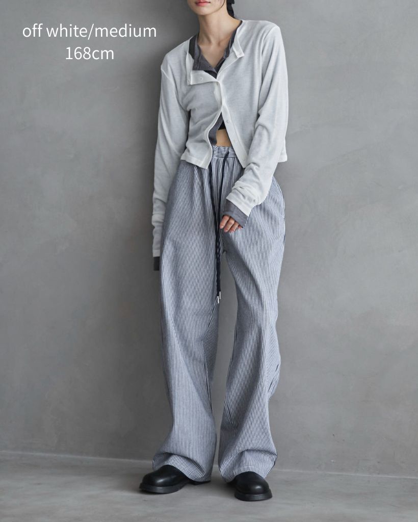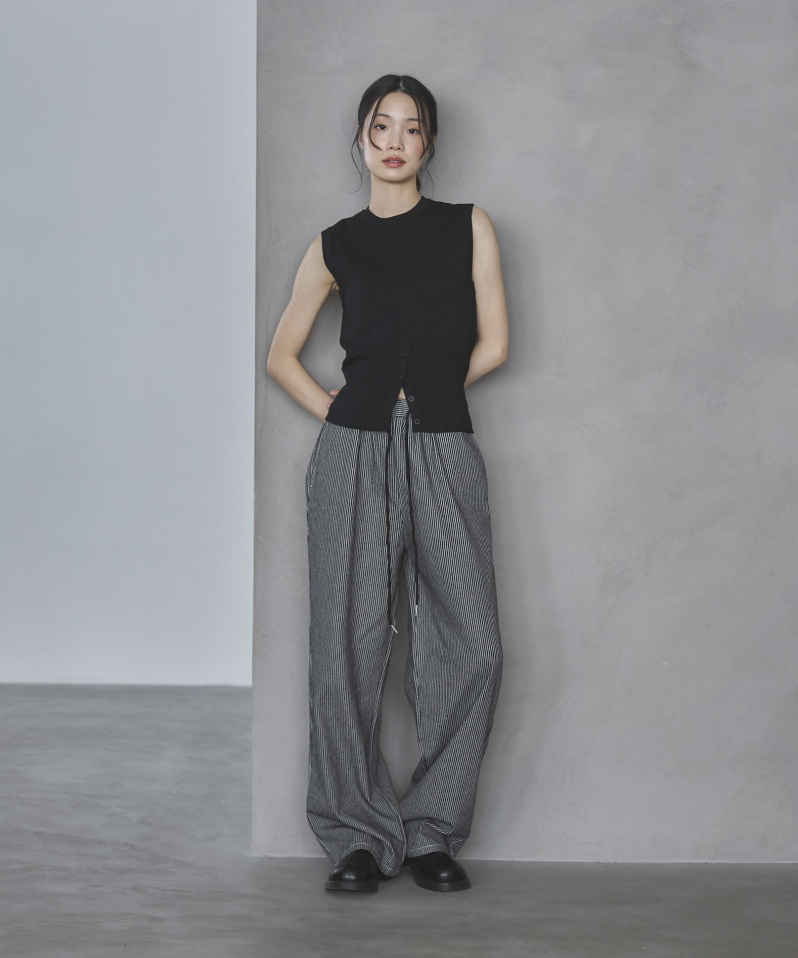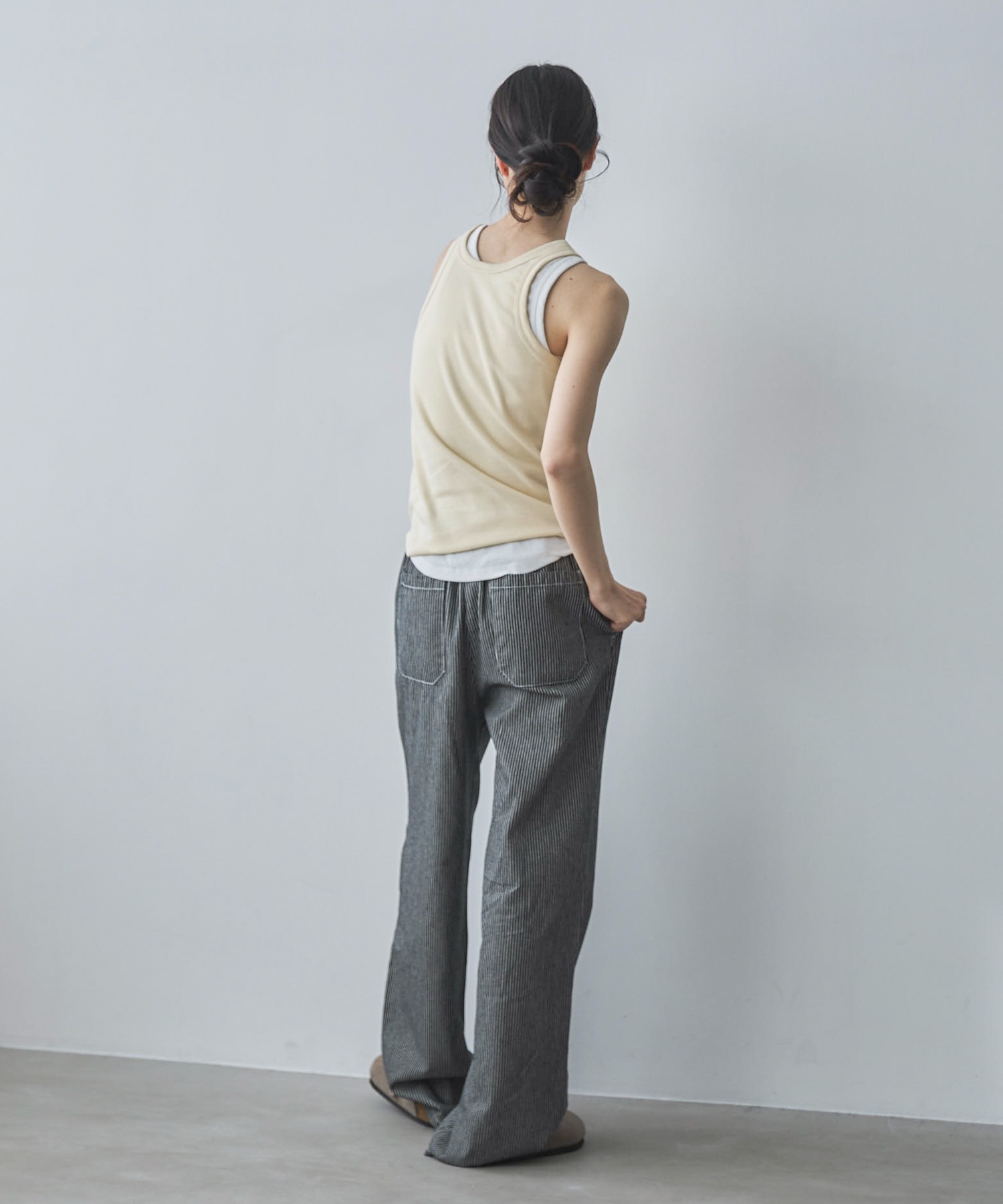 スタンダードなデニムパンツとはまた違う雰囲気で着回しが楽しめ、スタイリングの幅が広がります。