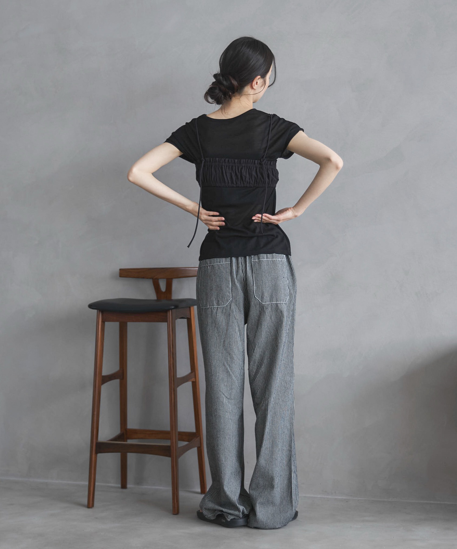 ウエスト周りはゴム仕様でノンストレスな履き心地です。