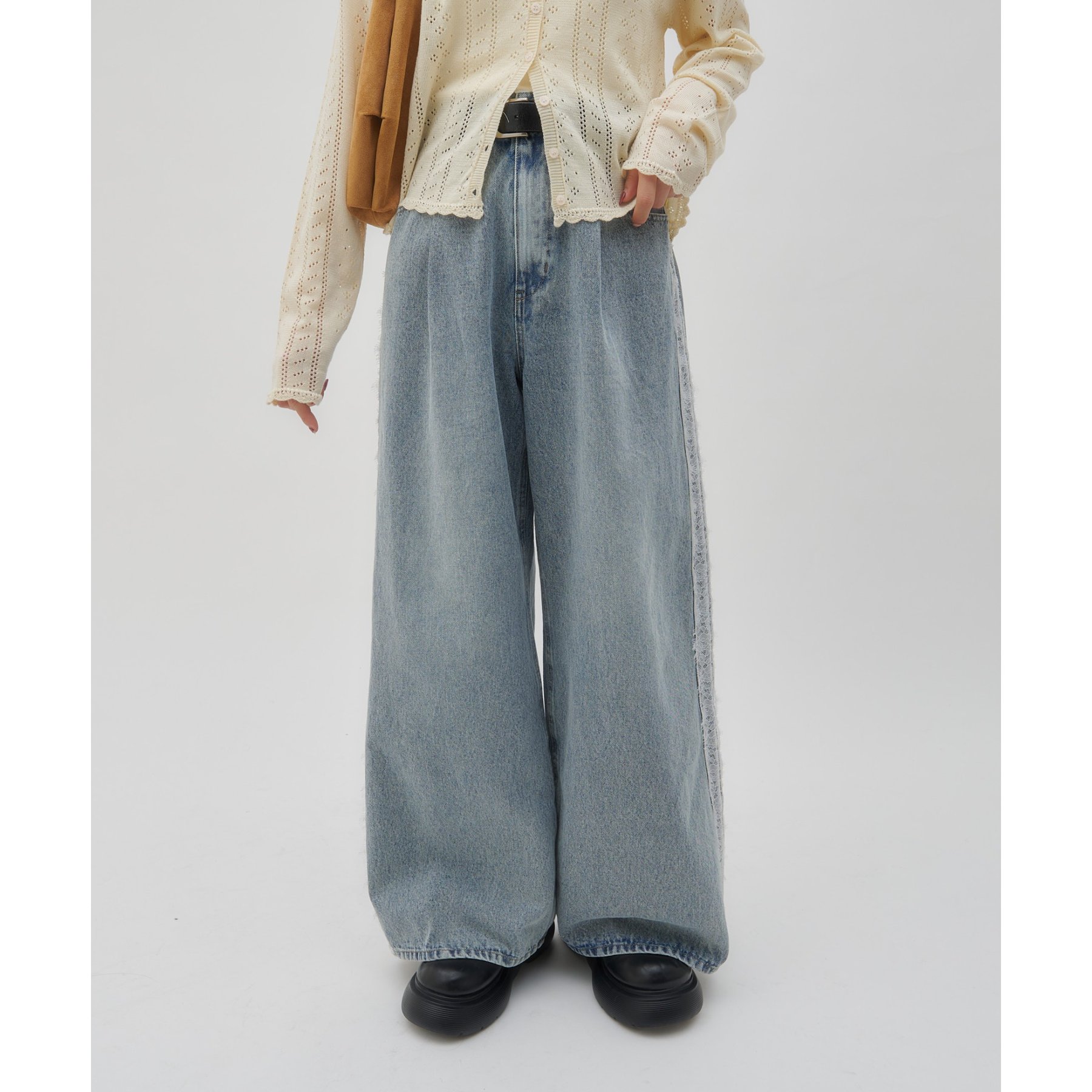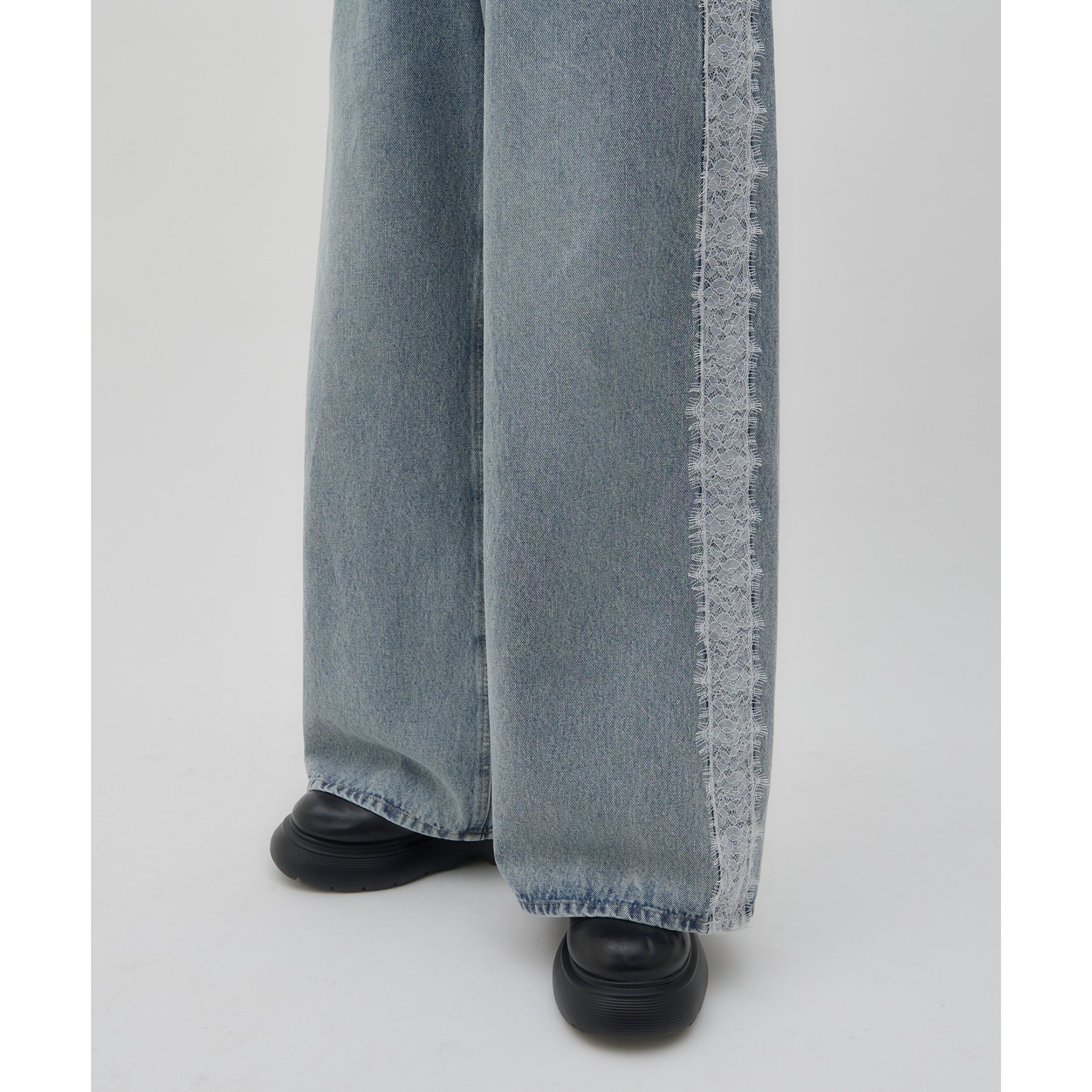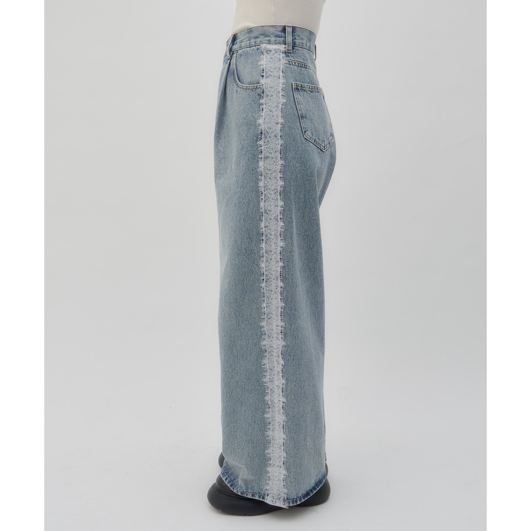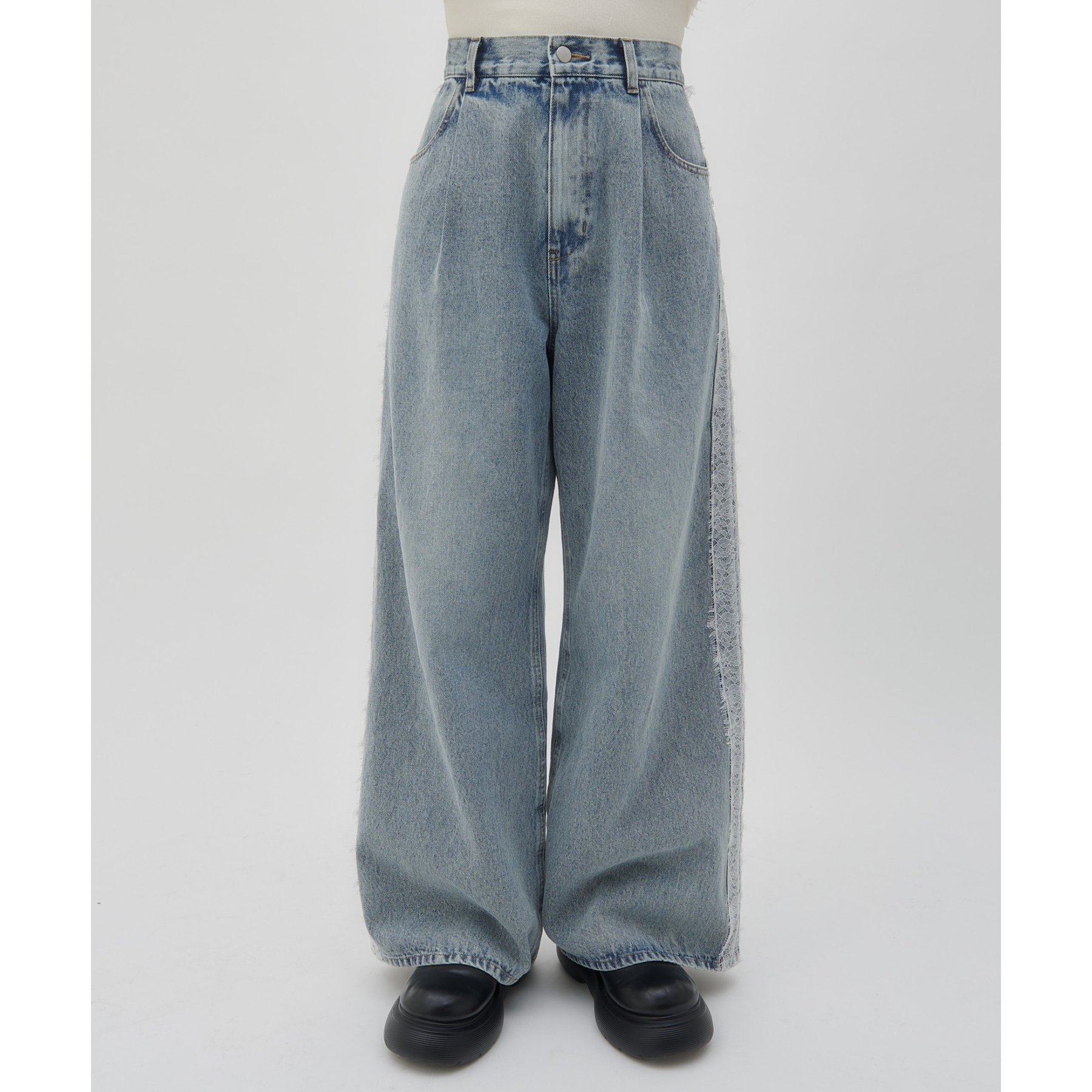 【umm.】サイドレースデニムワイドパンツ《サイズ展開あり》