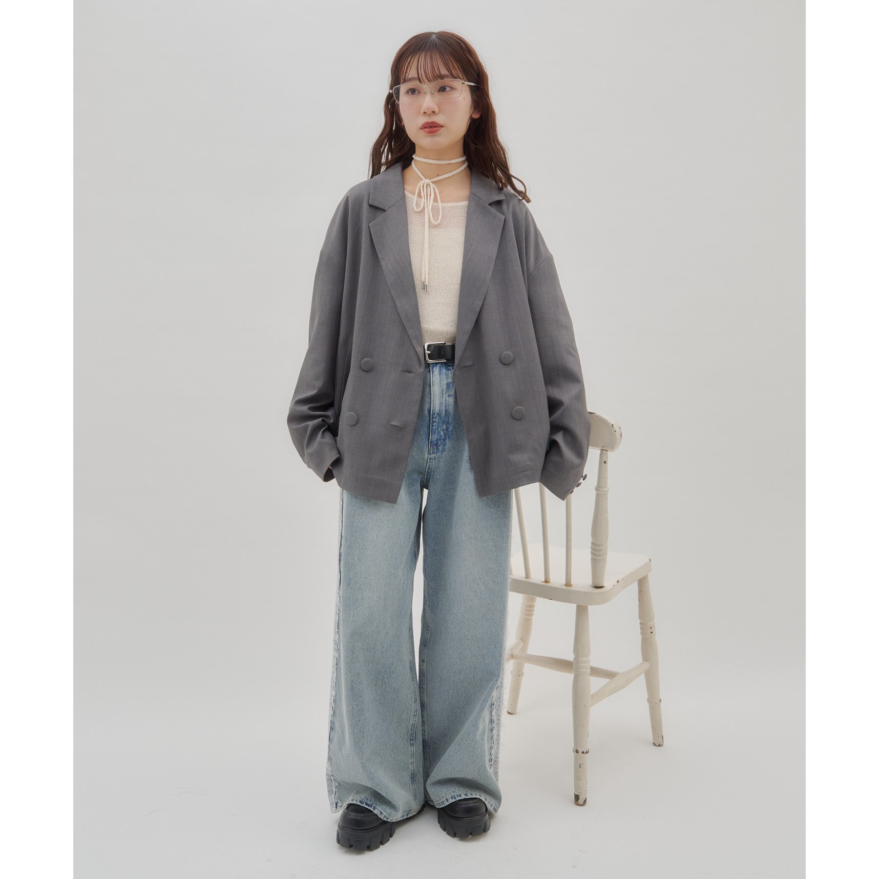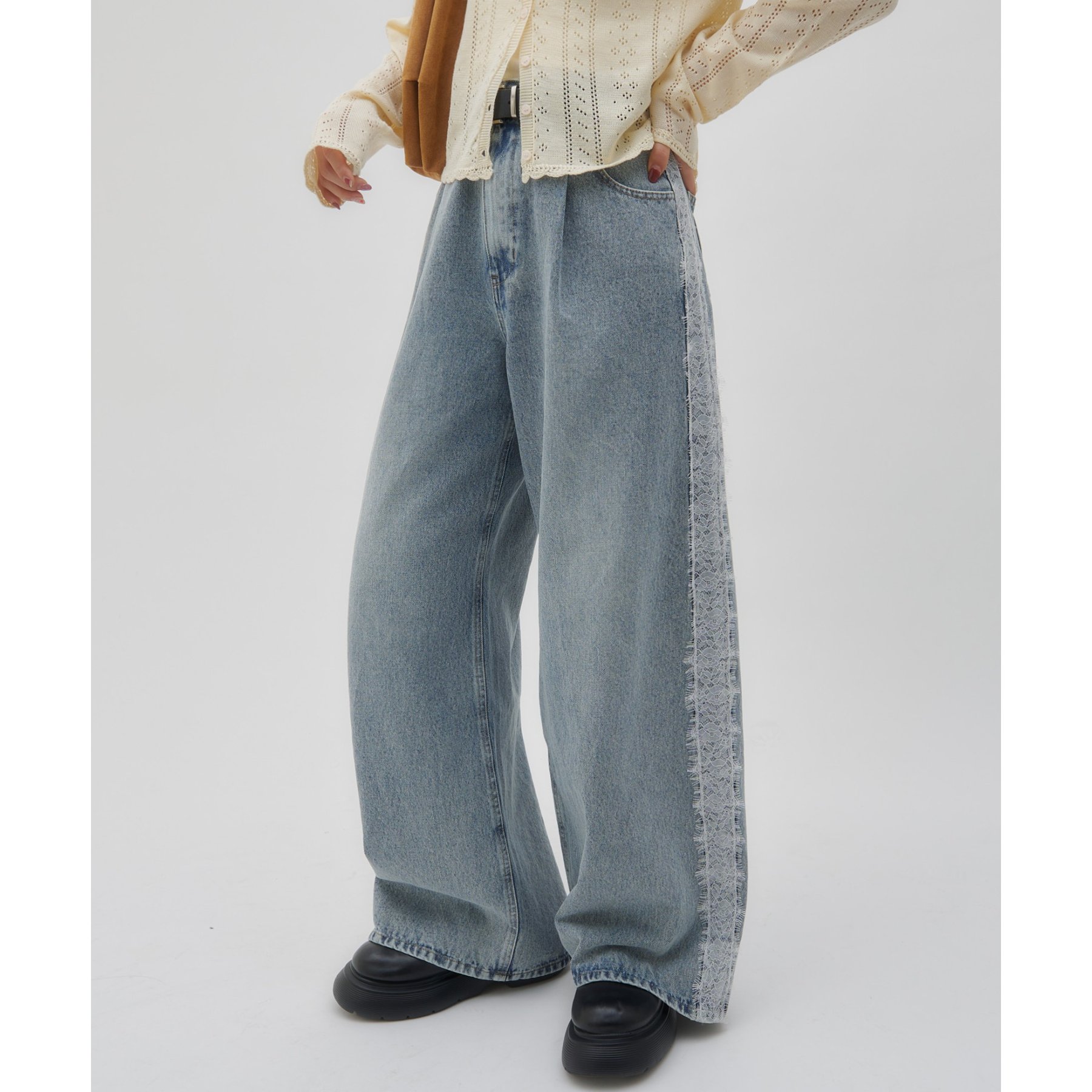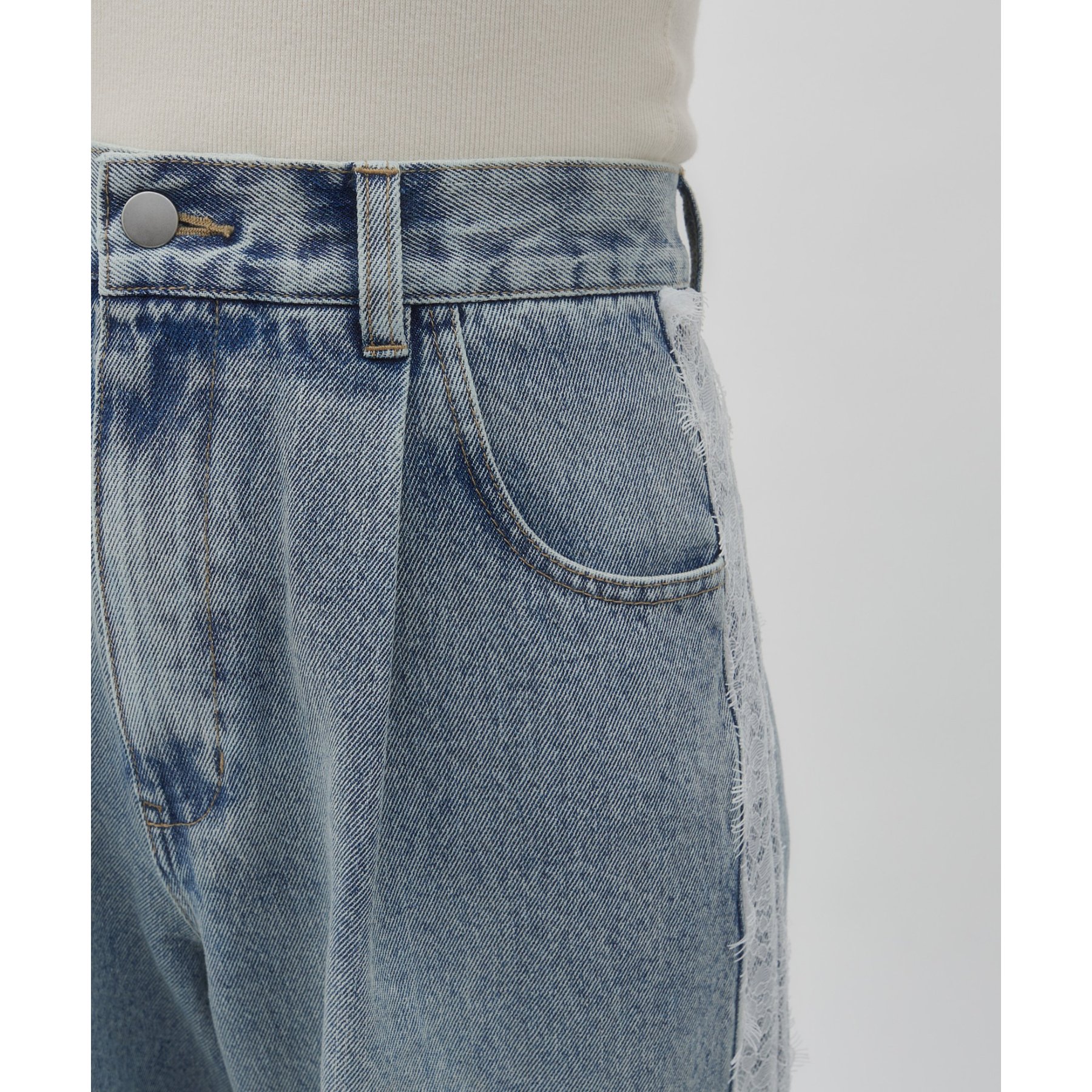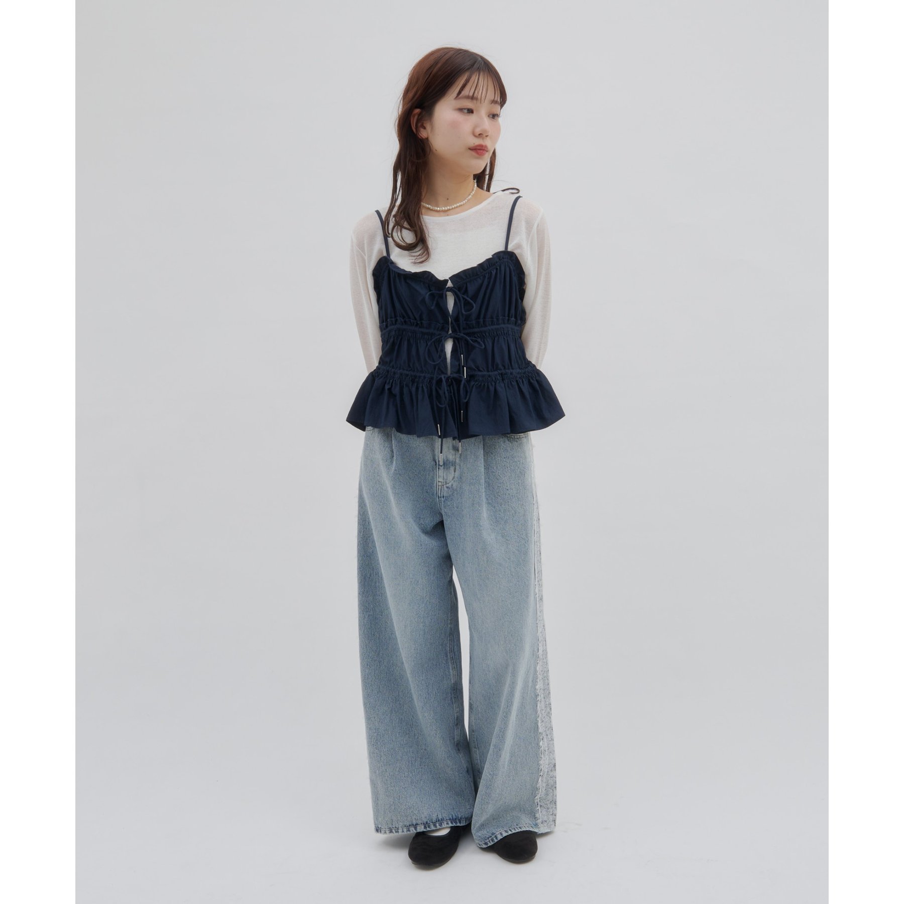 【umm.】サイドレースデニムワイドパンツ《サイズ展開あり》