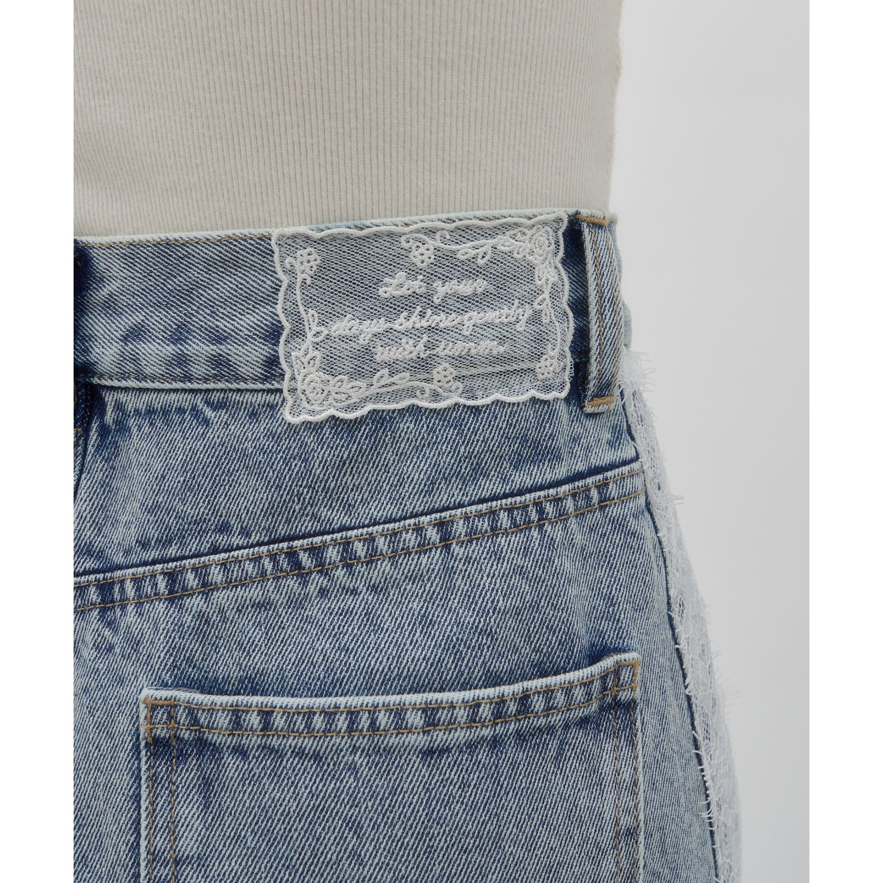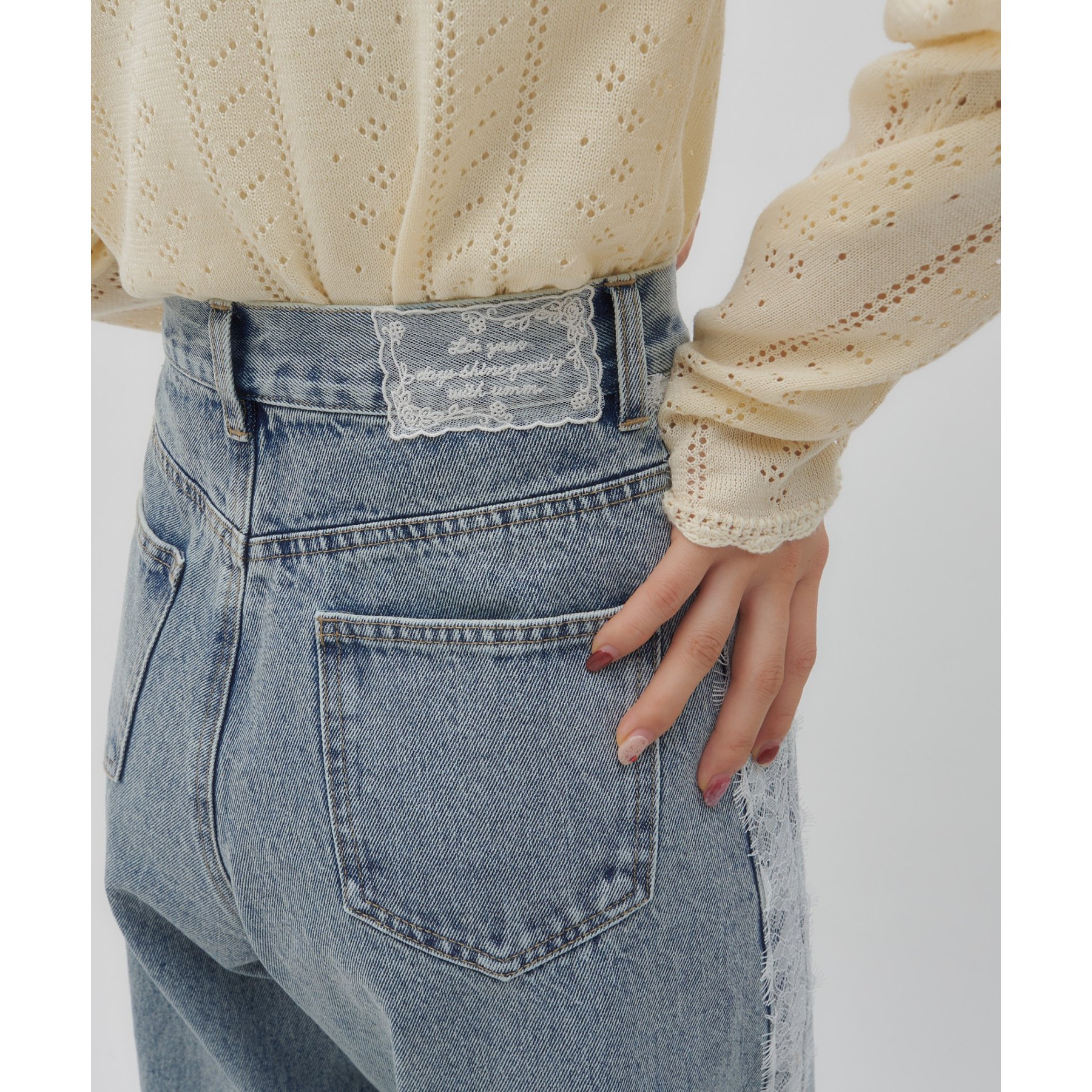 ・バックウエストにはレースのパッチが施されました。