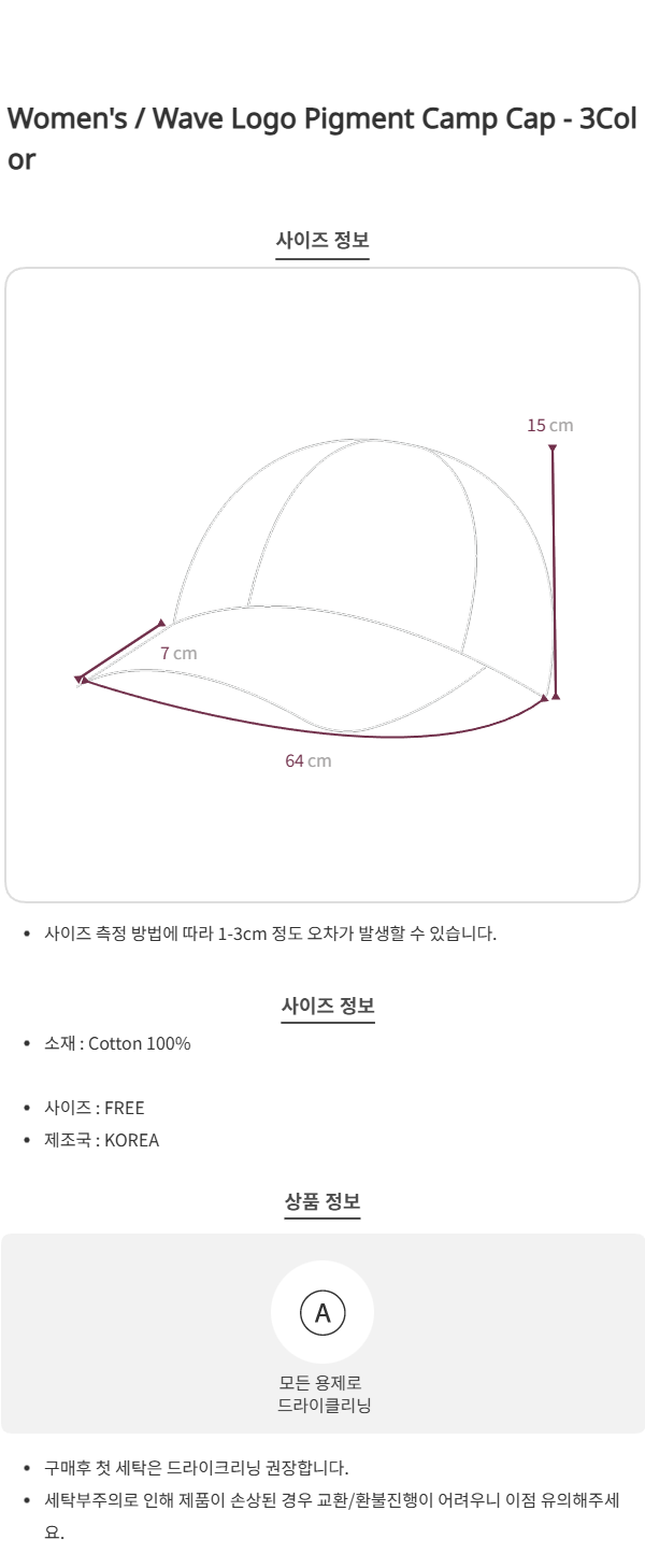 Wave Logo Pigment Camp Cap - 3Color