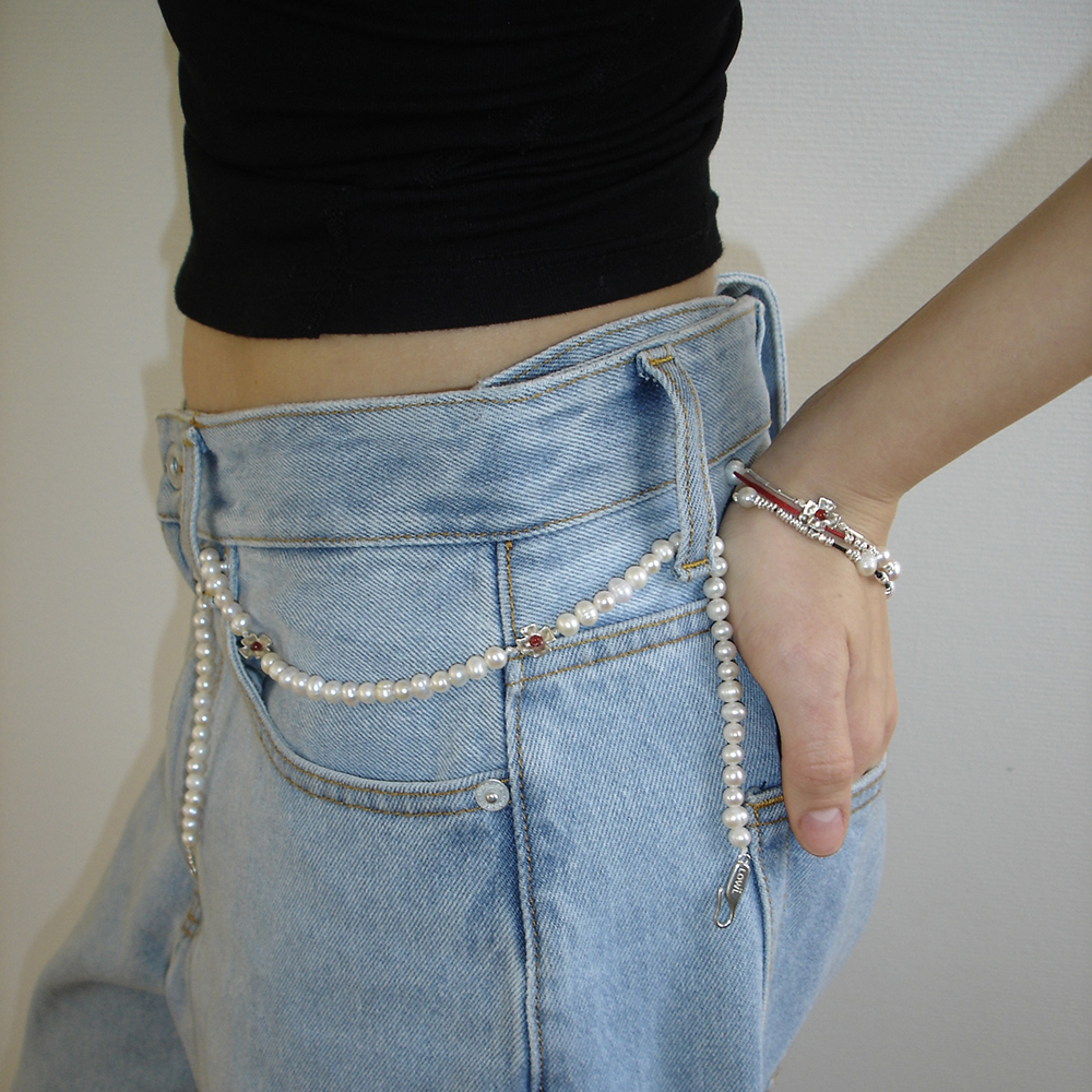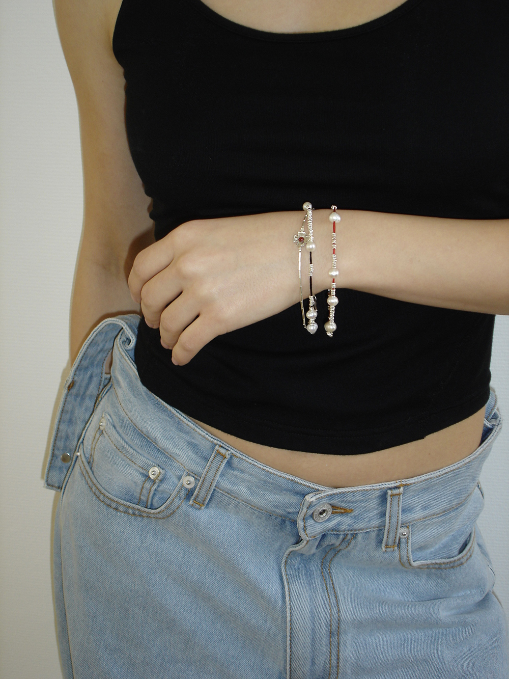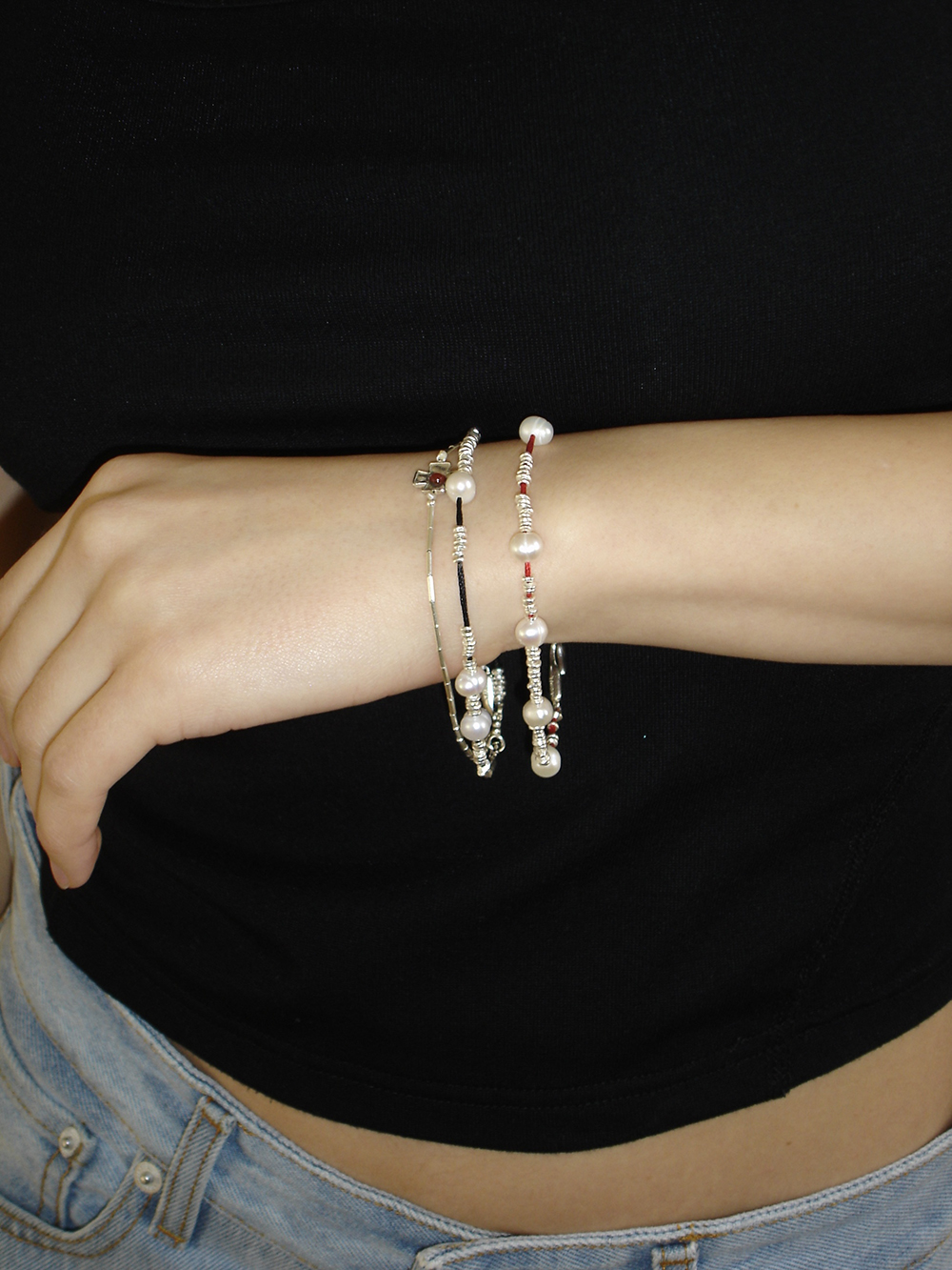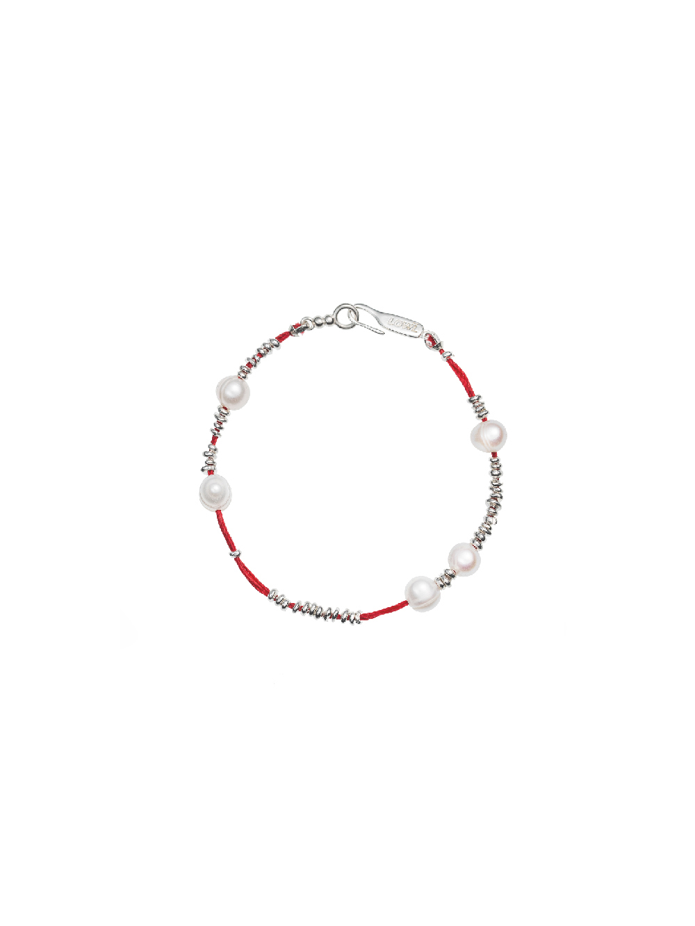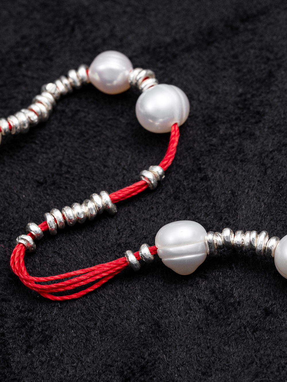 Red thread silver pearl bracelet