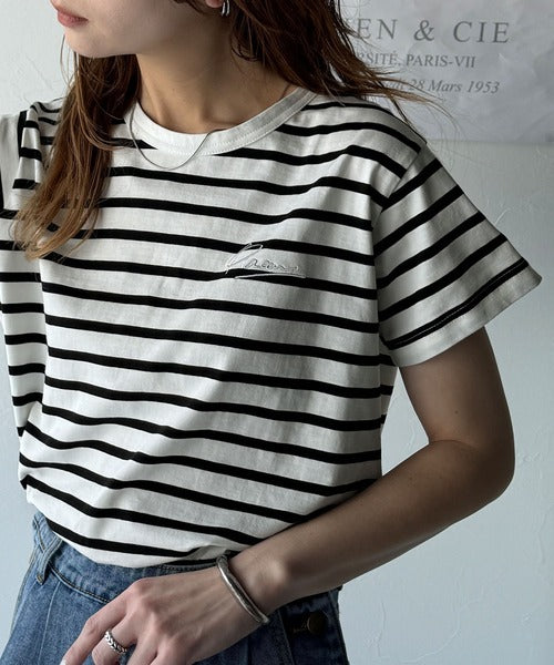 【sustaina+】こなれ感たっぷり。オーガニックコットン100%胸元PAEAN刺繍Tシャツ(半袖) ce1260401