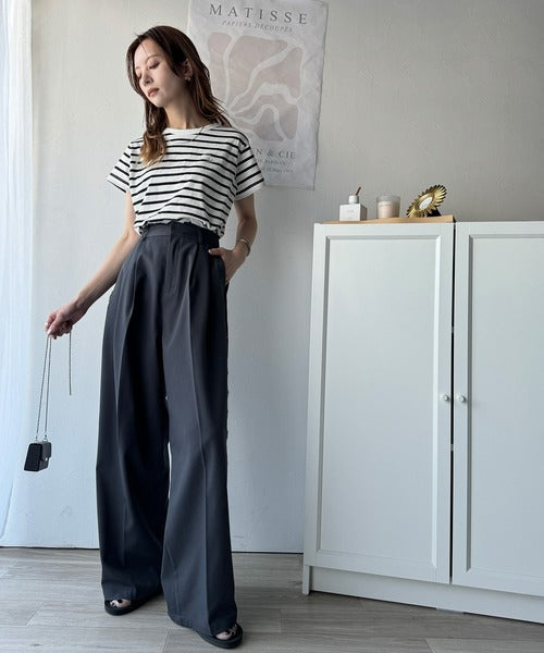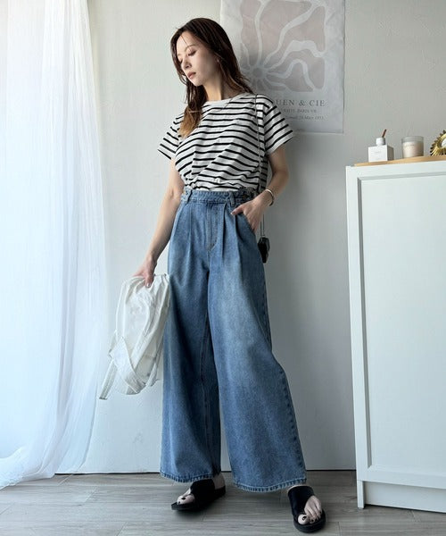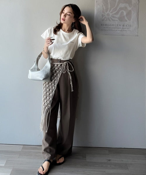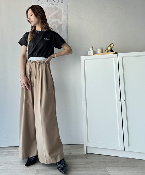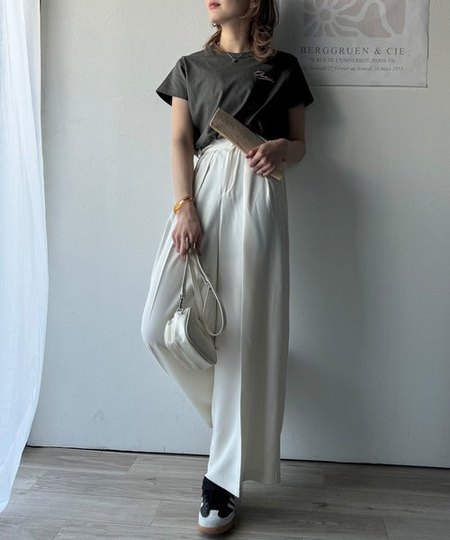 シルケット風素材の滑らかな肌触りと上品な光沢感で、カジュアルながらも女性らしい印象に。