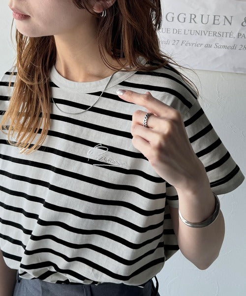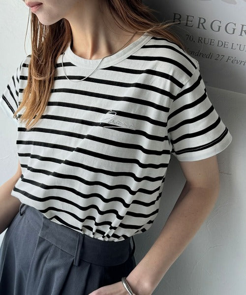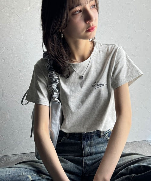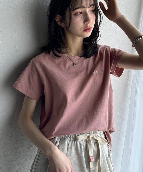 シンプルなデザインながらも、ロゴ刺繍がポイントの半袖Tシャツ。