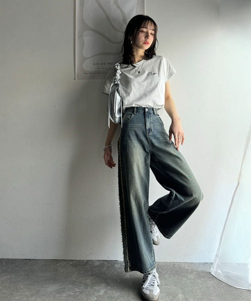 その日の気分に合わせてカーブデニムやフレアパンツを合わせてもOK◎