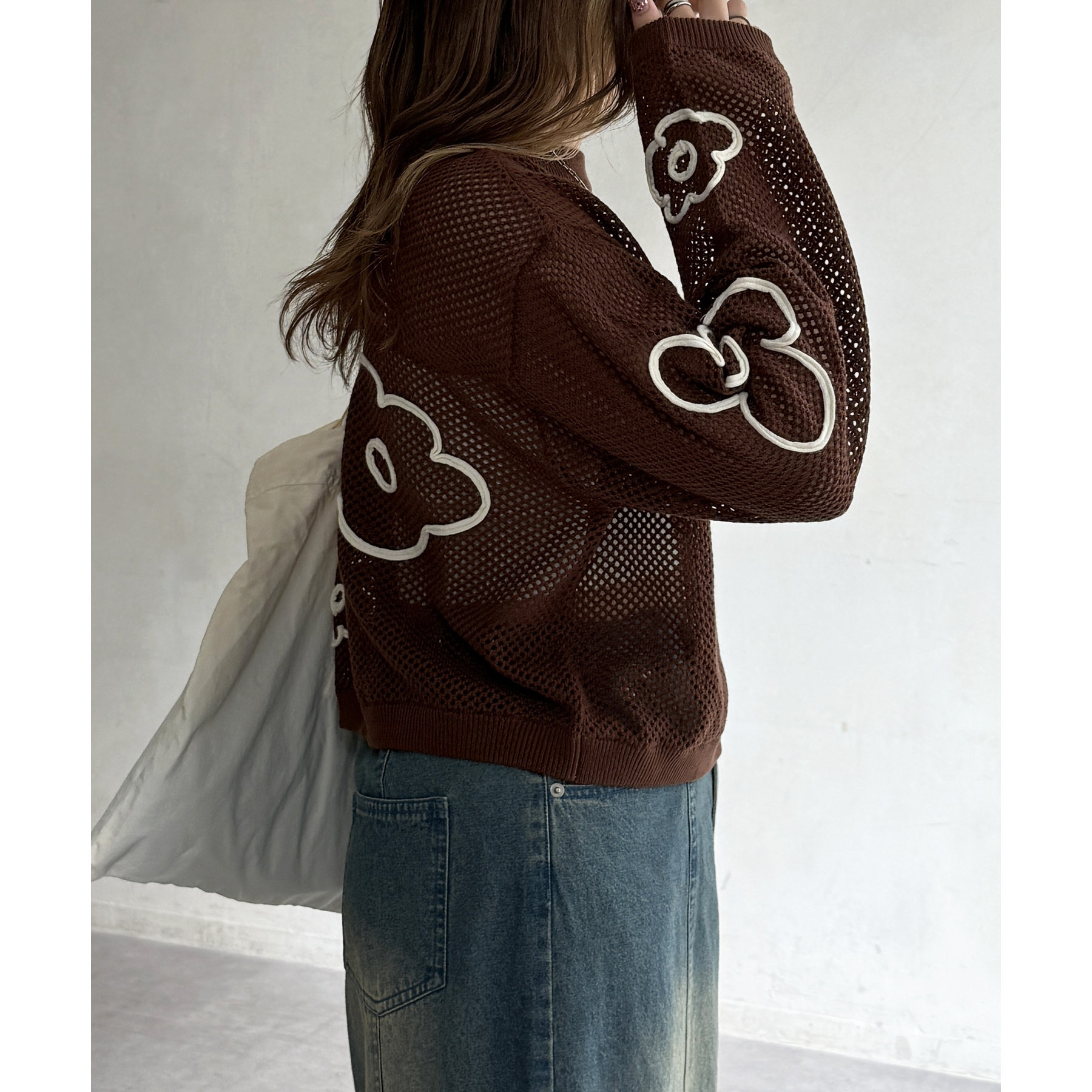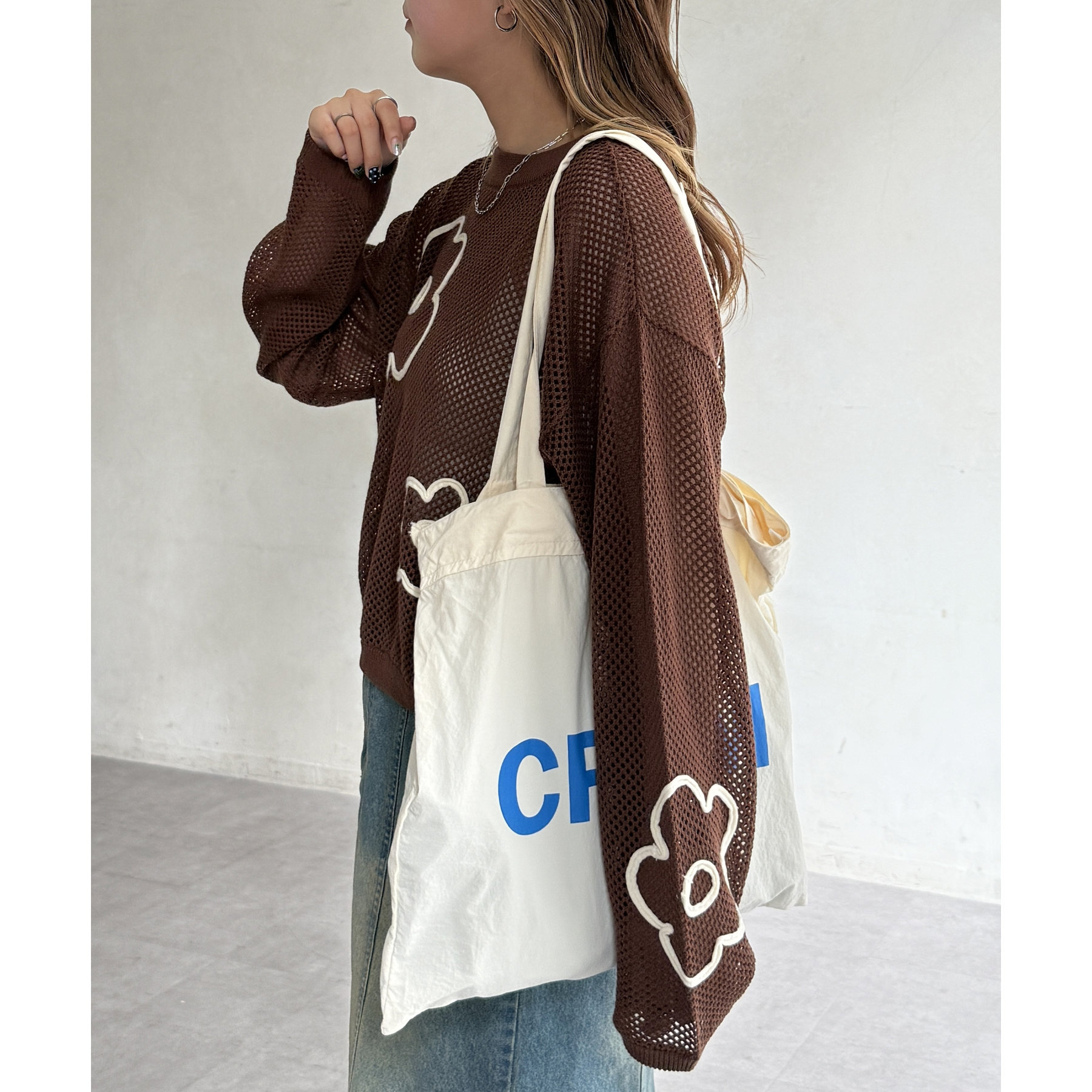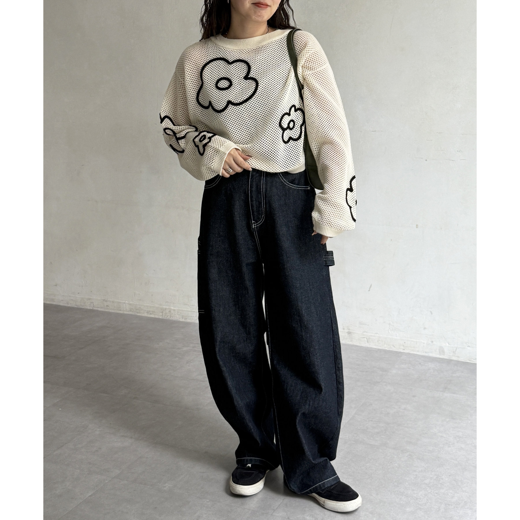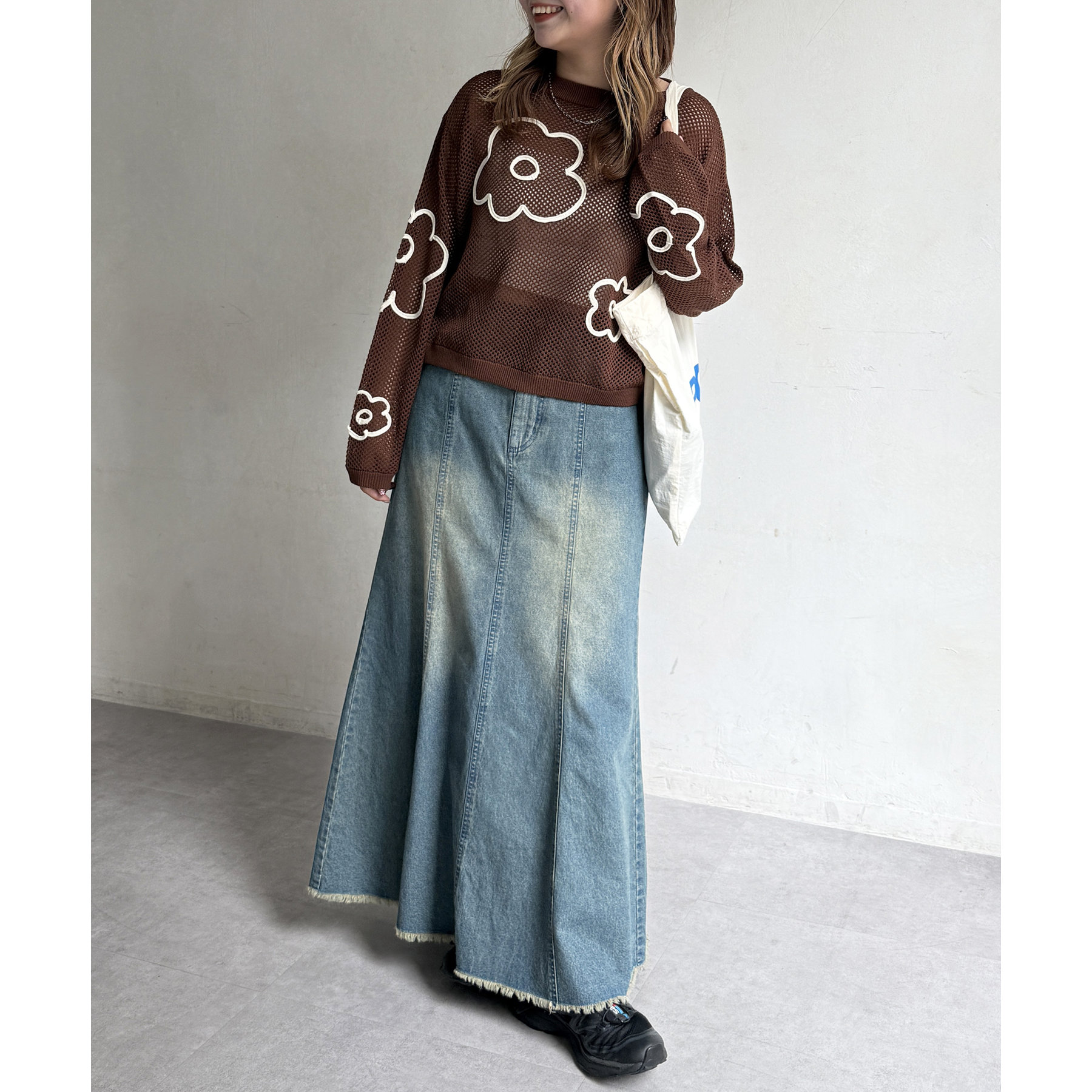 ・デニムパンツやスカートと合わせてカジュアルダウン。スニーカーやサンダルを合わせれば、デイリーユースにぴったりなリラックスコーデが完成します。