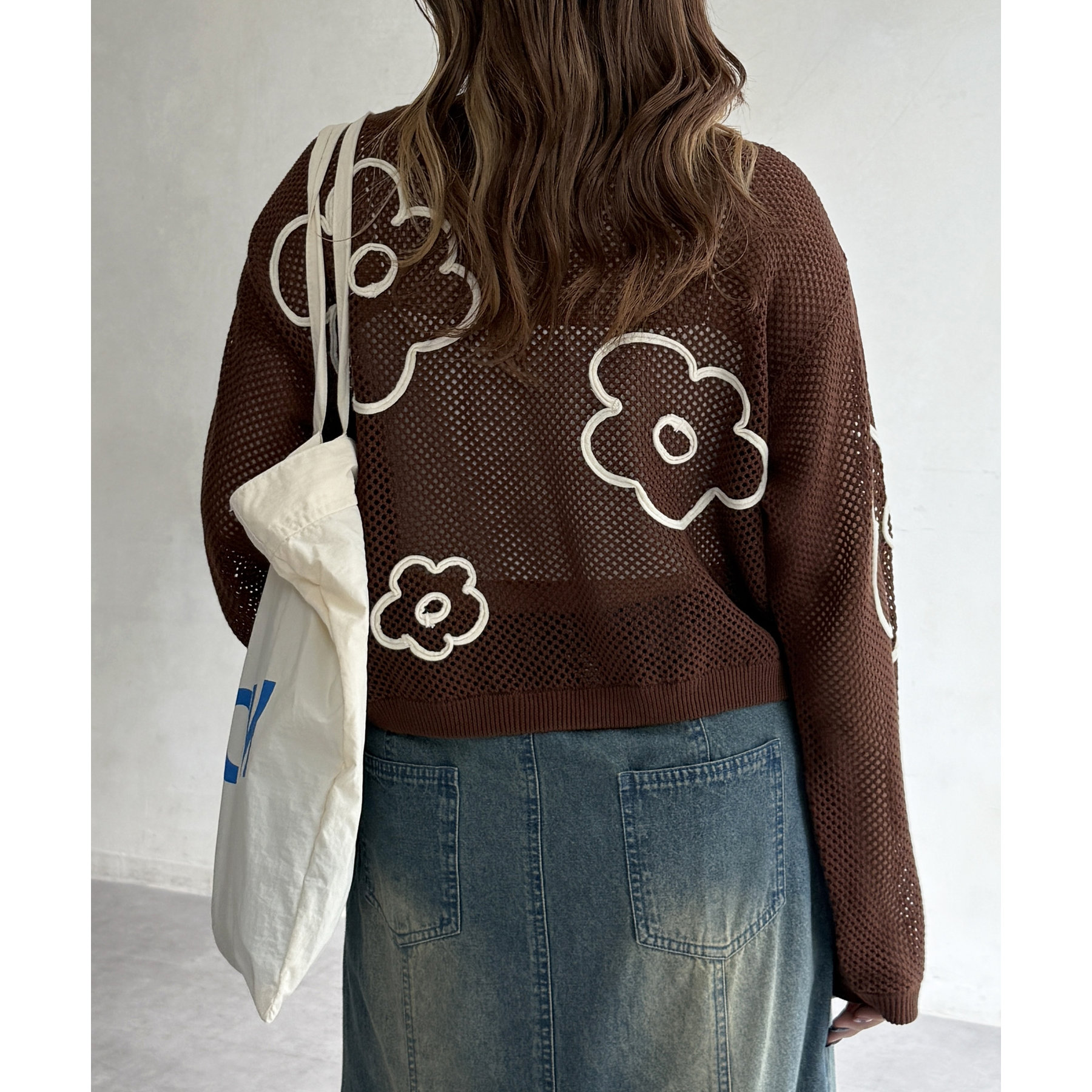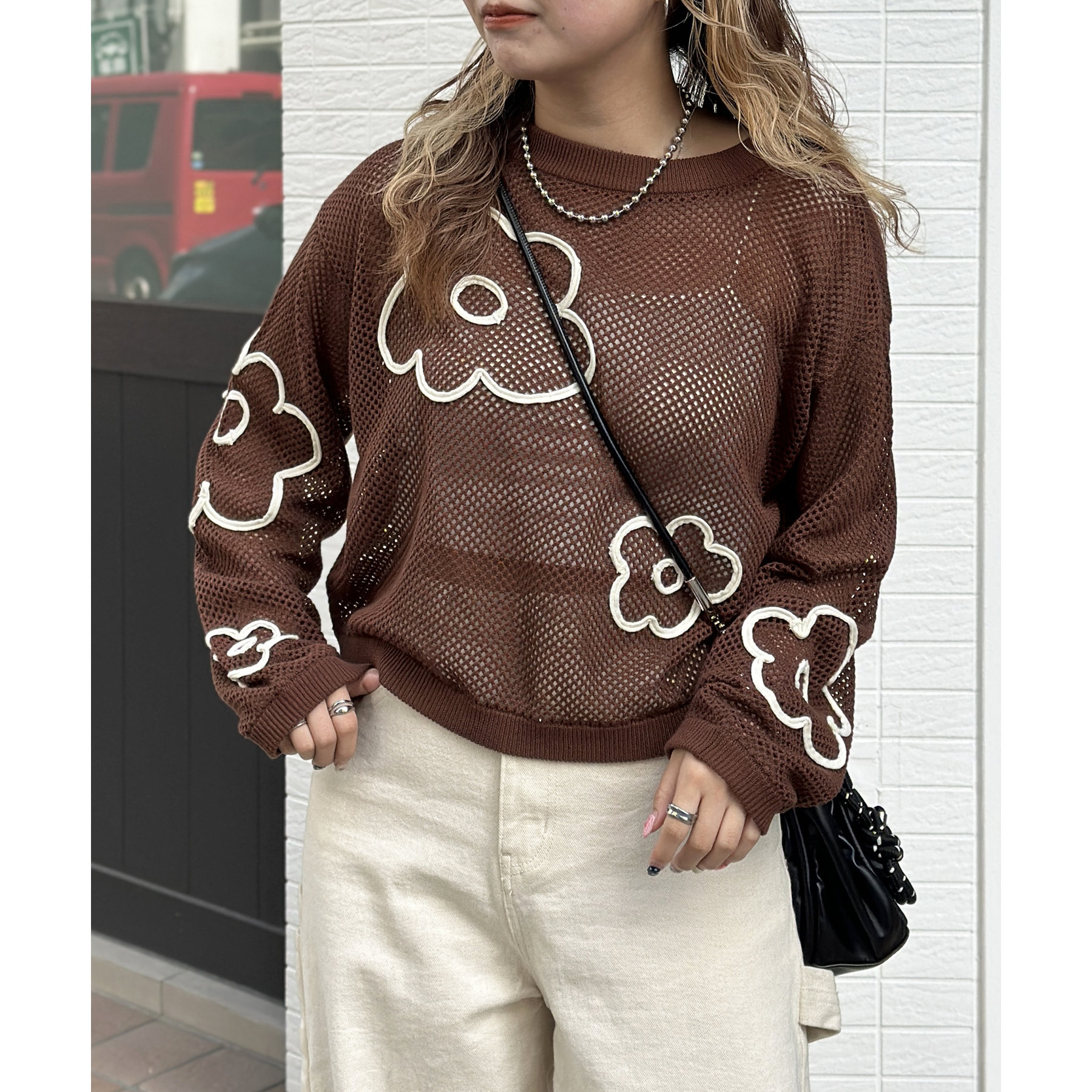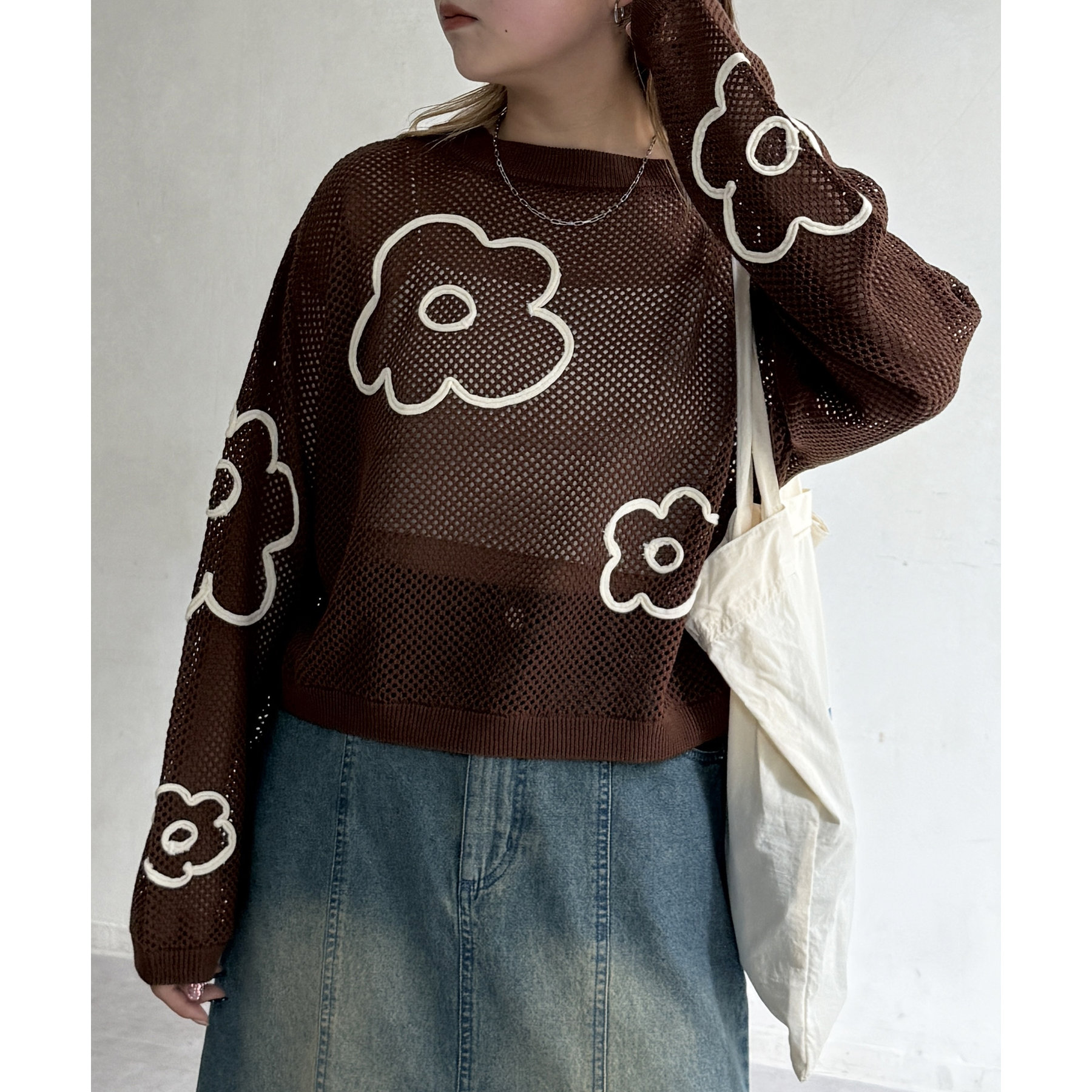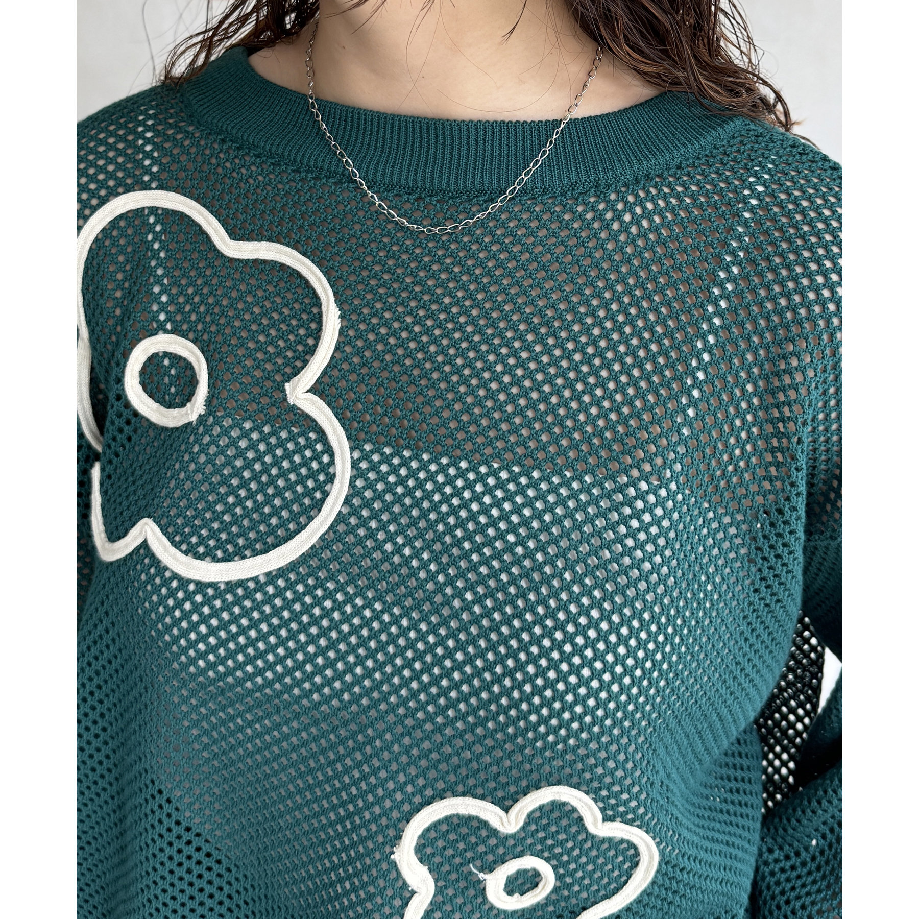コード刺繍花柄メッシュニット
