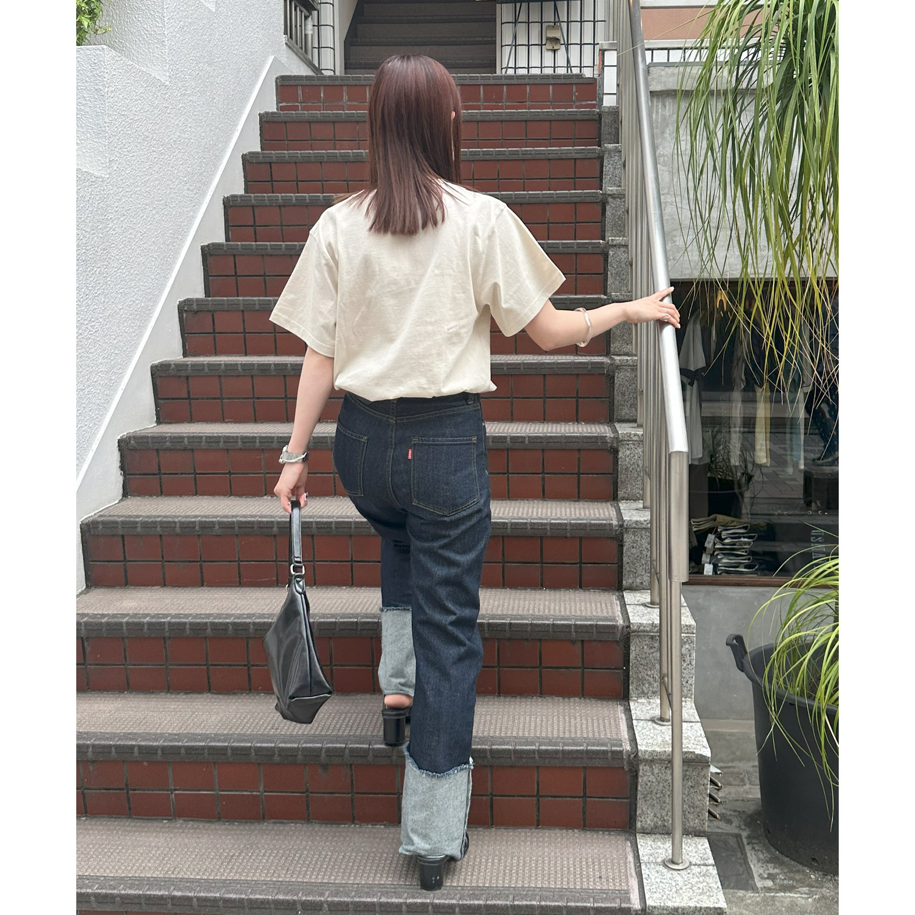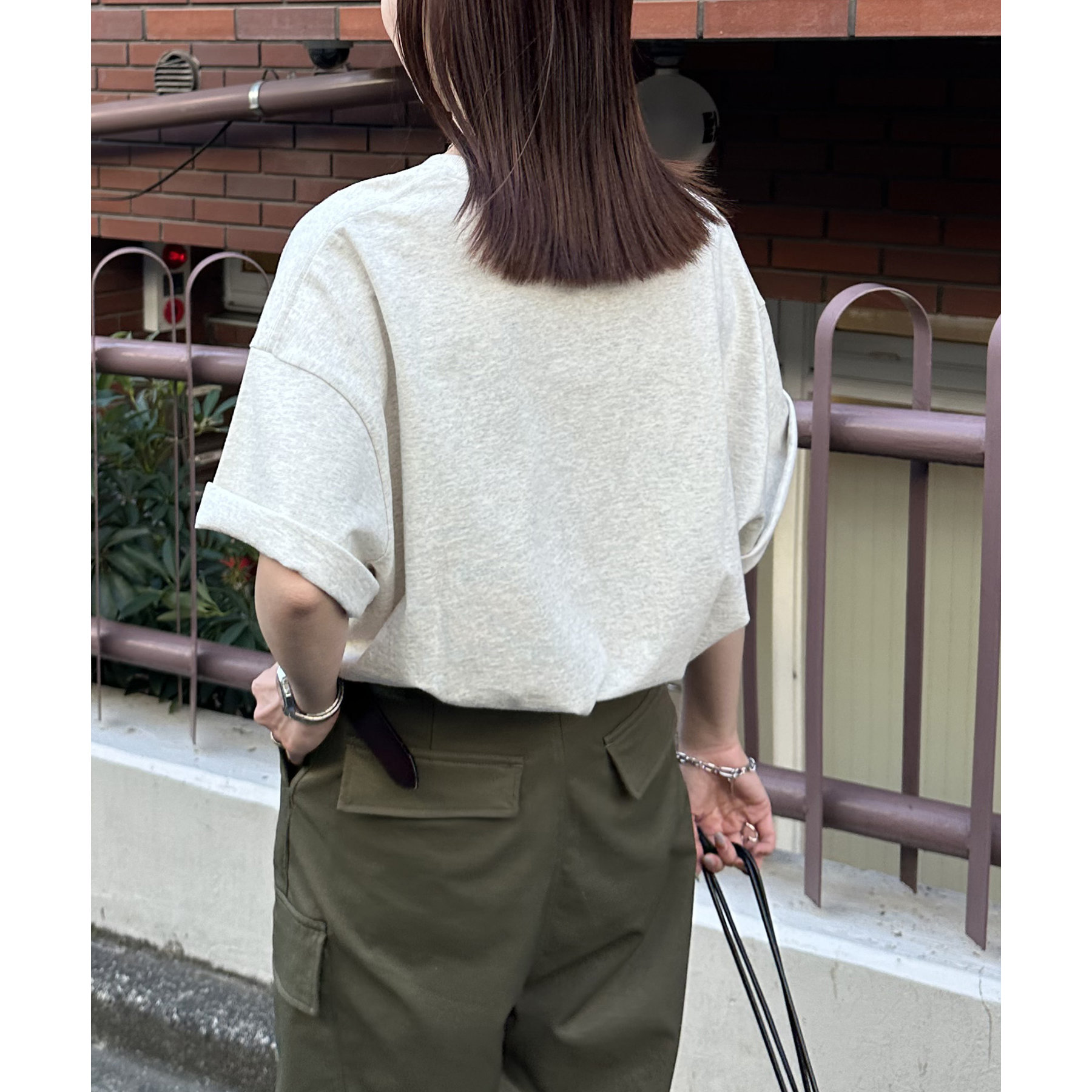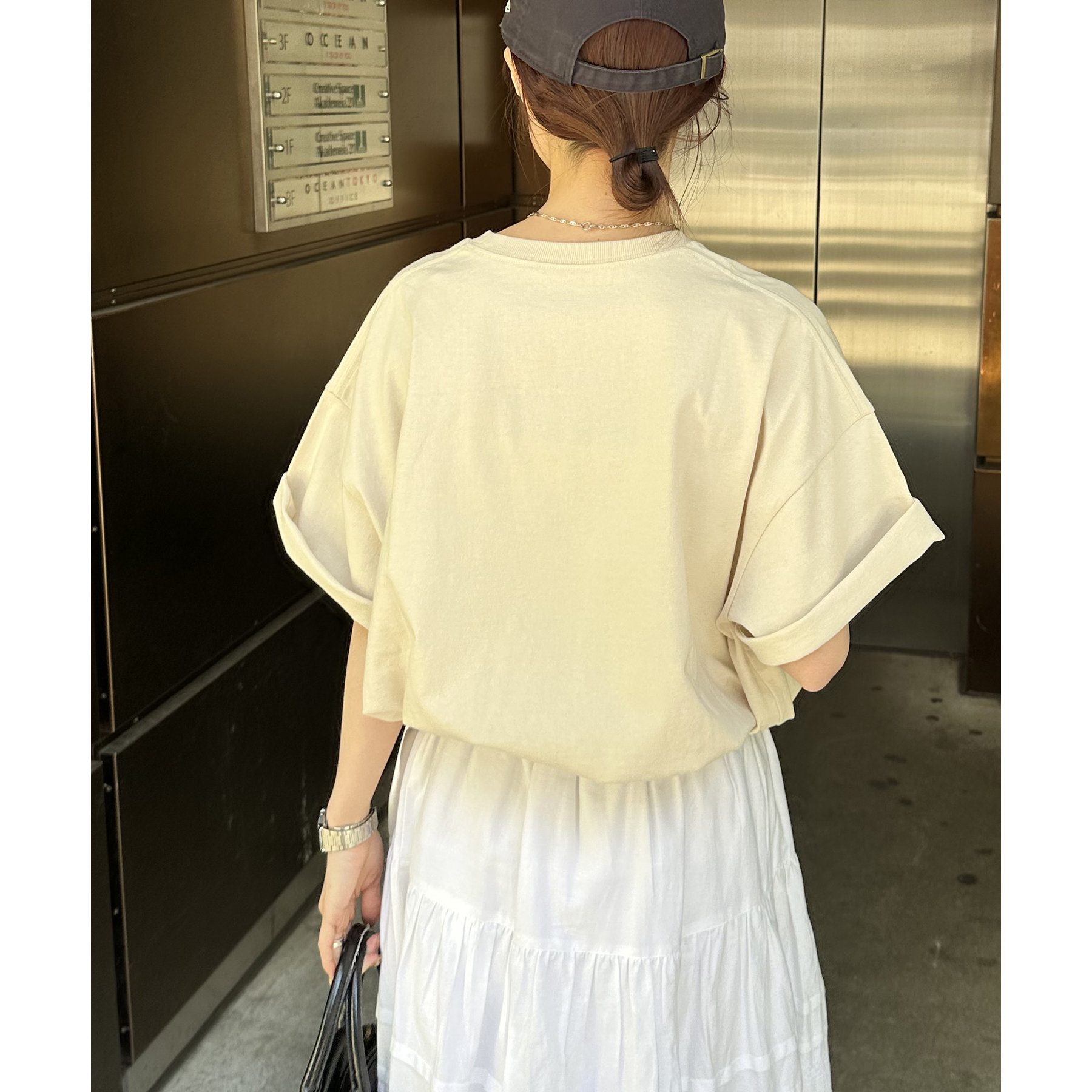 袖は少し長めなので、気になる腕まわりをカバーしてくれます!長すぎる場合は袖を捲ってこなれ感を出すのもおすすめです!