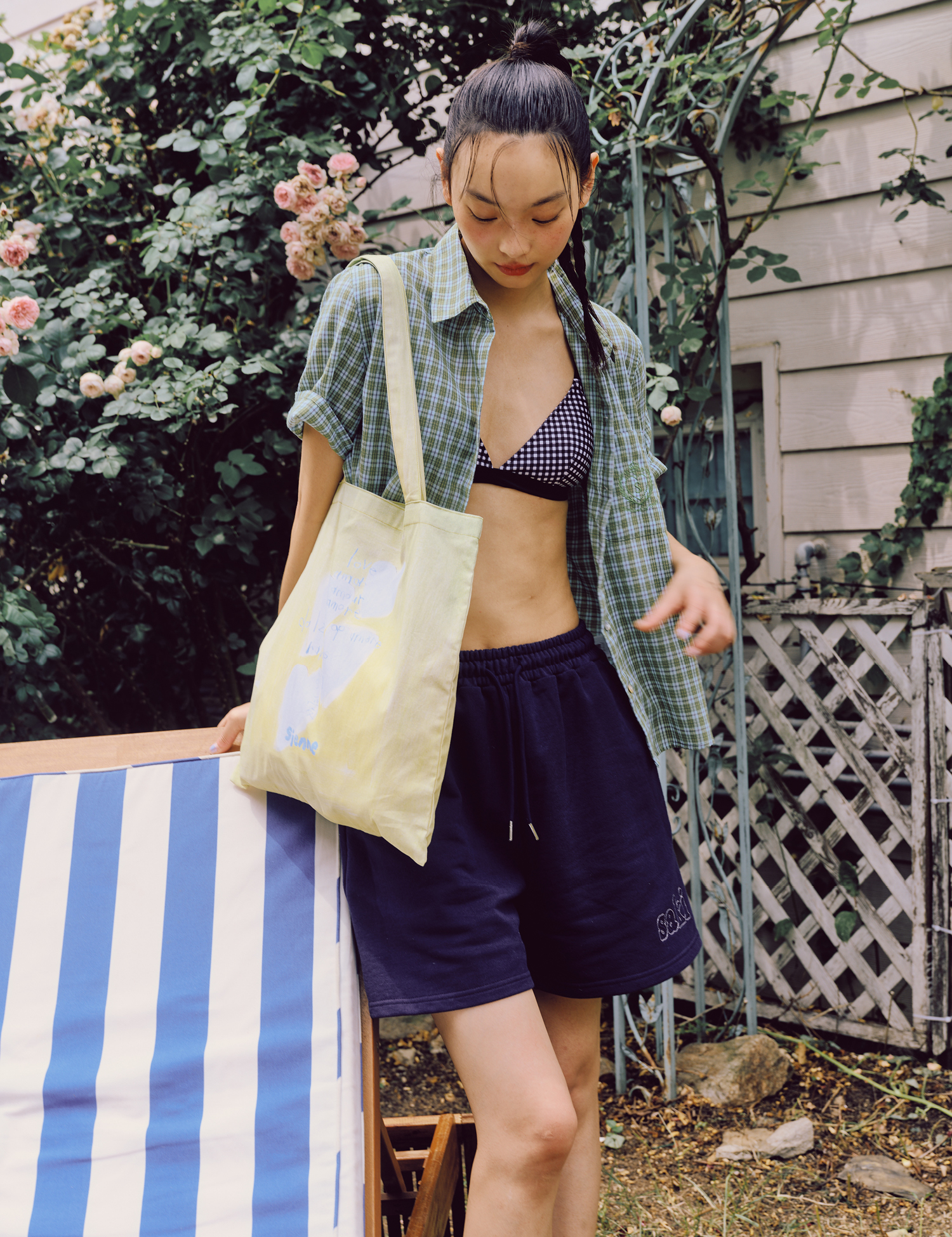 夏の色彩を思わせるカラーと、色鉛筆で描いたようなラフなグラフィックが魅力的。耐久性に優れた40番手のオックスフォード素材を使用し、しなやかで柔らかなシルエットを実現しました。