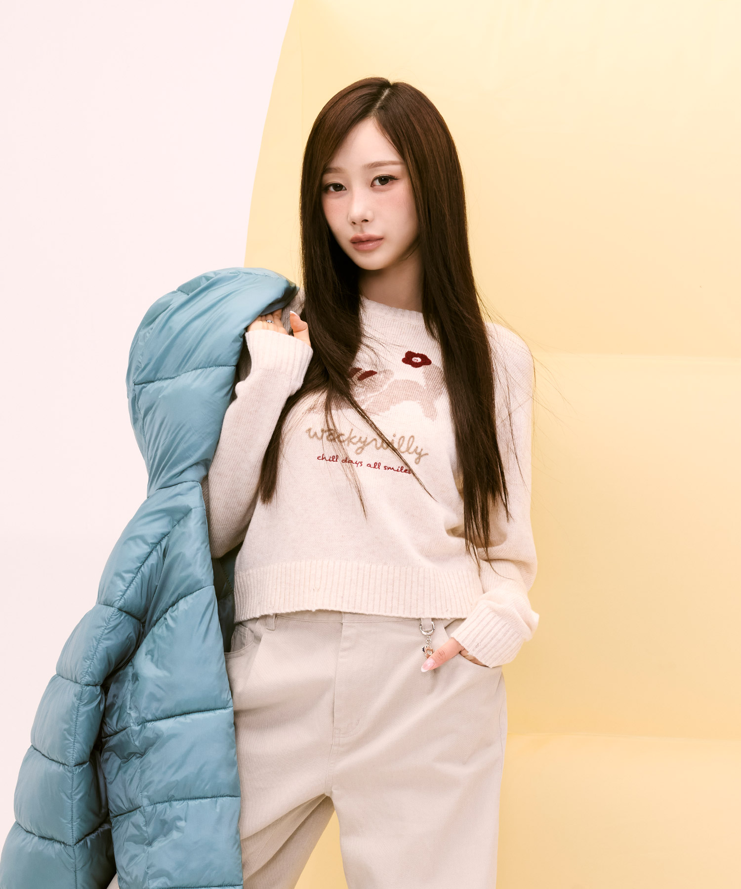 [GISELLE Wearing] Women's Leo Graphic Grunge Pullover Cream