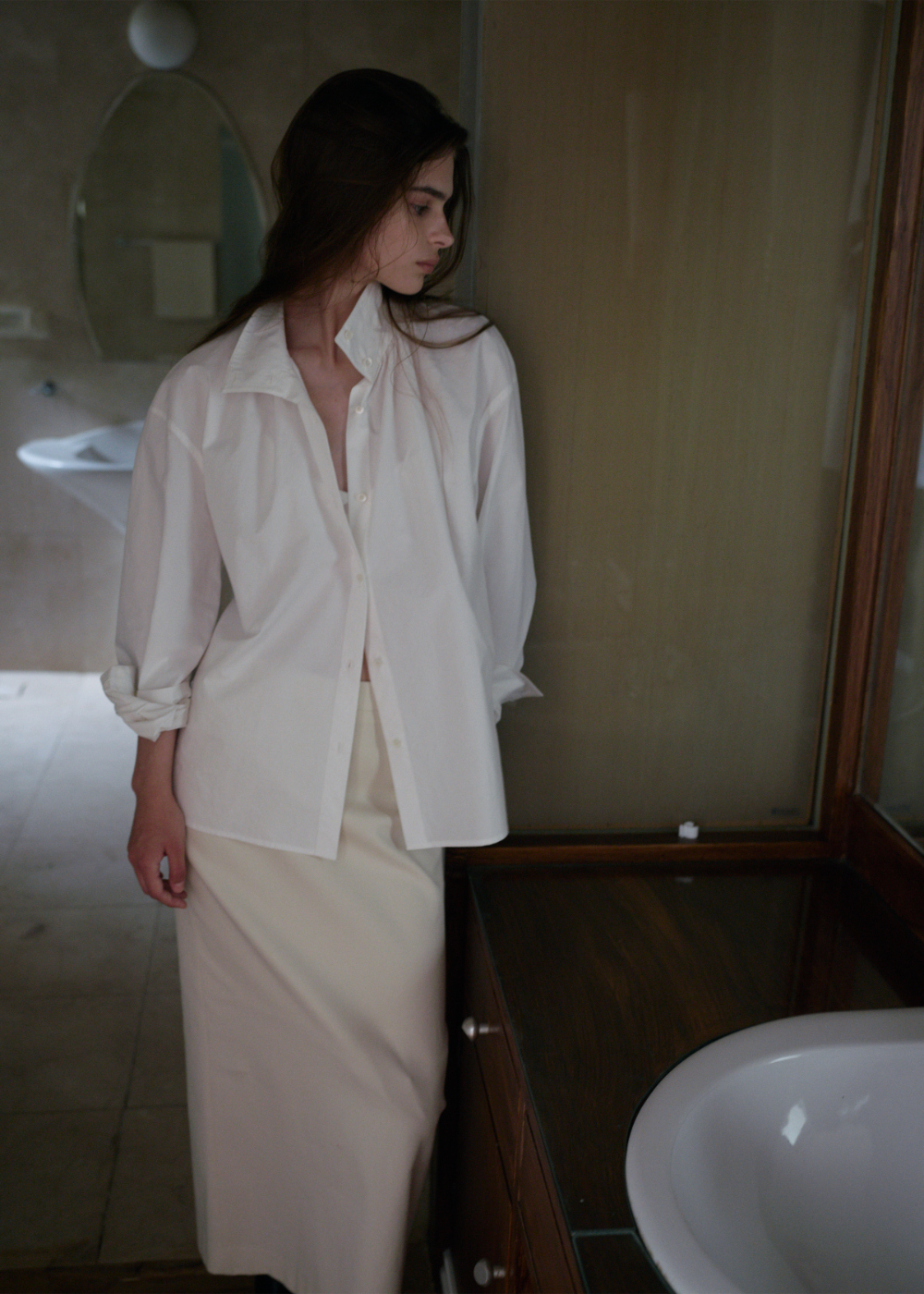 やわらかく上品なクリームカラーは、フォーマルなセットアップから感度の高いデイリースタイリングまで自然に馴染み、