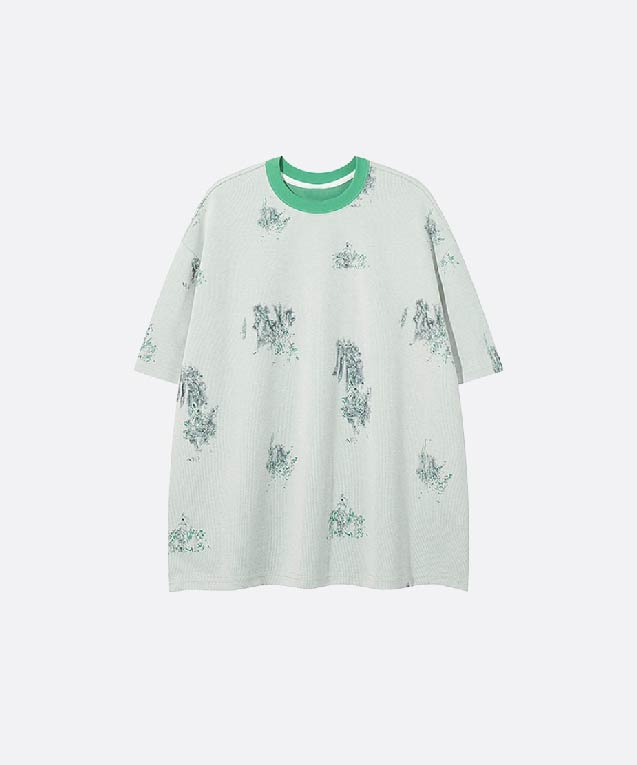 コントラストパイピングプリントTシャツ