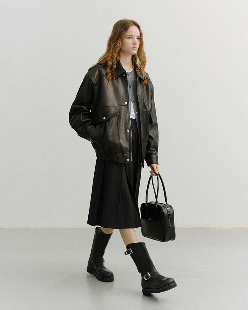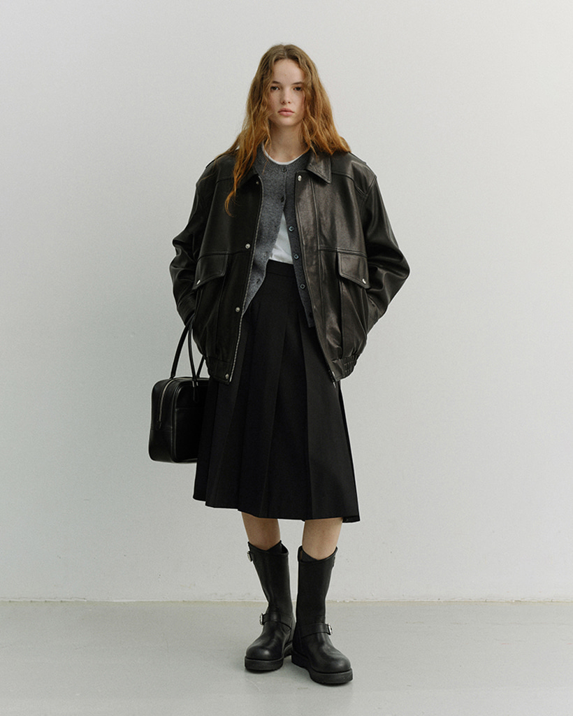 VOLUME PLEATS MIDI SKIRT BLACK_UDSK6A204BK