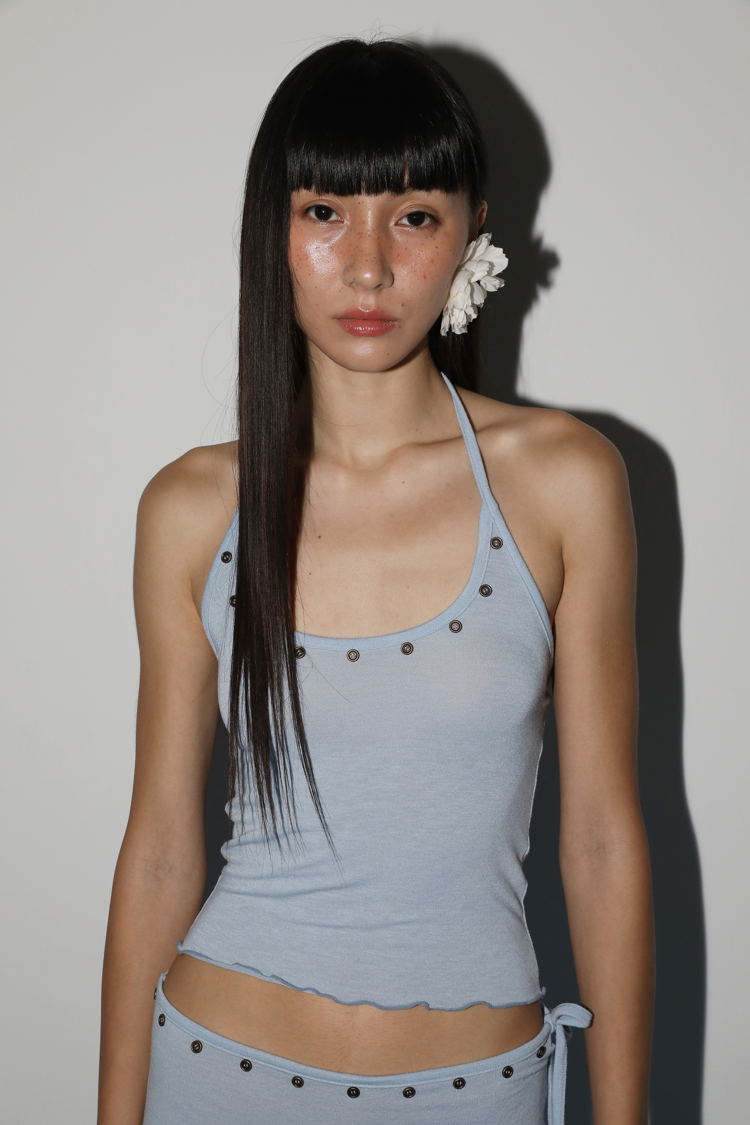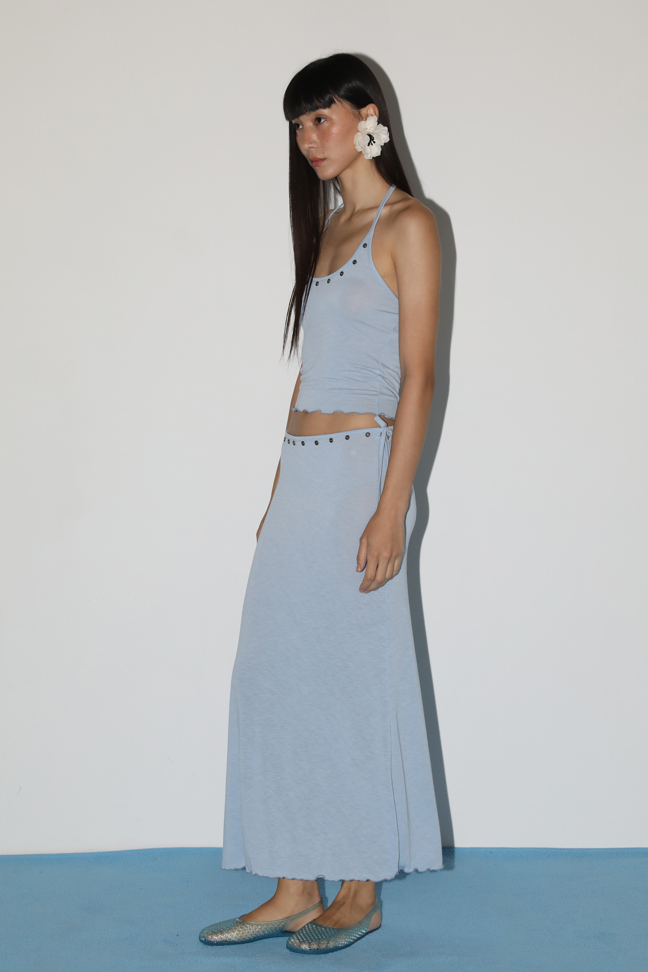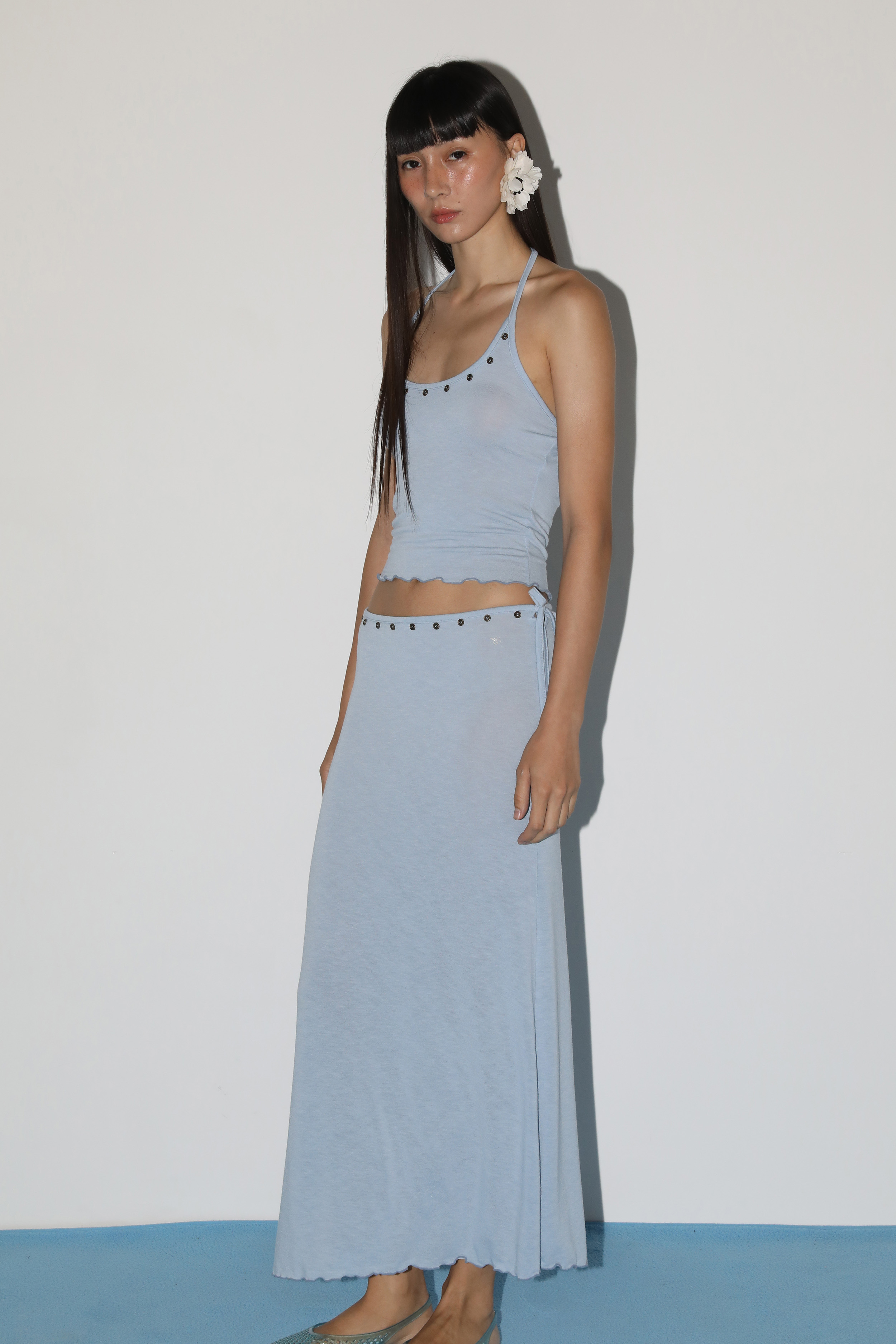 ソフトなテクスチャのボタンポイントロングスカート。 32cmhip width 40cm