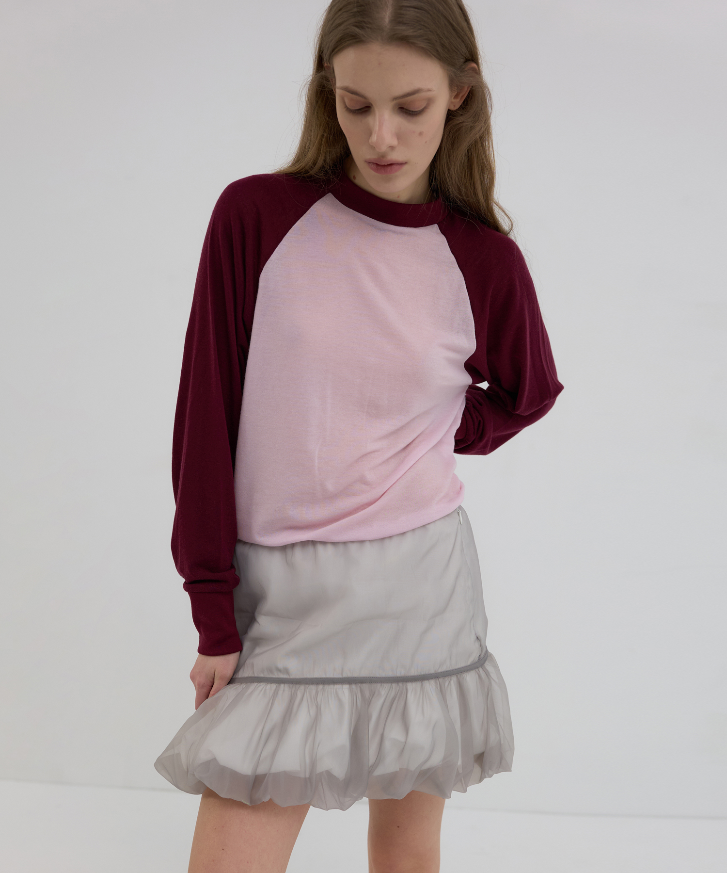COLOR COMBI RAGLAN T-SHIRT_PINK/BURGUNDY