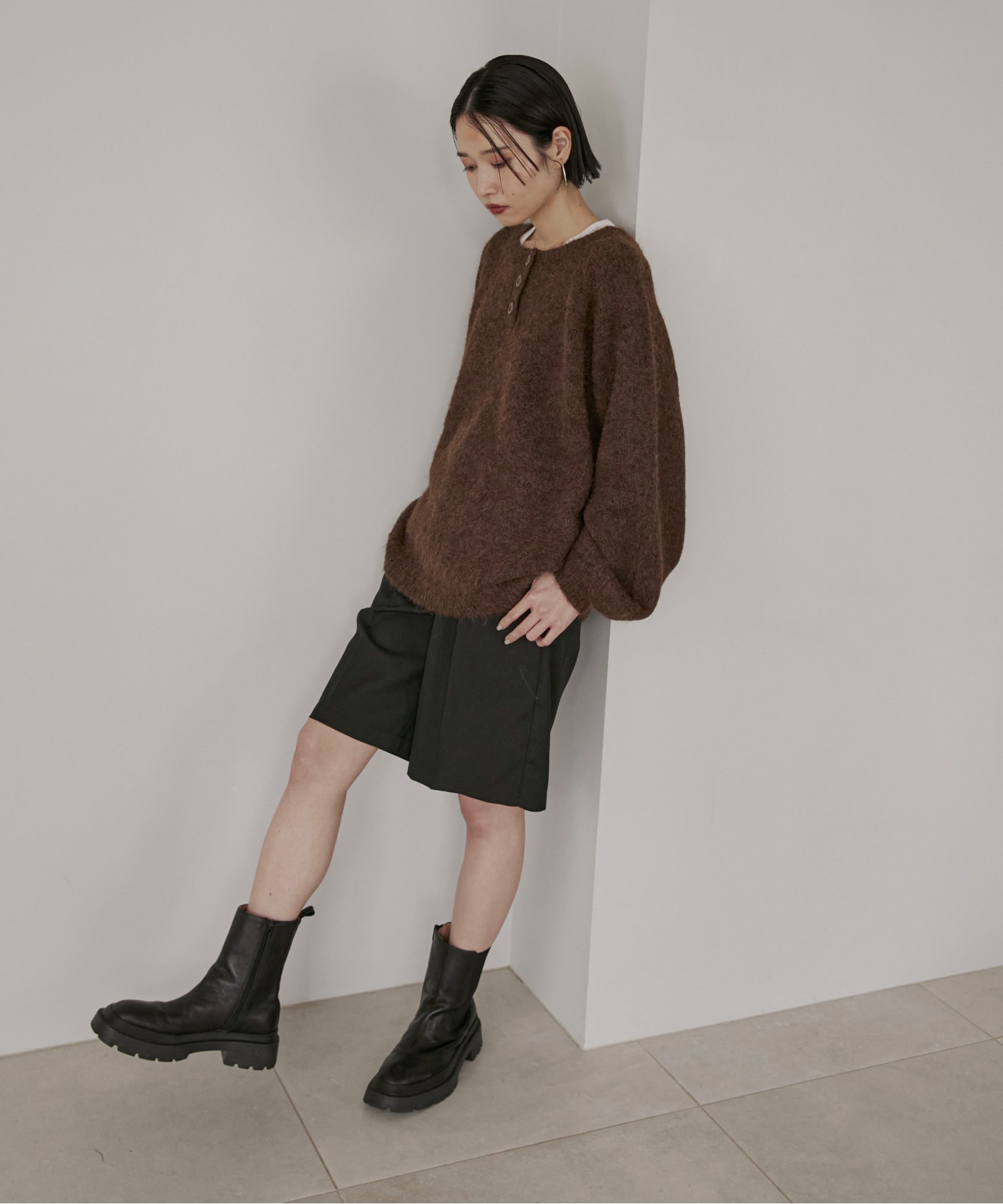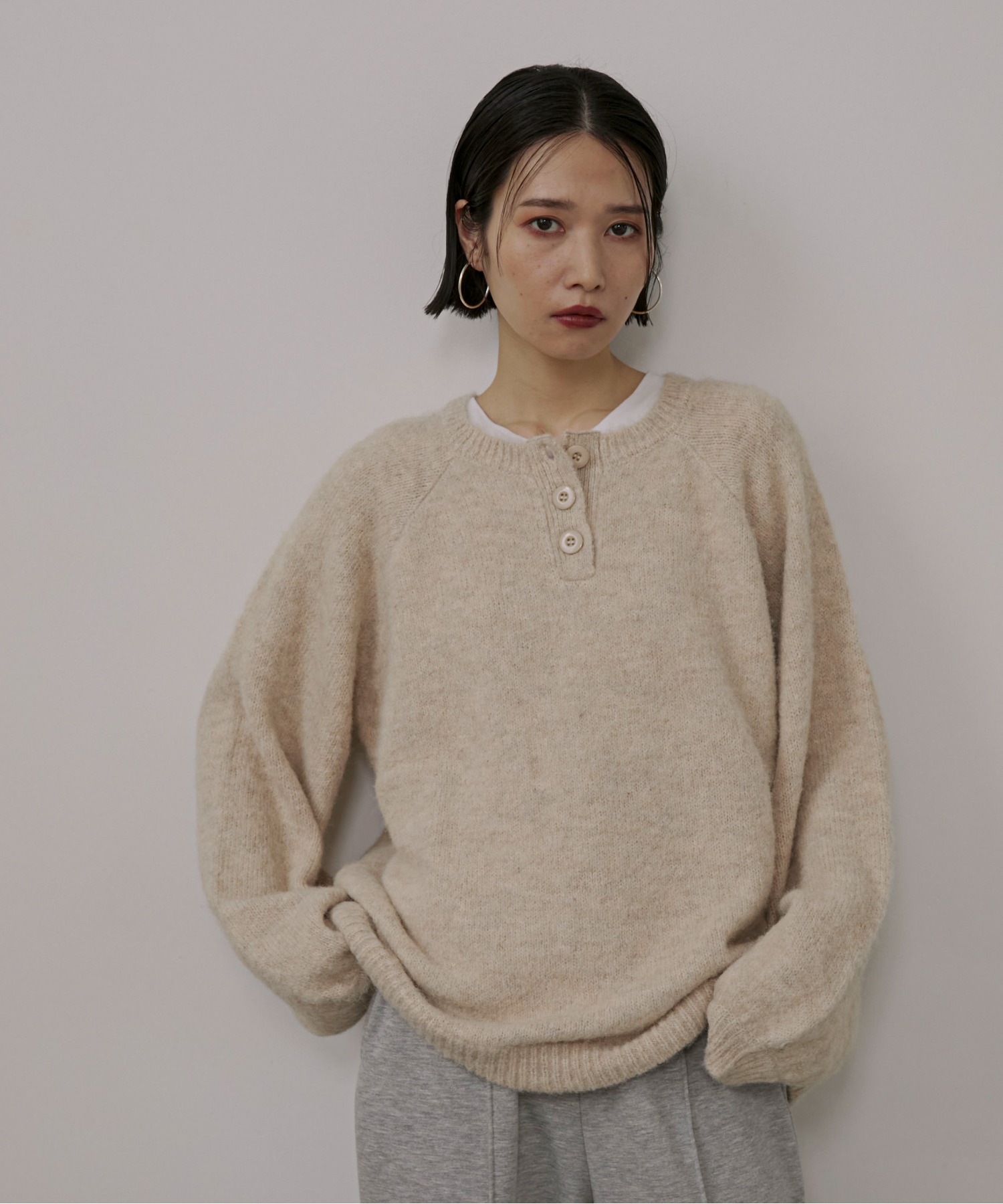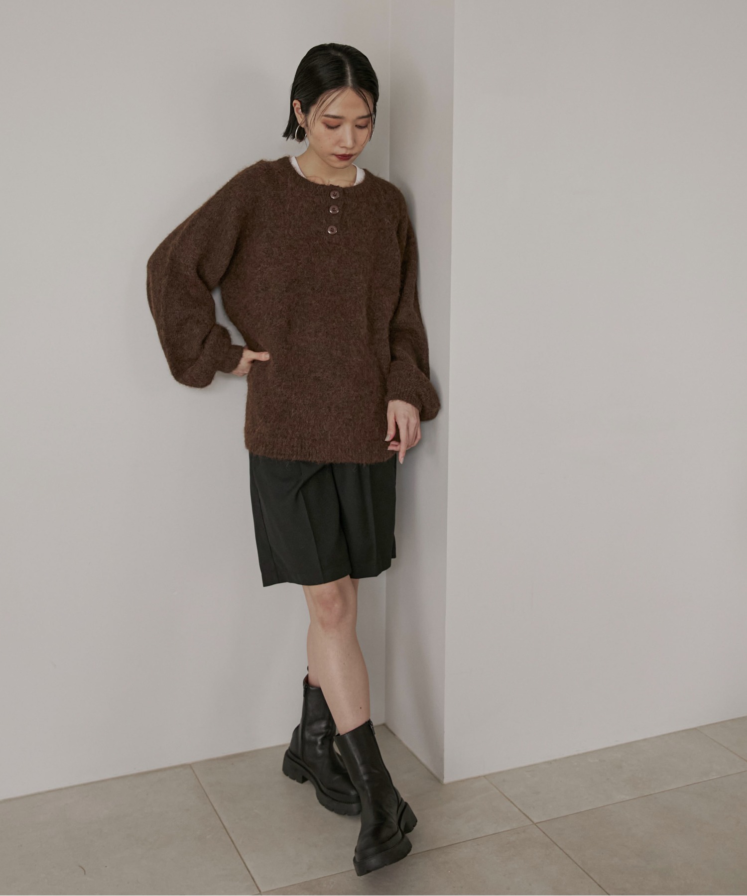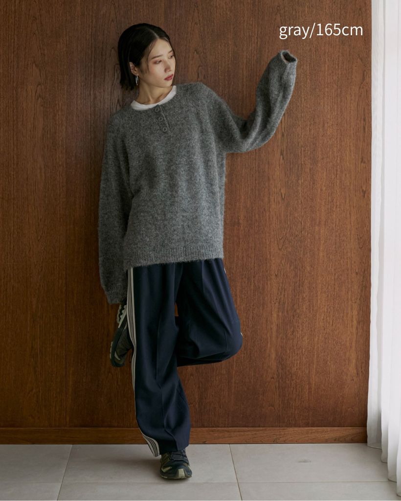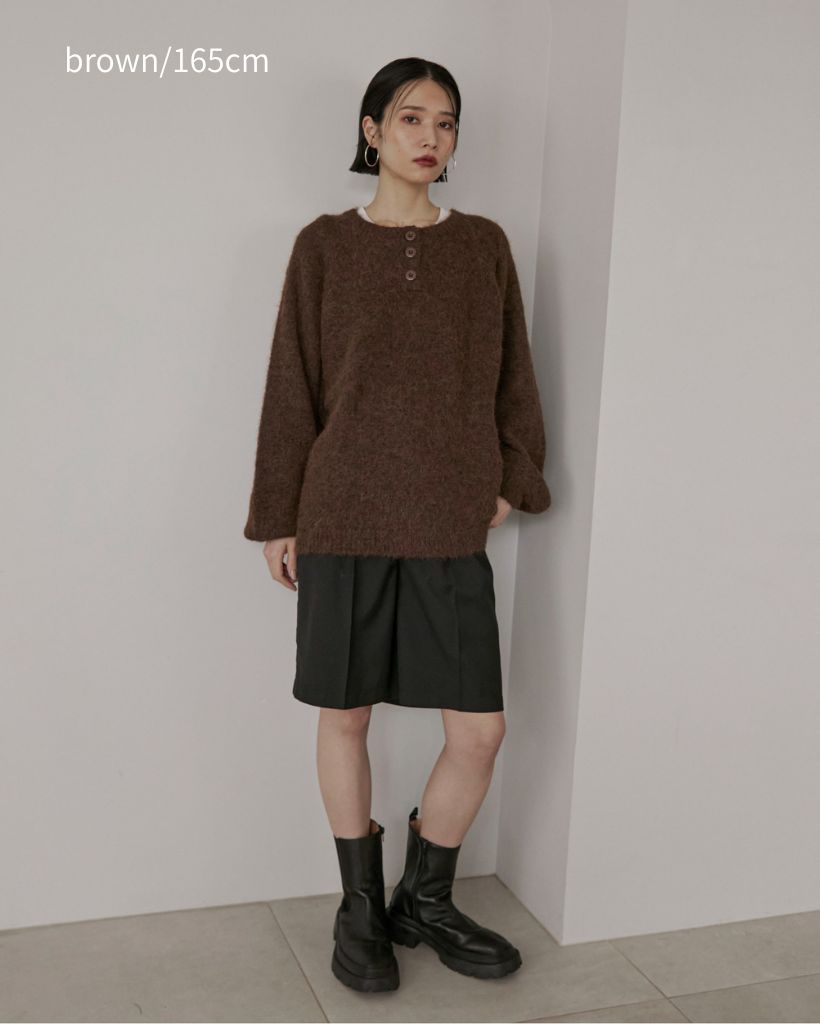 【ハンドウォッシャブル】ウール混起毛ヘンリーニット