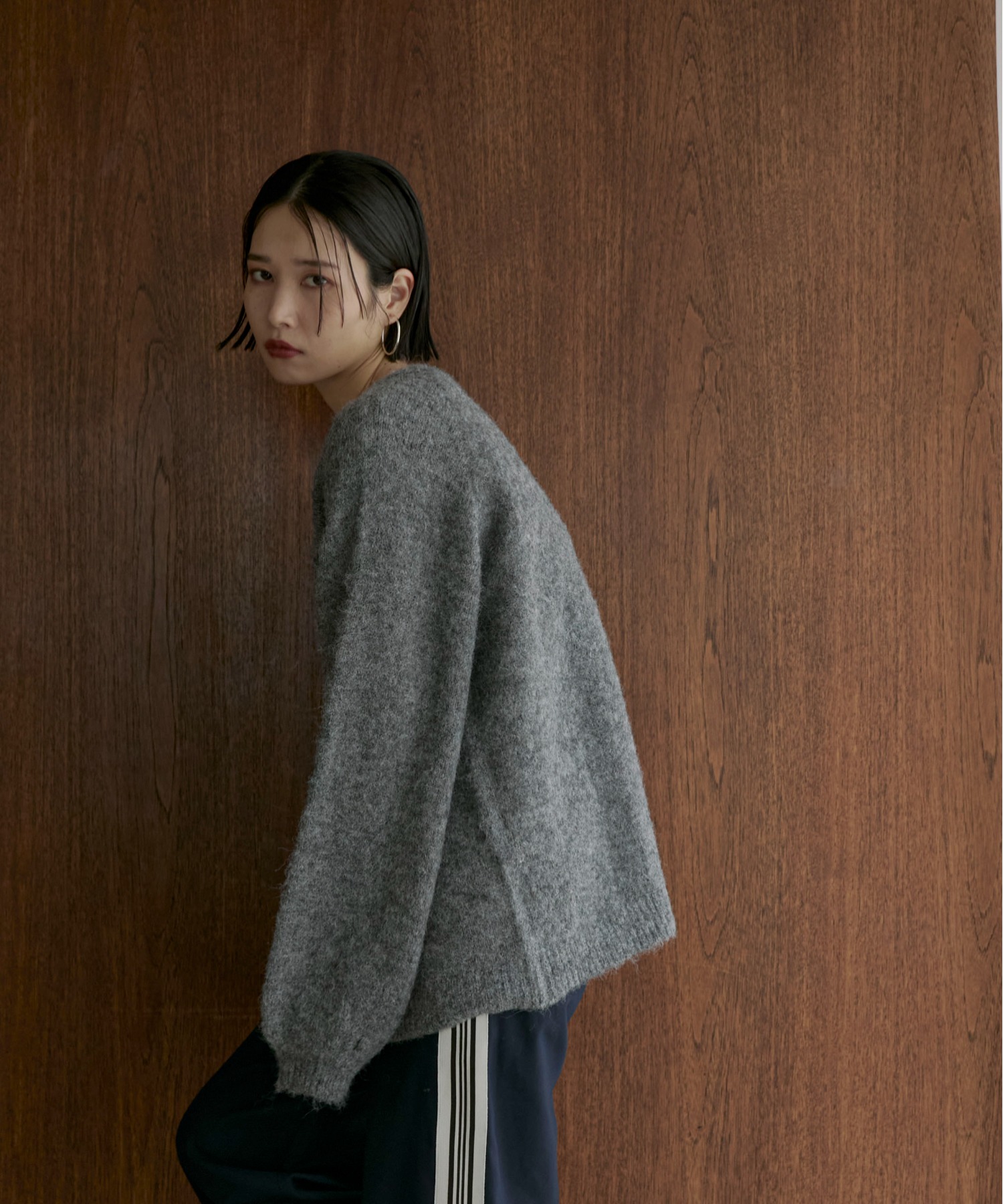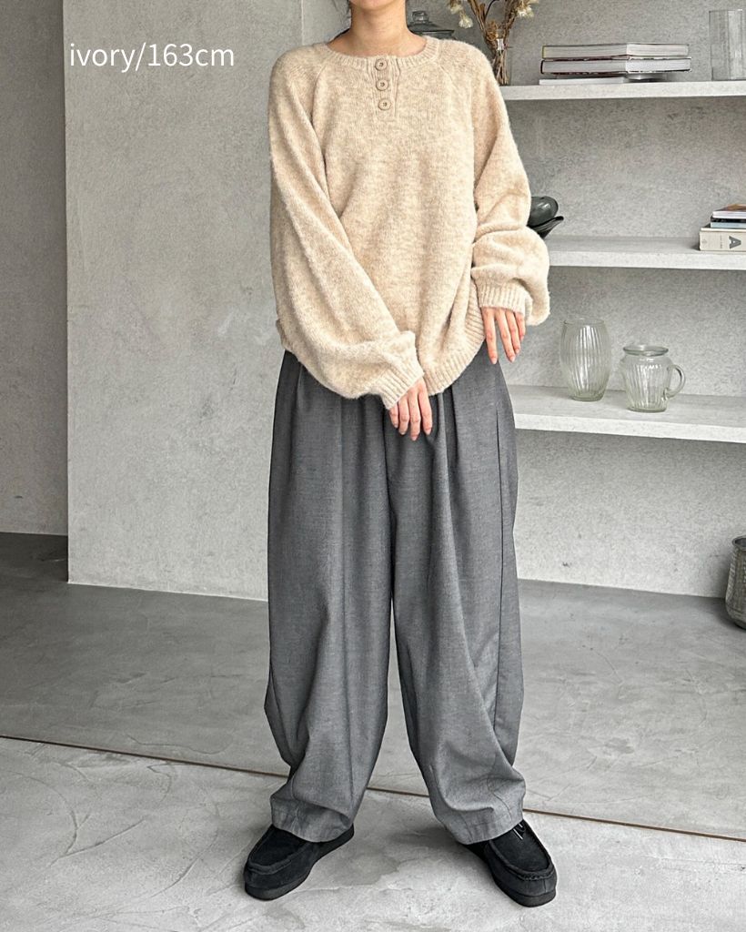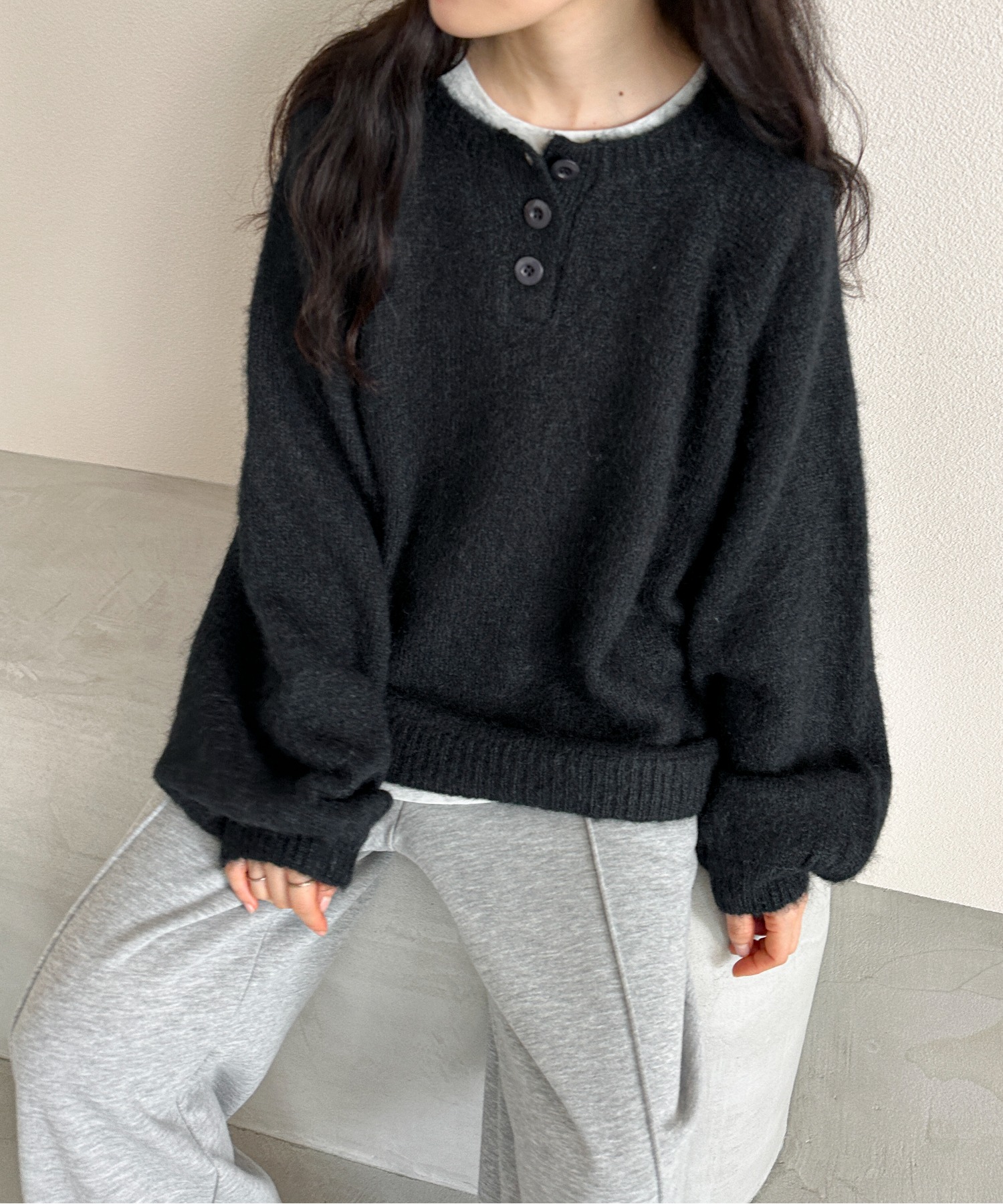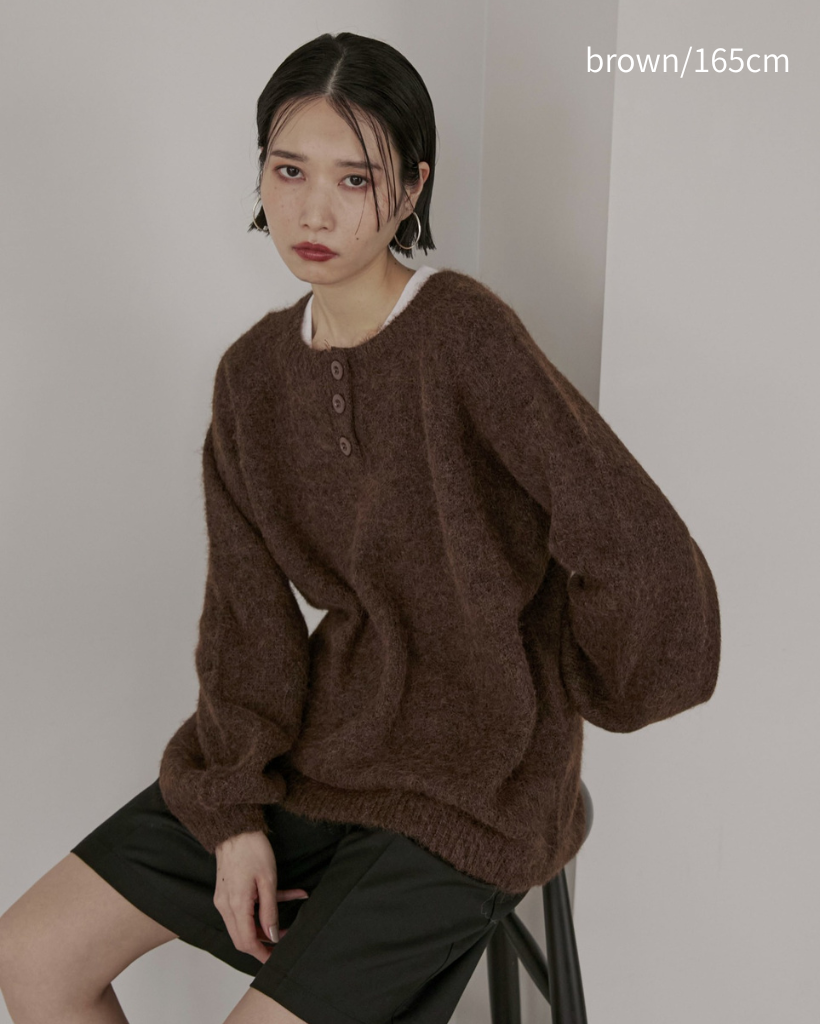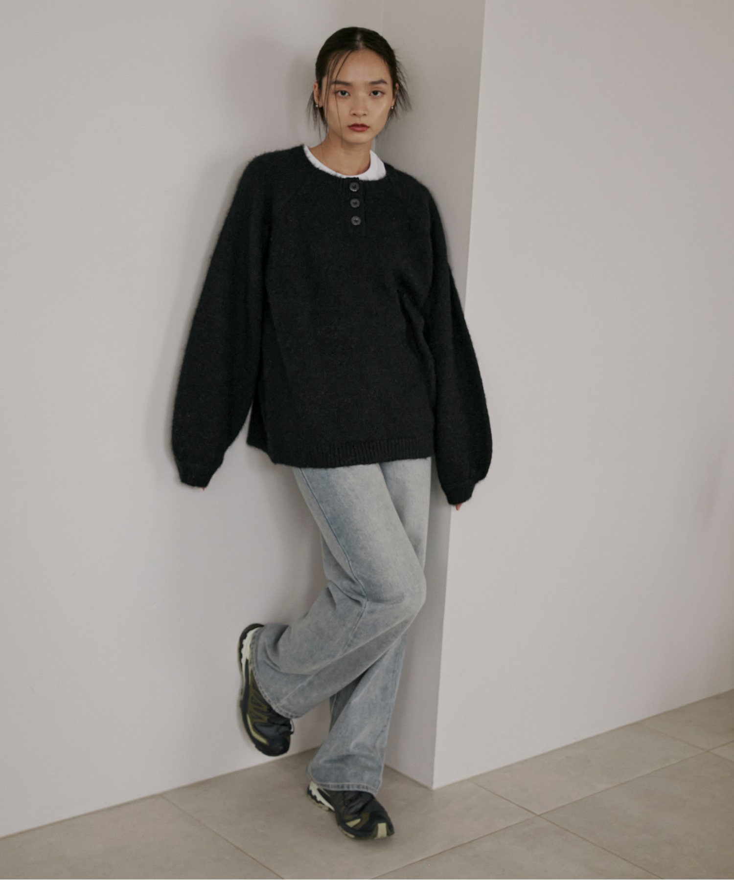 【ハンドウォッシャブル】ウール混起毛ヘンリーニット