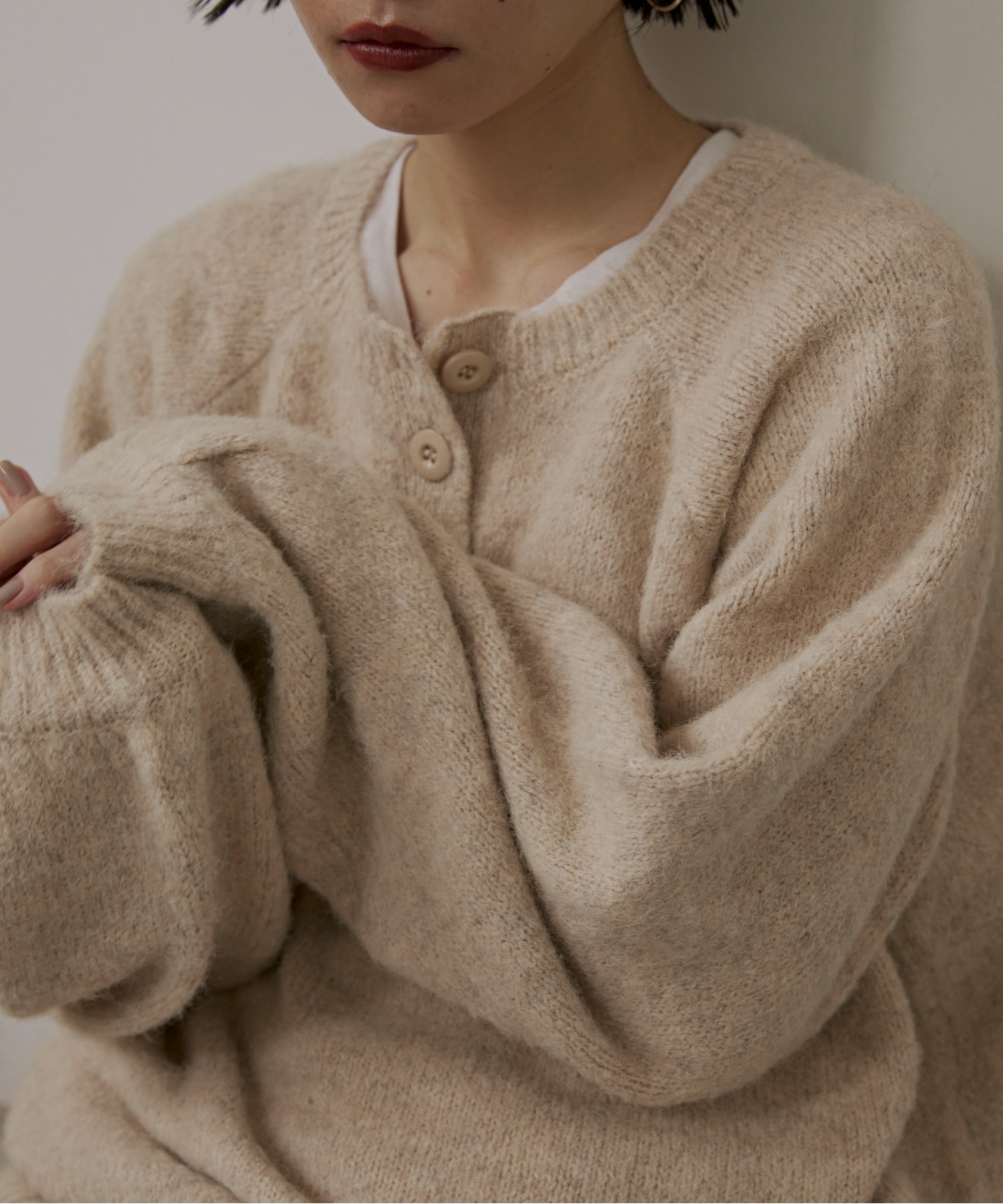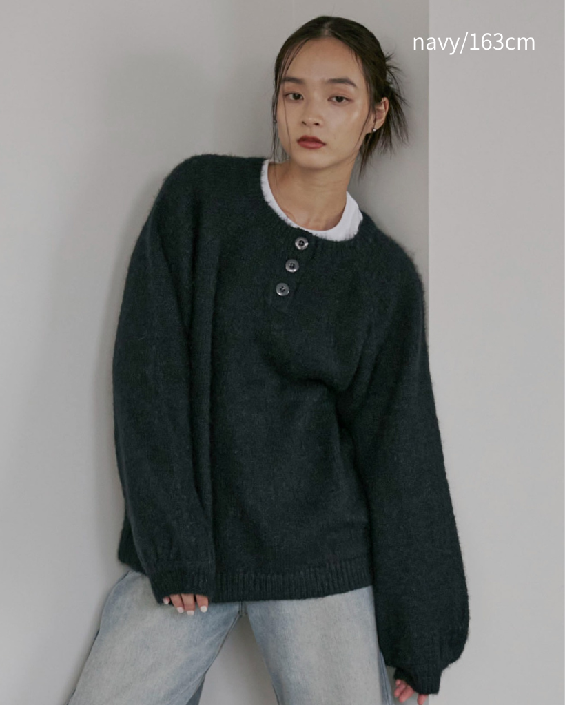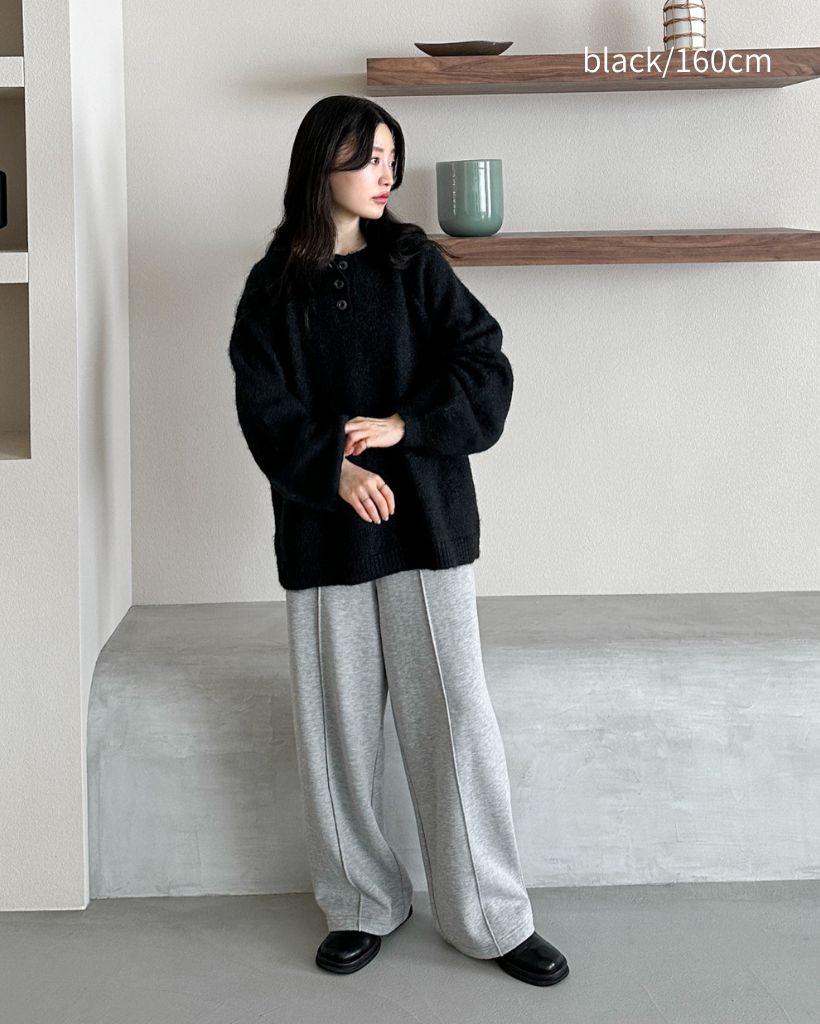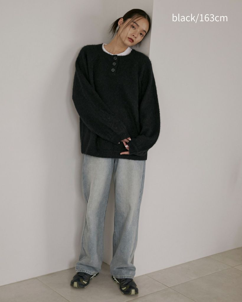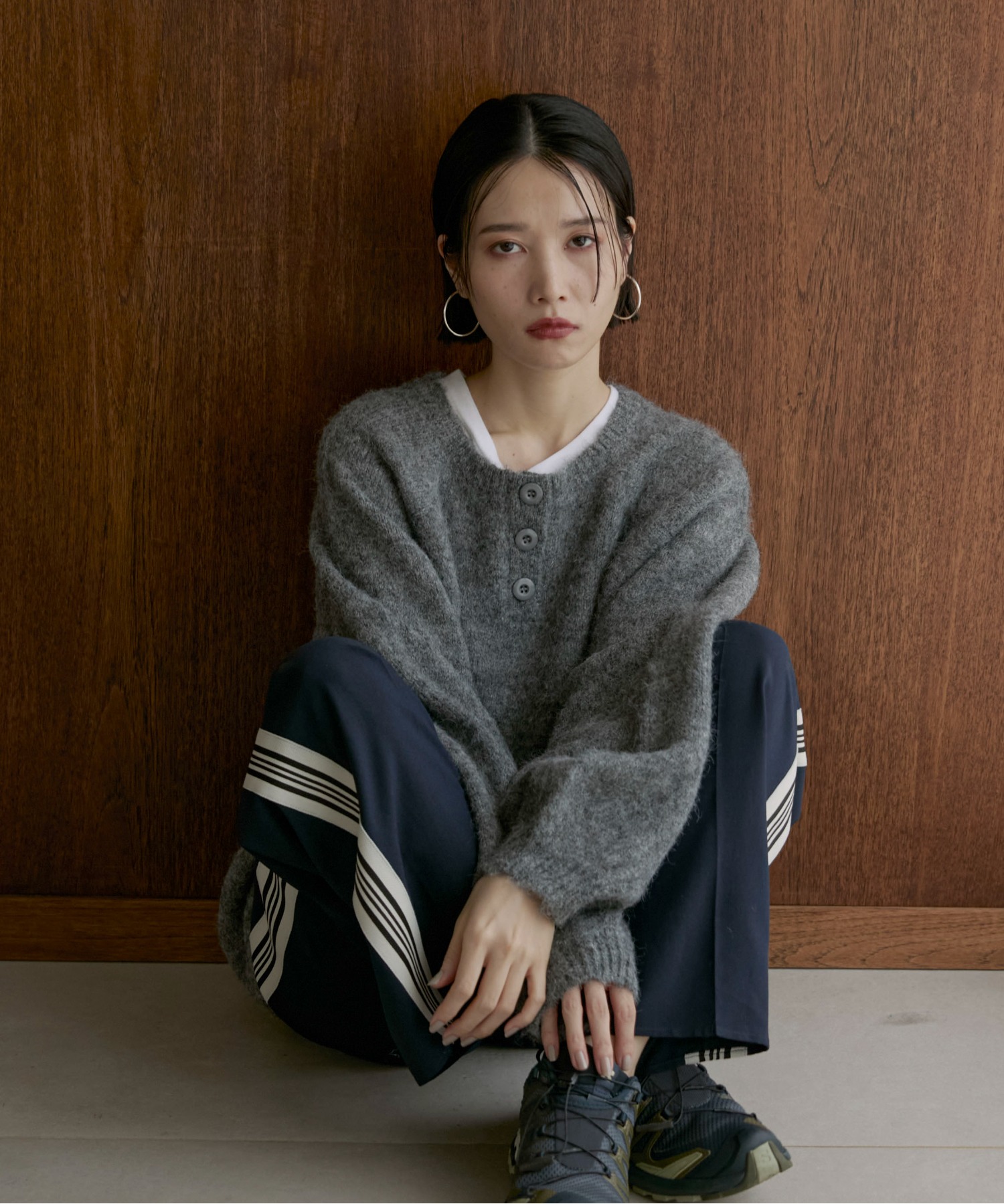 【ハンドウォッシャブル】ウール混起毛ヘンリーニット
