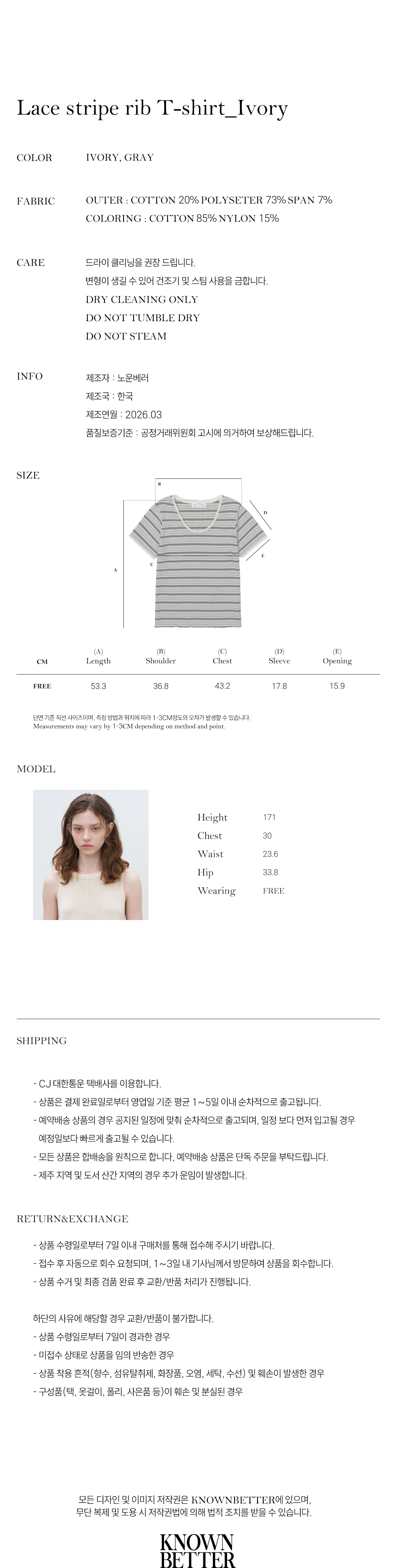 Lace stripe rib T-shirt [KNSS05TS16]_Ivory