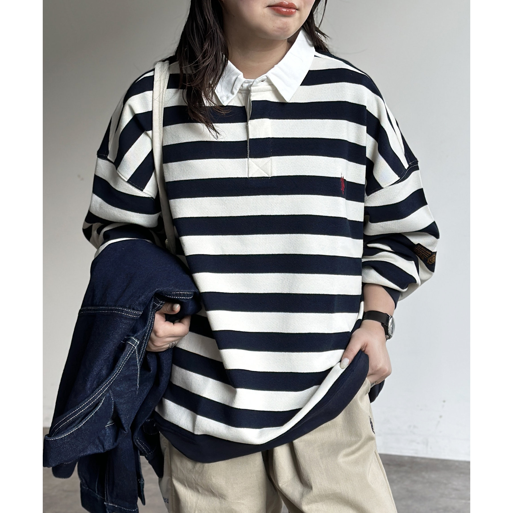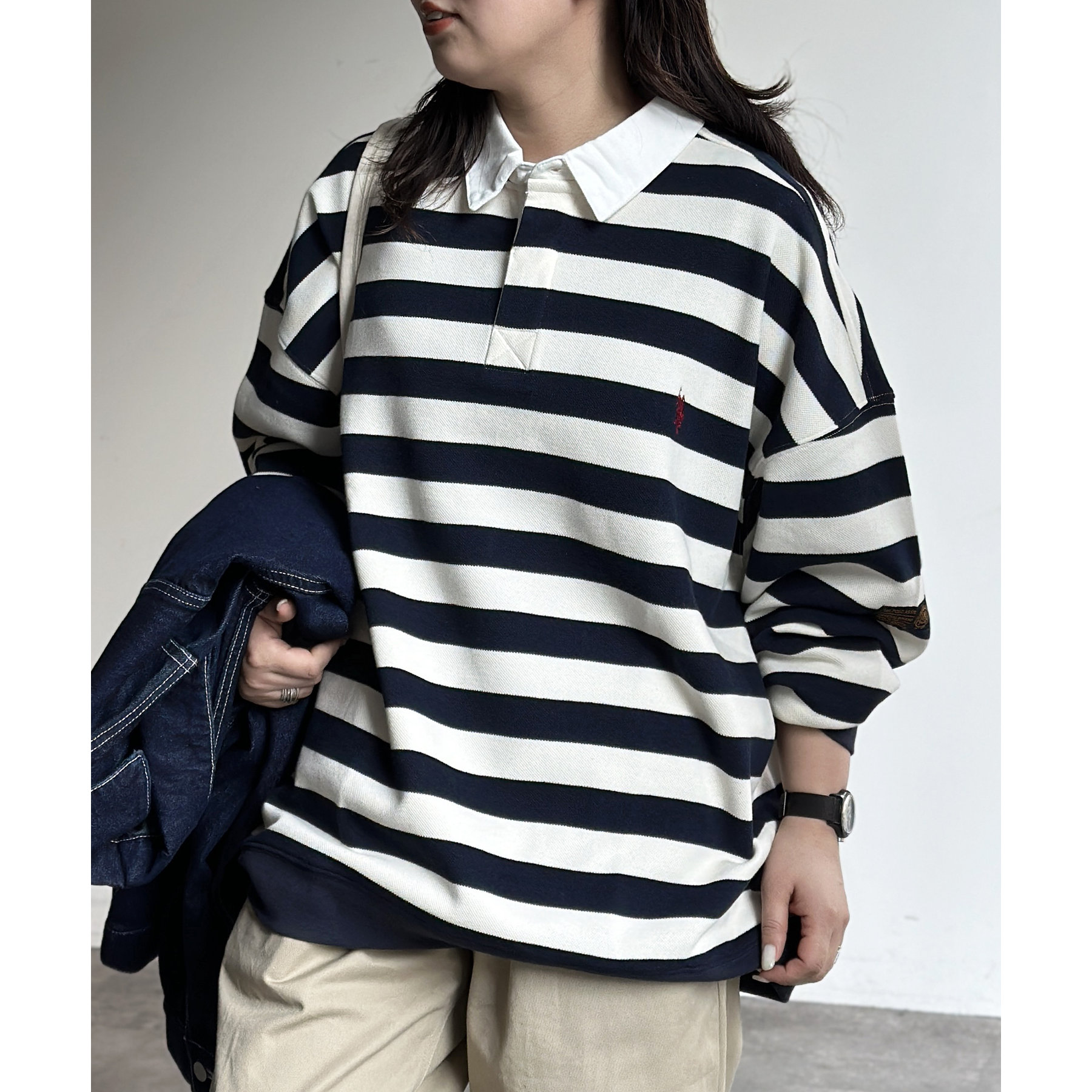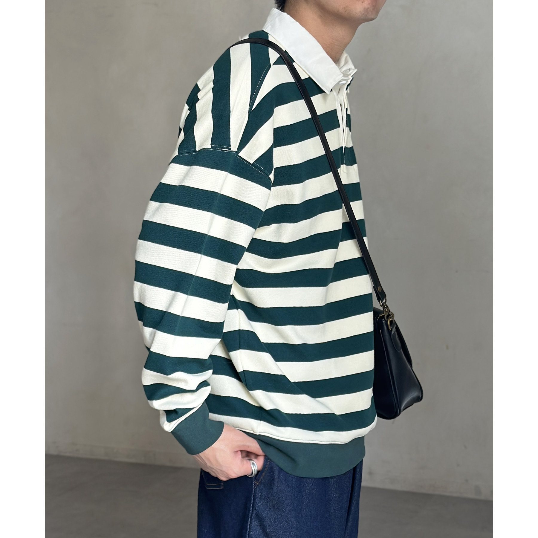 カラーによって異なるボーダー柄が楽しめるラガーシャツ