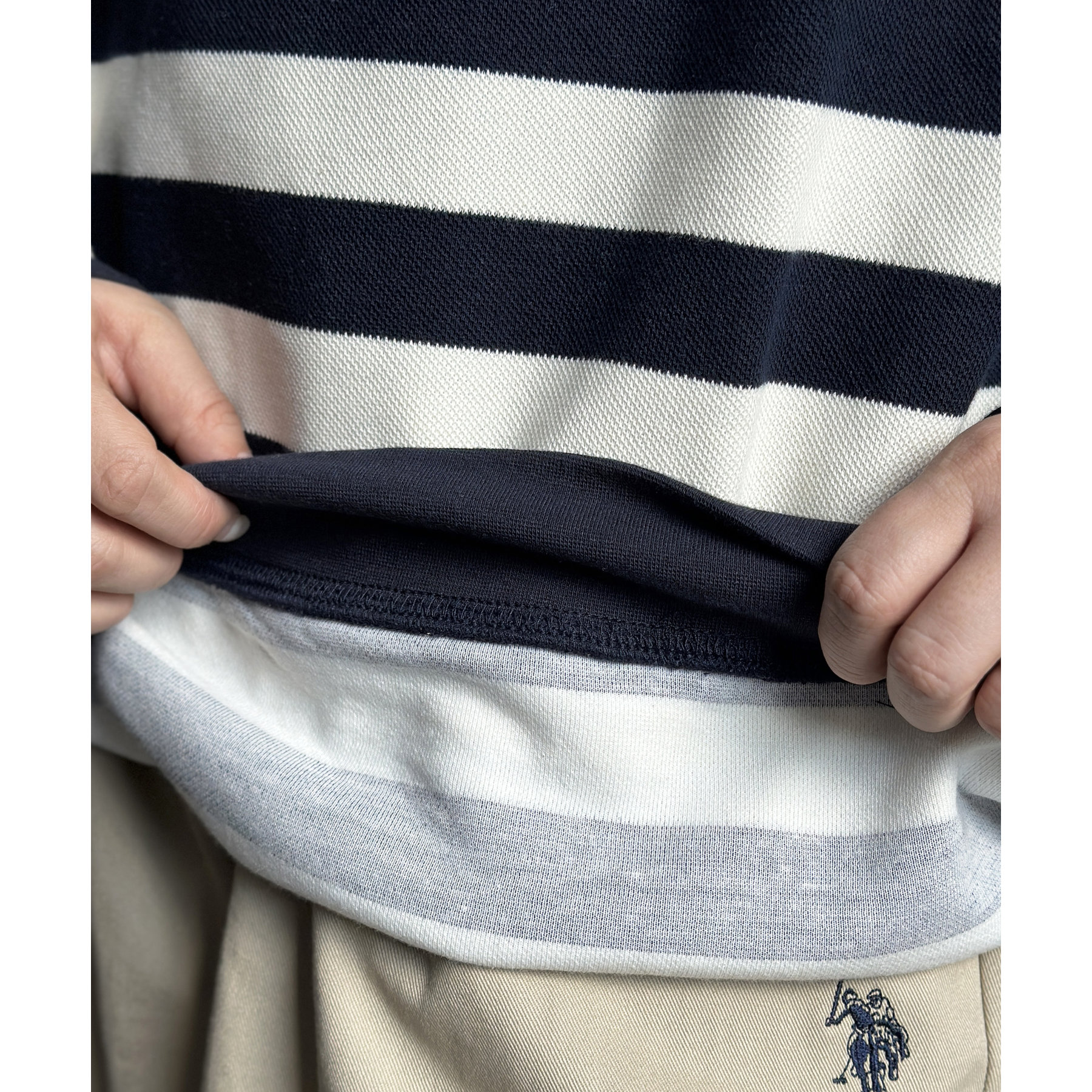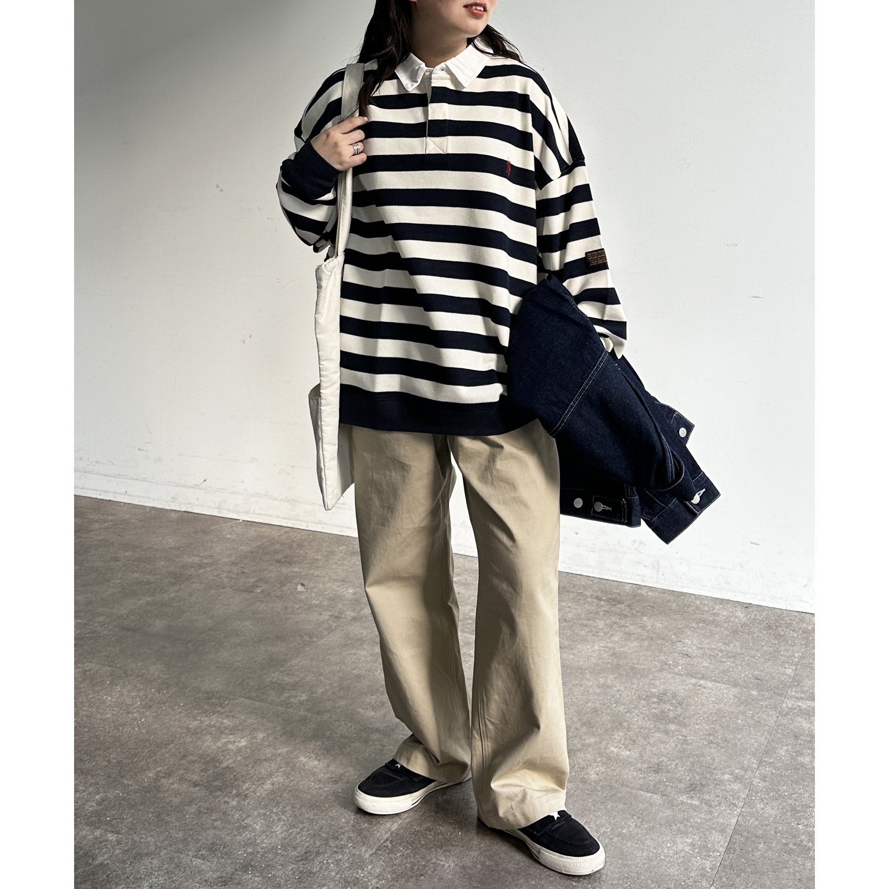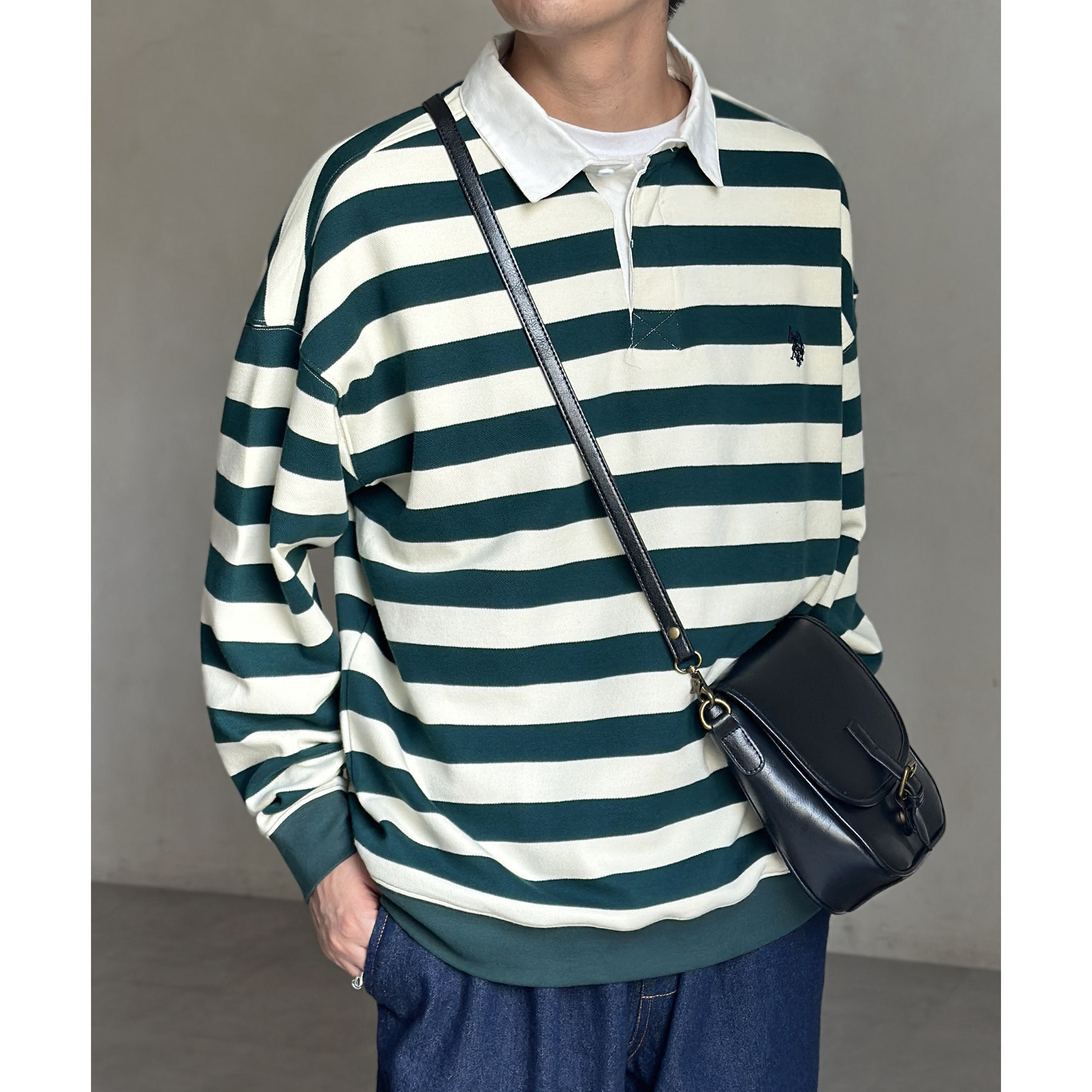 カラーによって異なるボーダー柄が楽しめるラガーシャツ