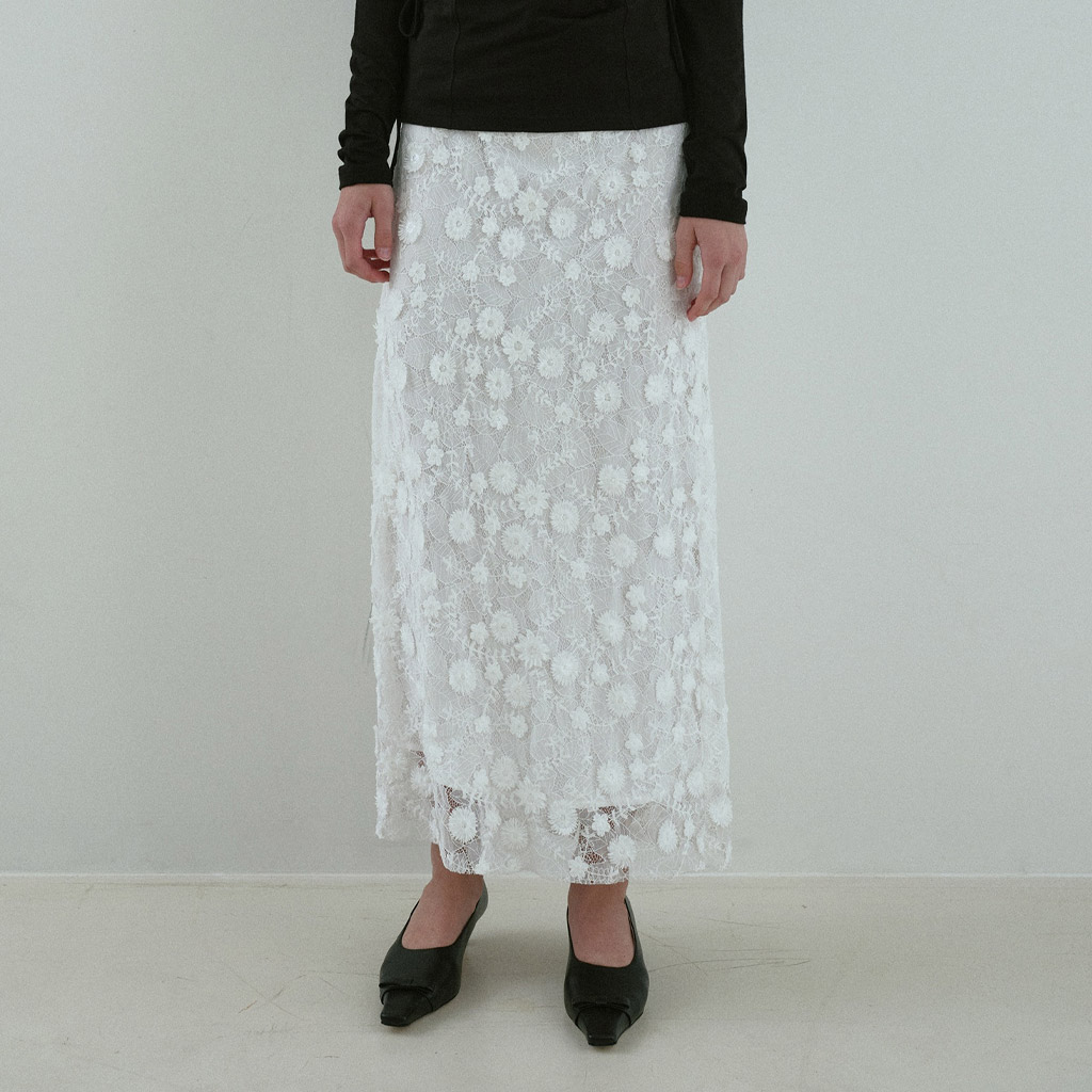 [Influencer pick] APPLIQUE LACE SKIRT_WHITE