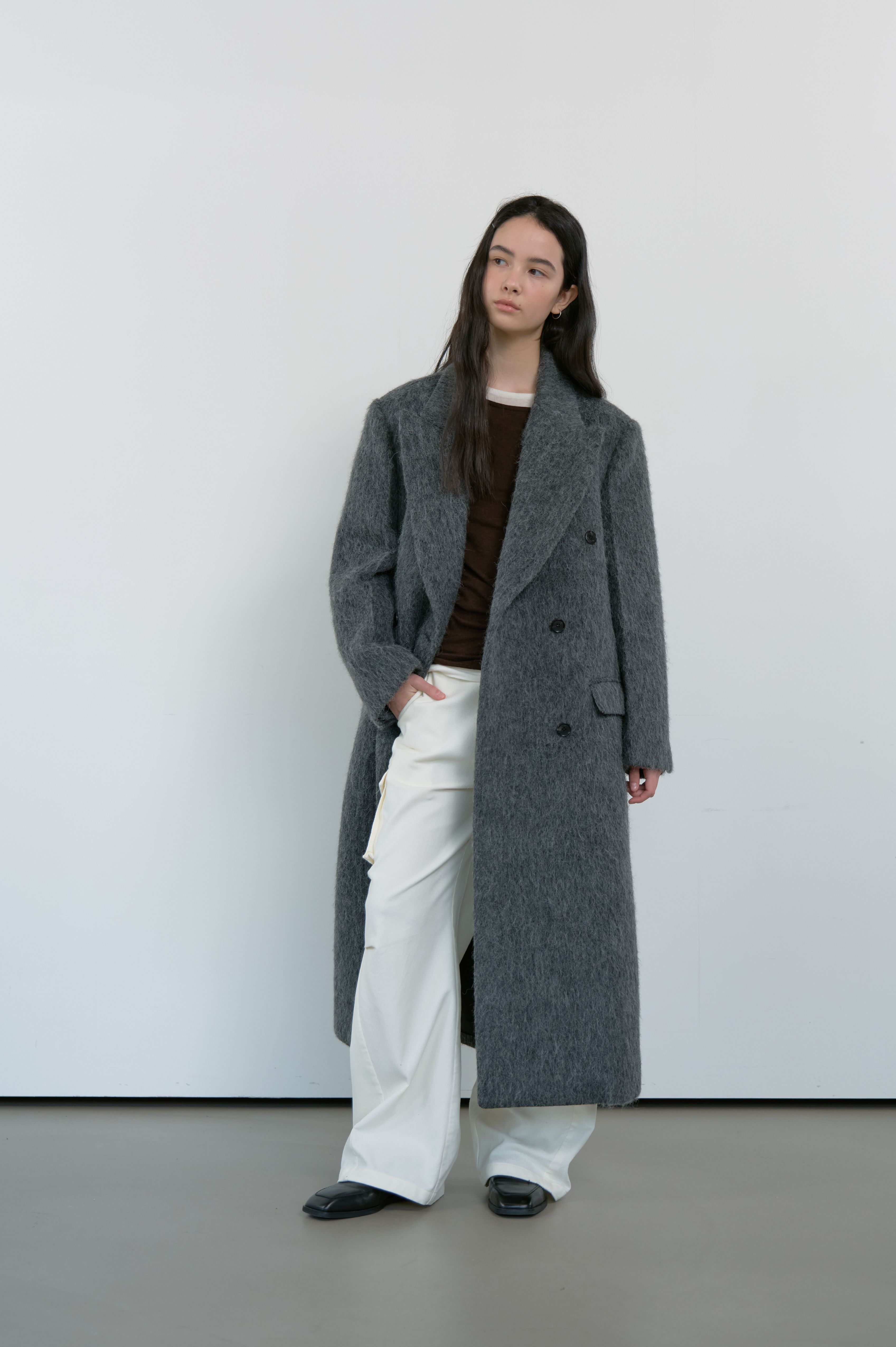 HAIRY ALPACA MAXI LONG COAT_CHARCOAL