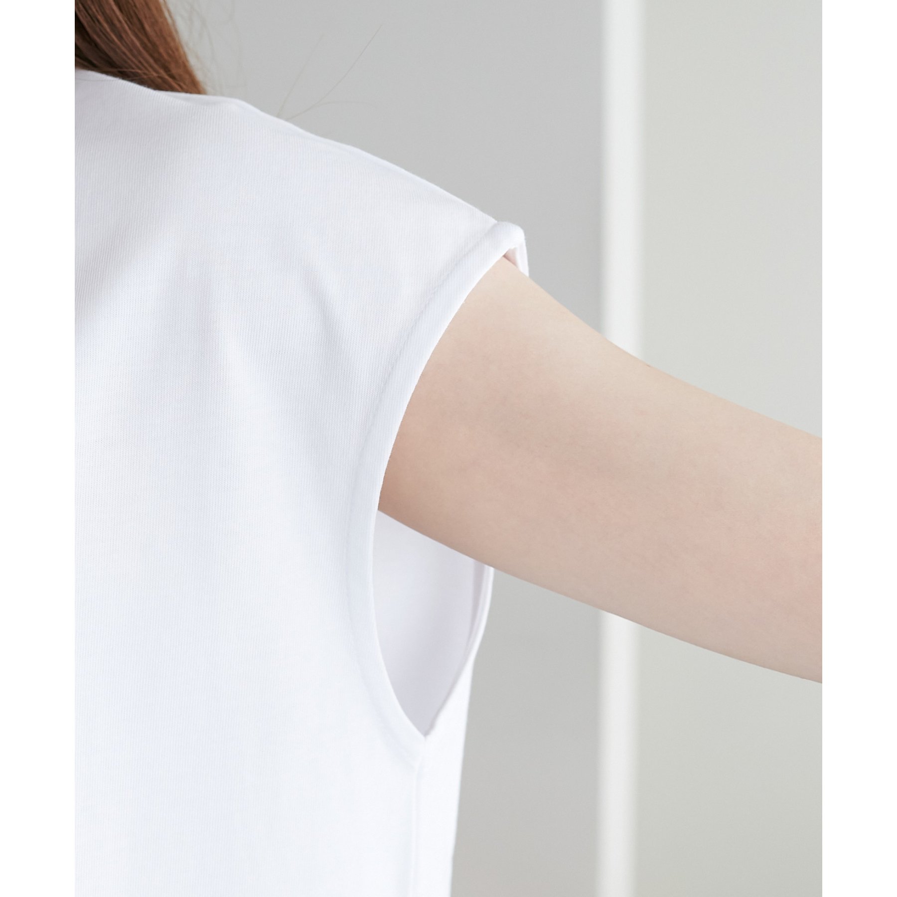 158cmスタッフ:フレンチスリーブで、気になる二の腕周りをすっきり見せてくれるのがうれしいポイントです〇