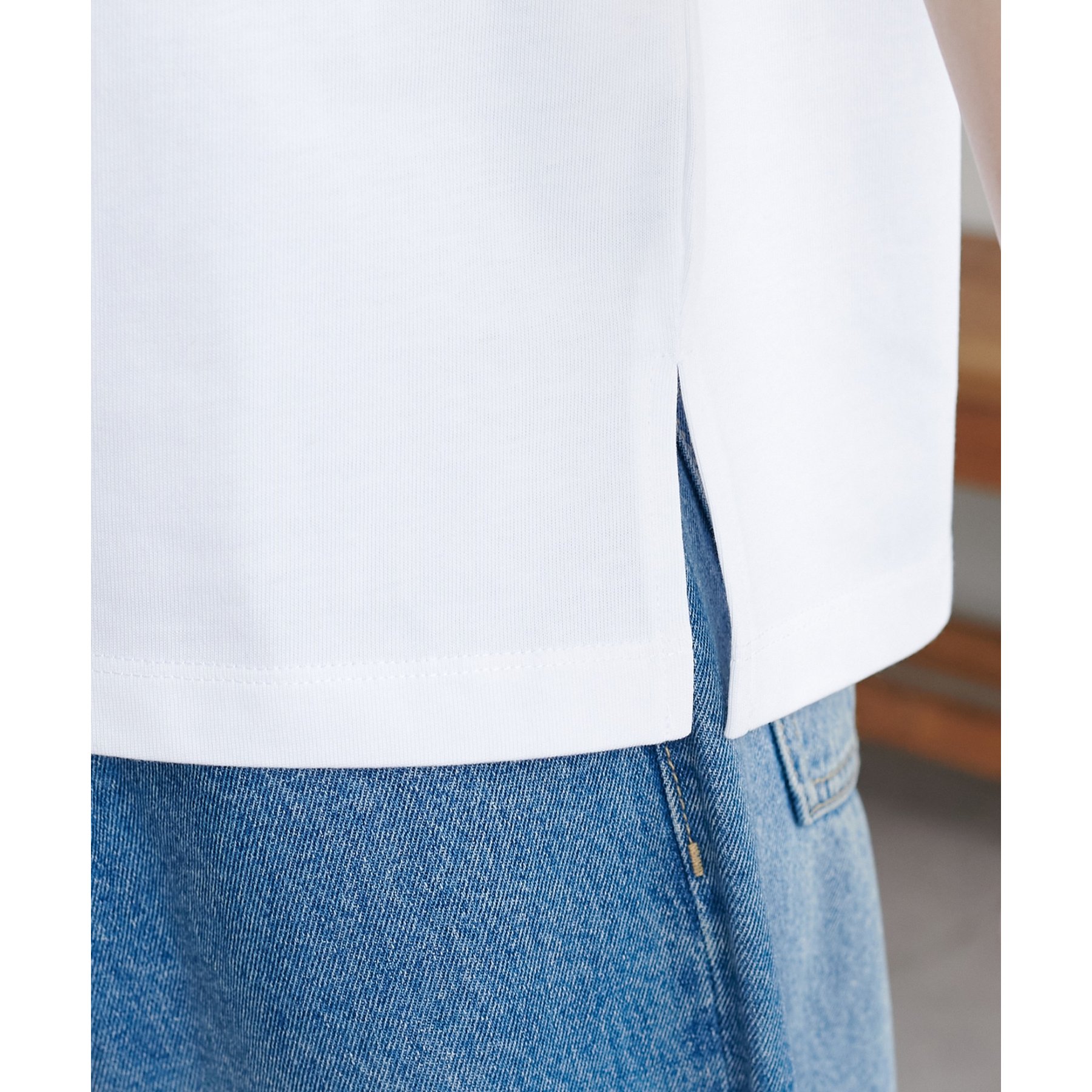 長すぎない丈感はインもしやすく、スリットが施されていることでアウトスタイルでも抜け感をプラスしてくれます。