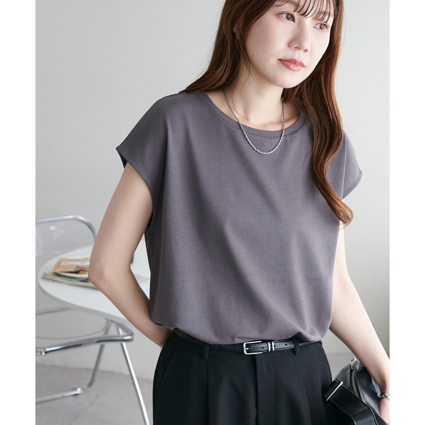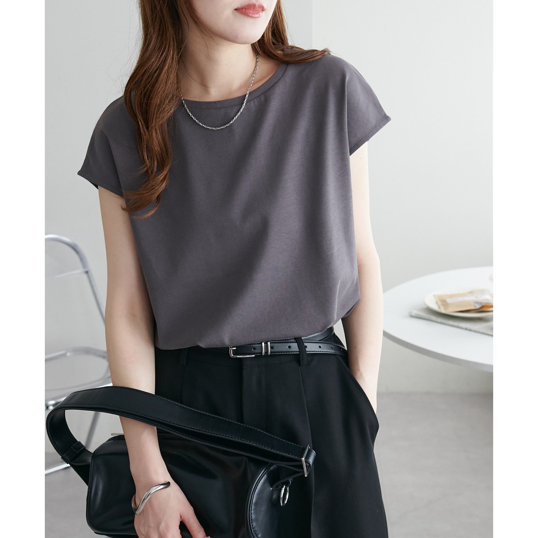 デイリー使いしやすいシンプルなデザインのトップス。