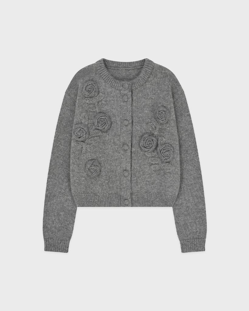 Rose Artwork Hairy Cardigan (Melange Grey)