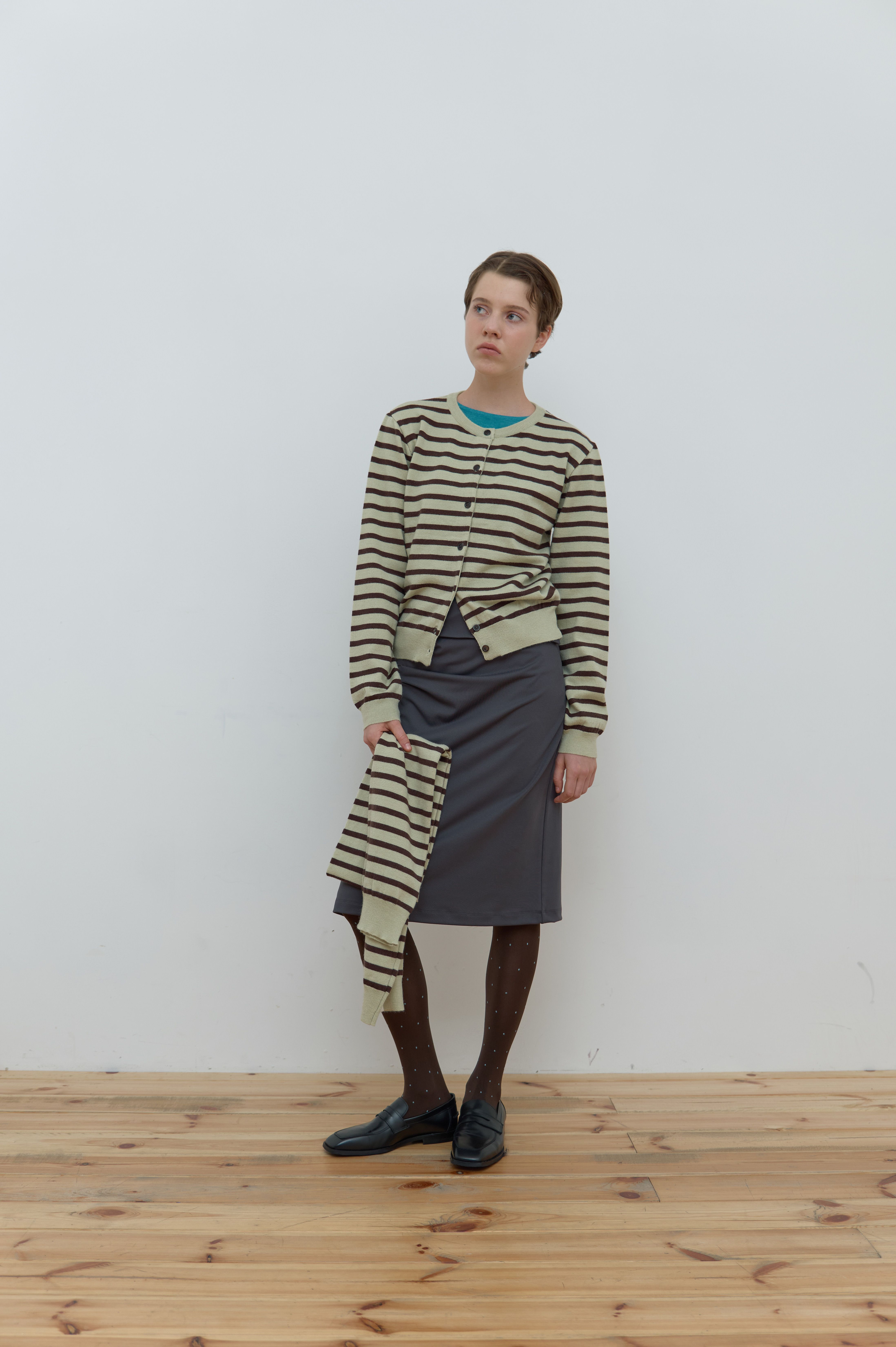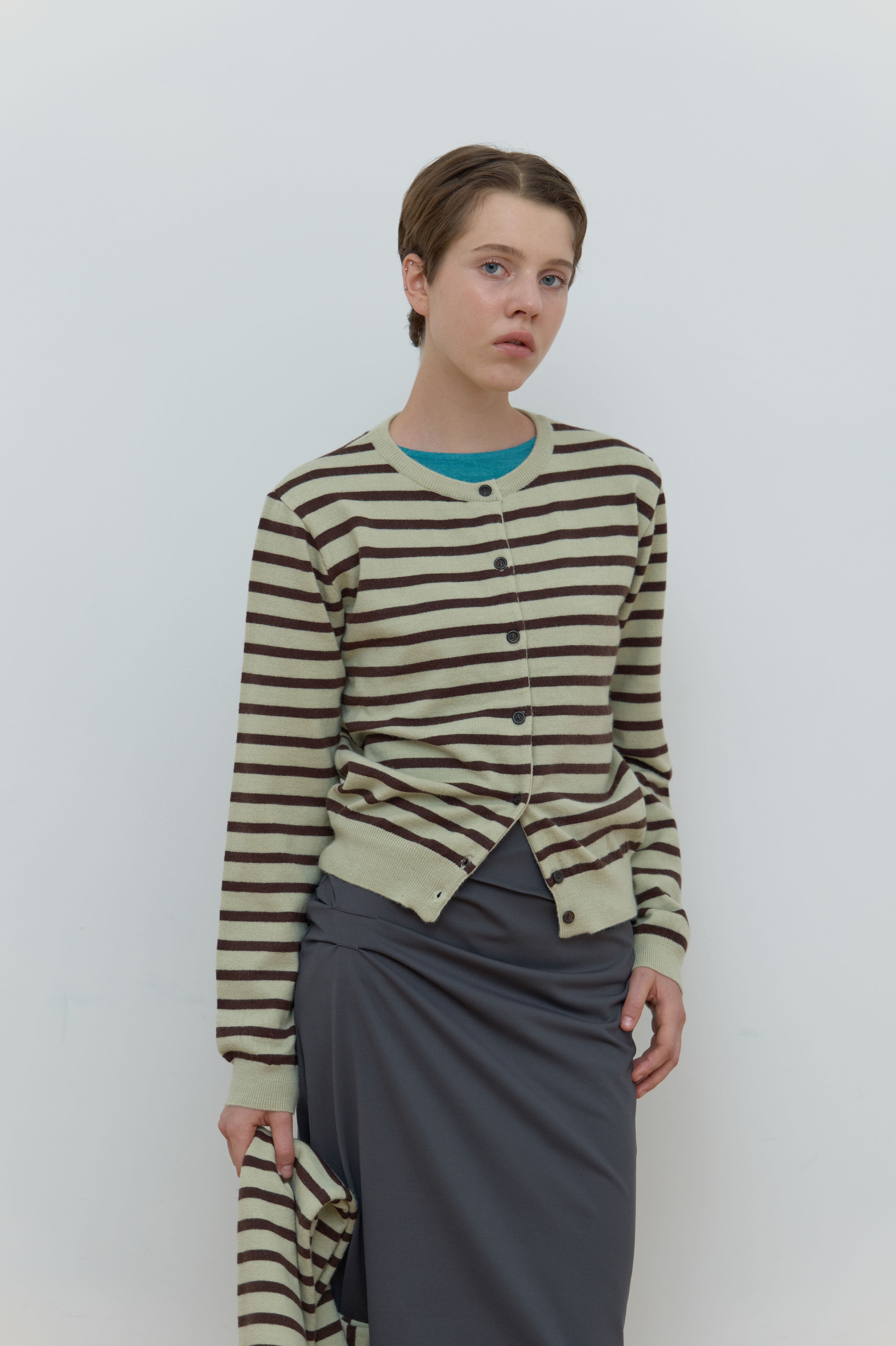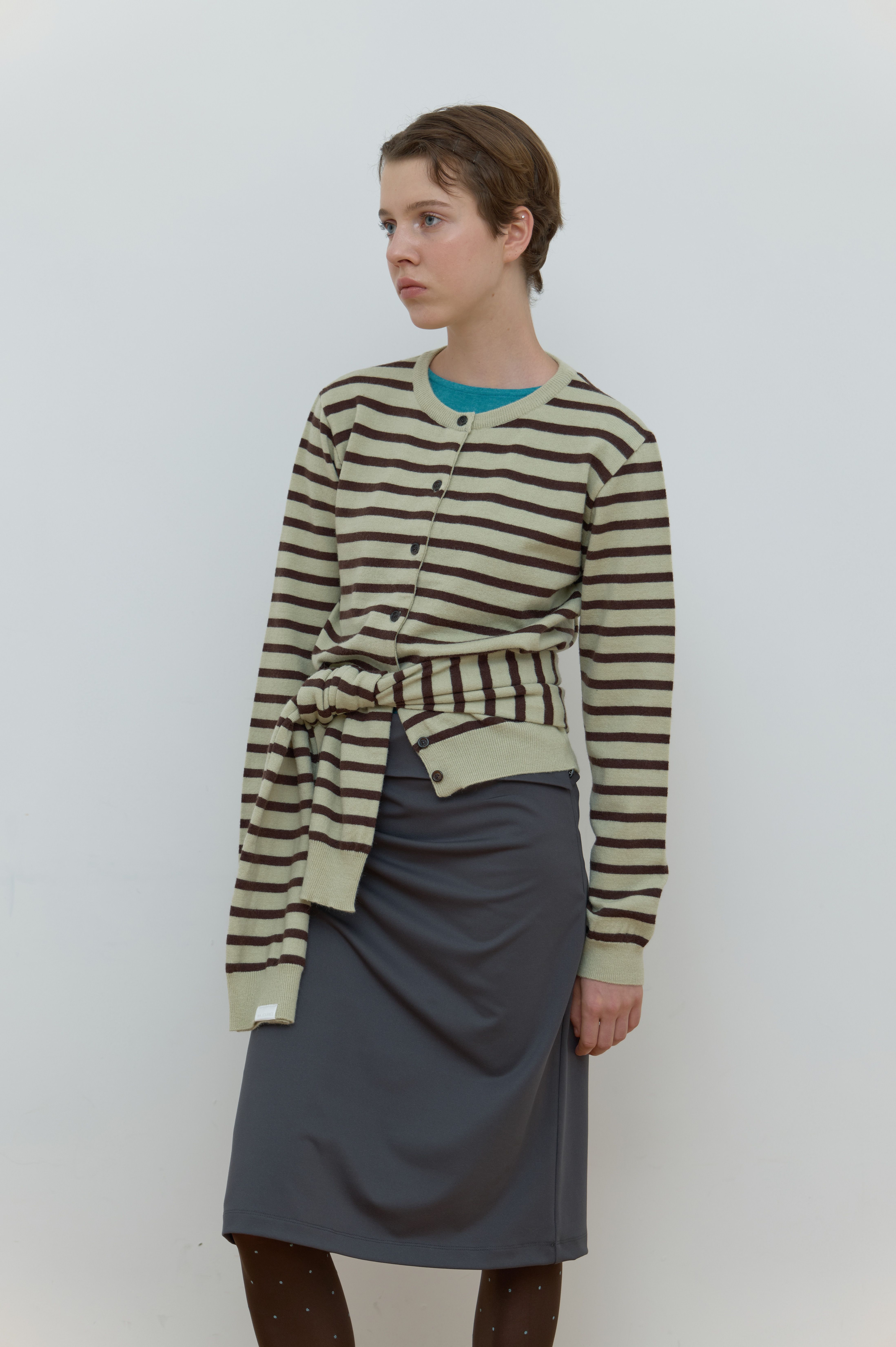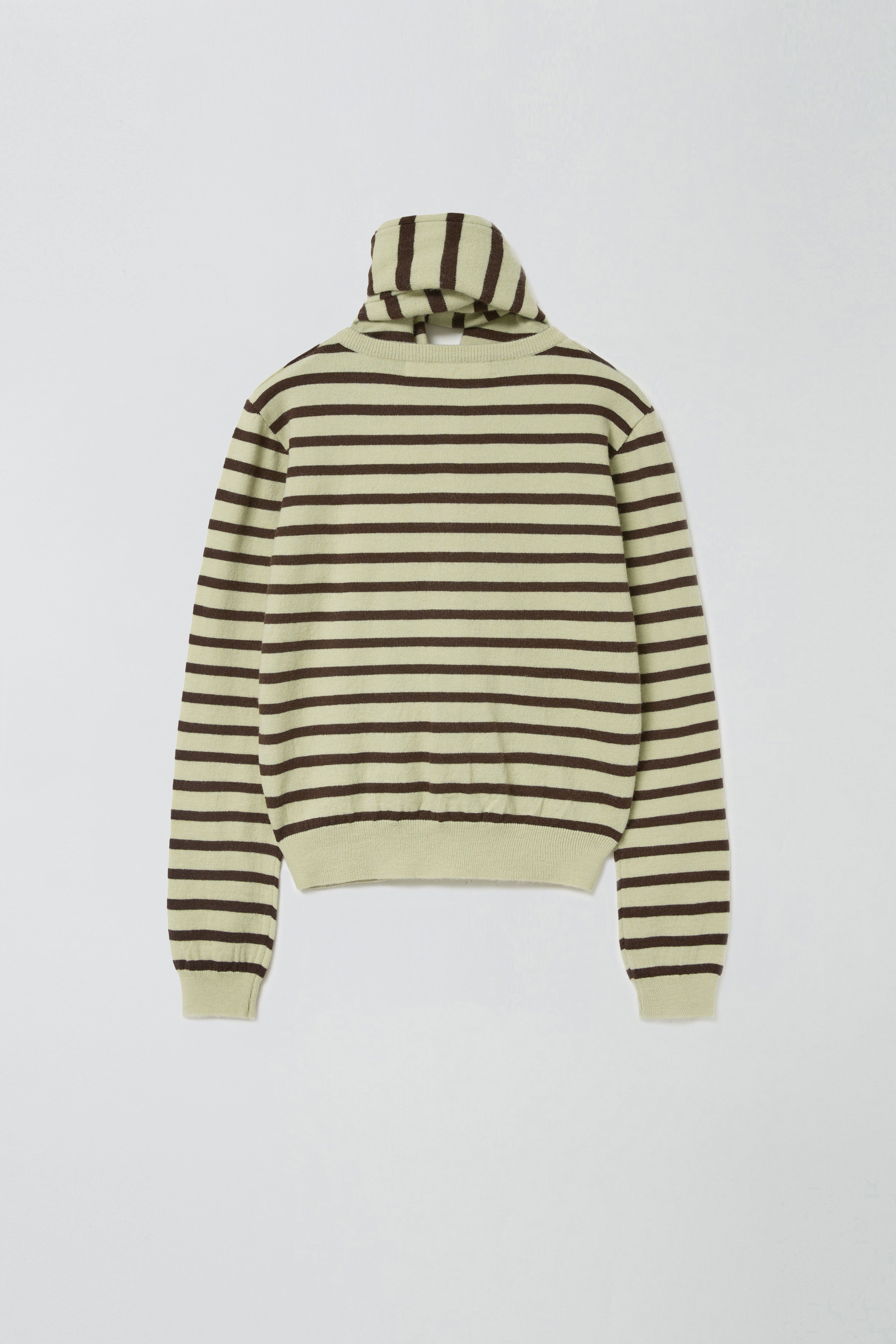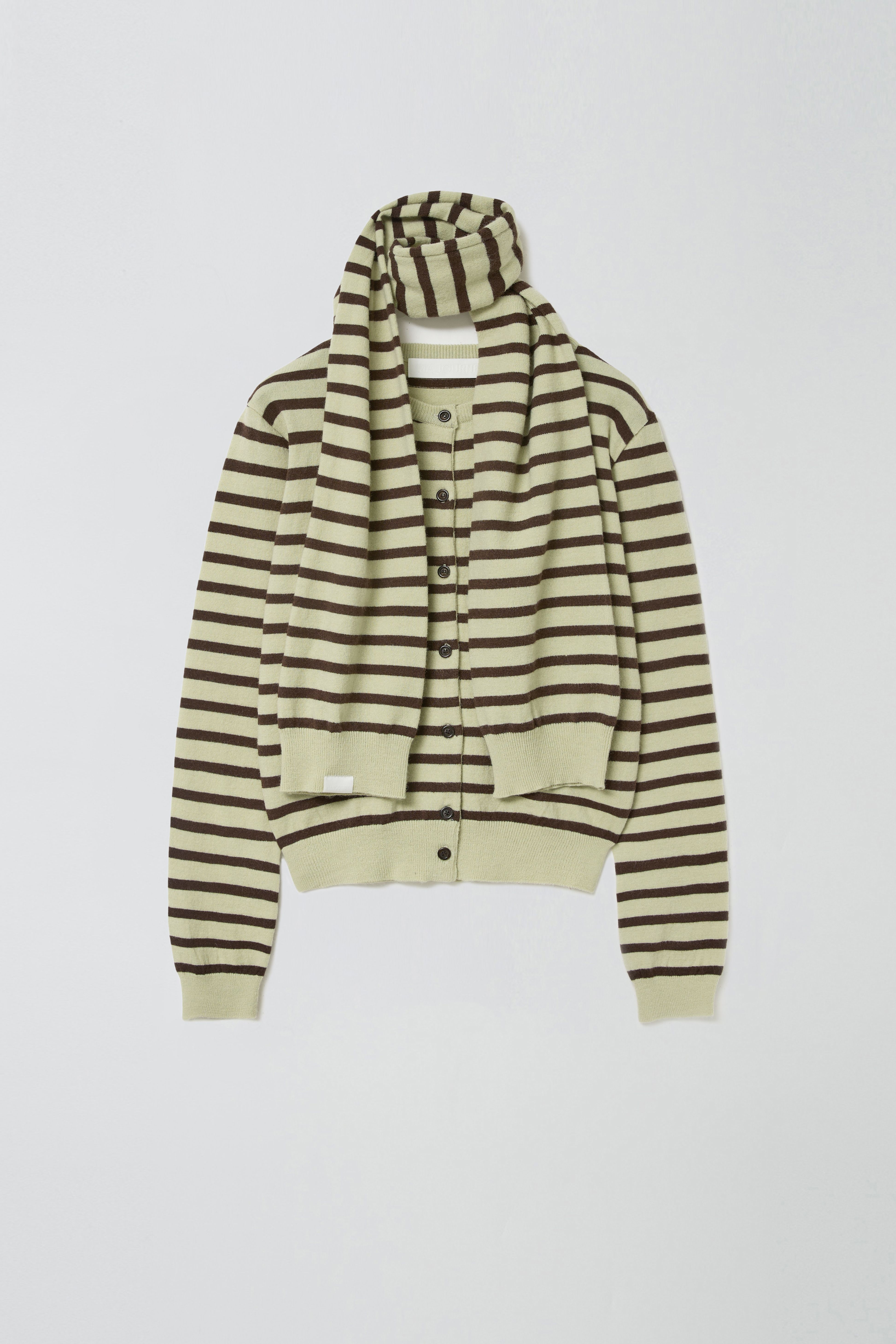MUFFLER SET STRIPE CARDIGAN_MINT/BROWN