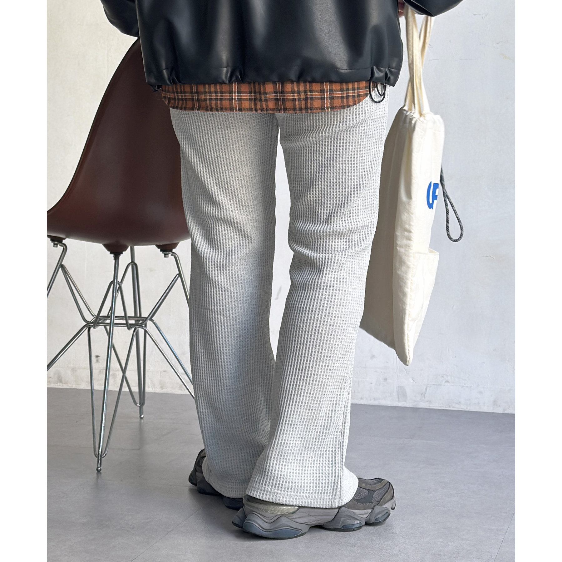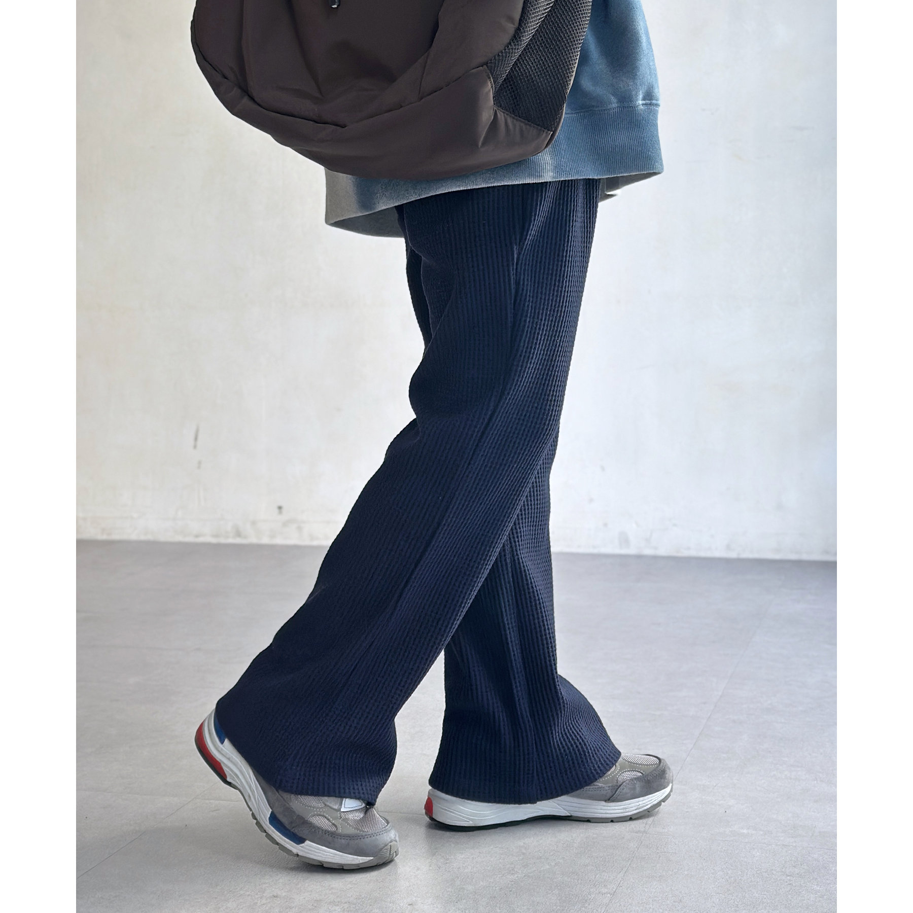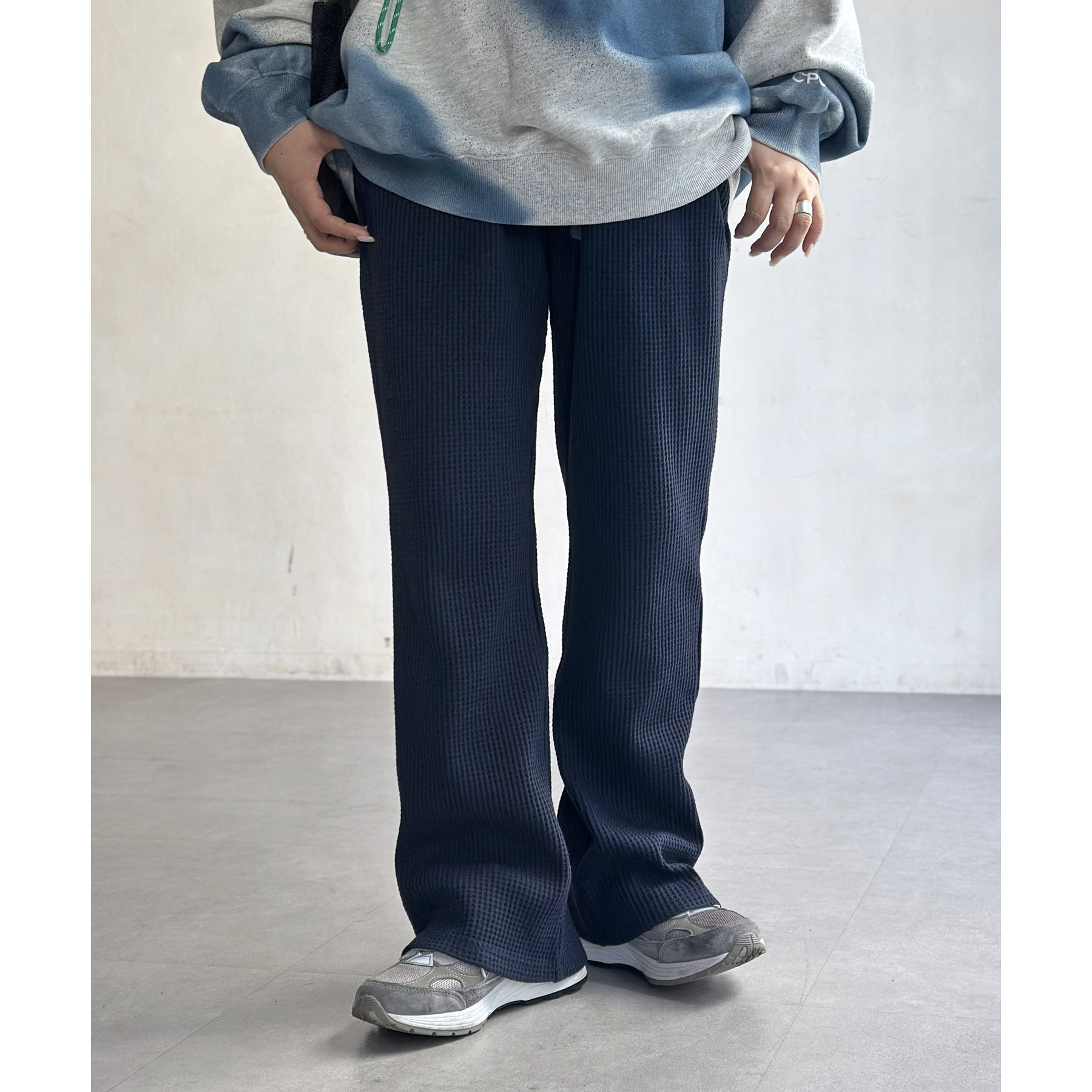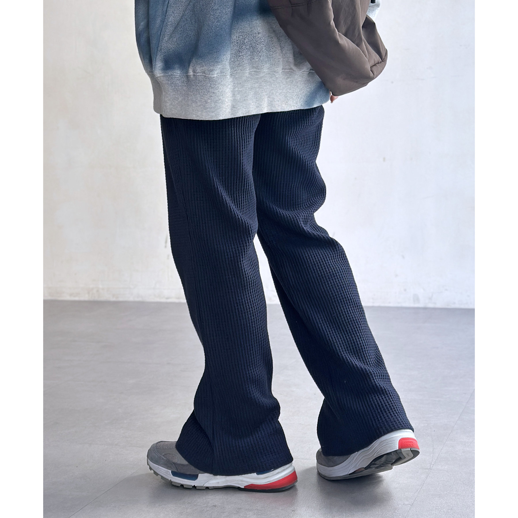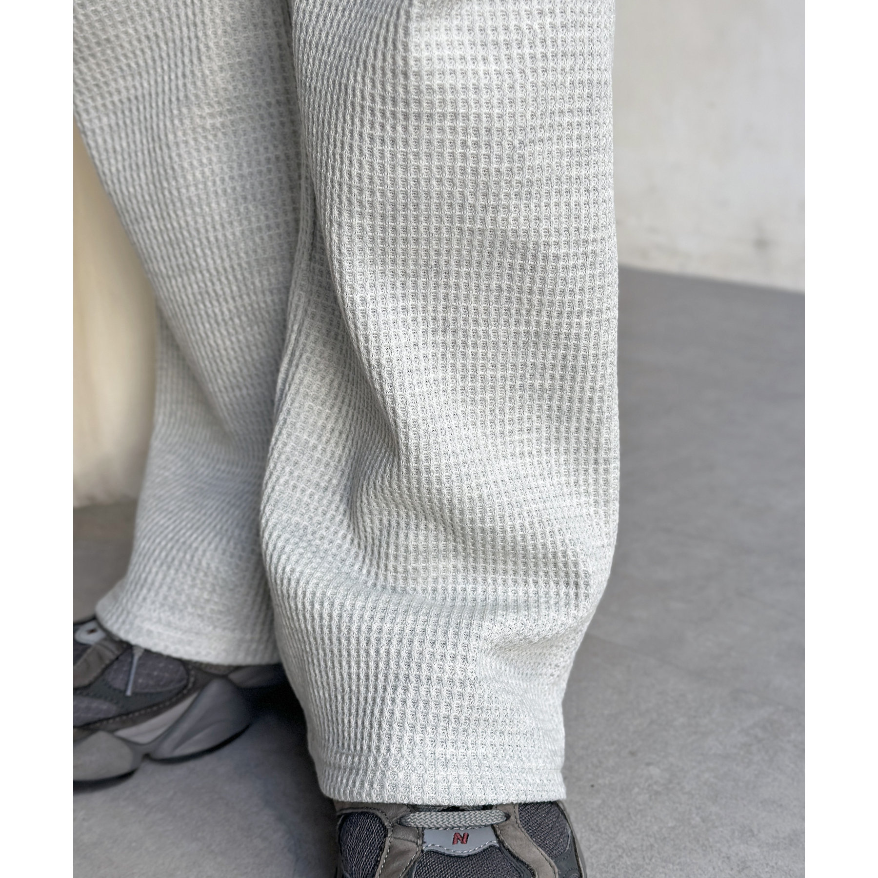 ワッフル素材でリラックスした着心地のイージーパンツ