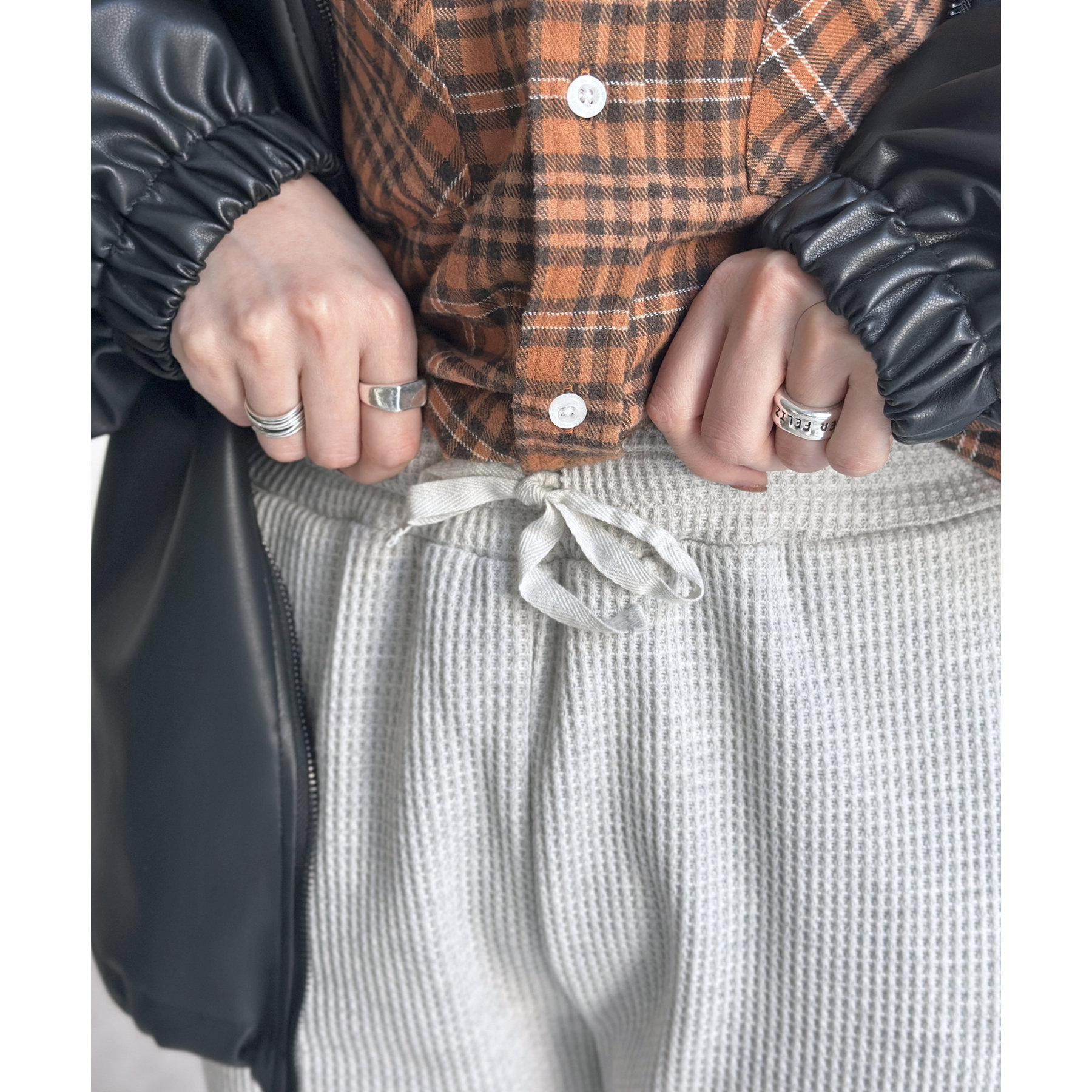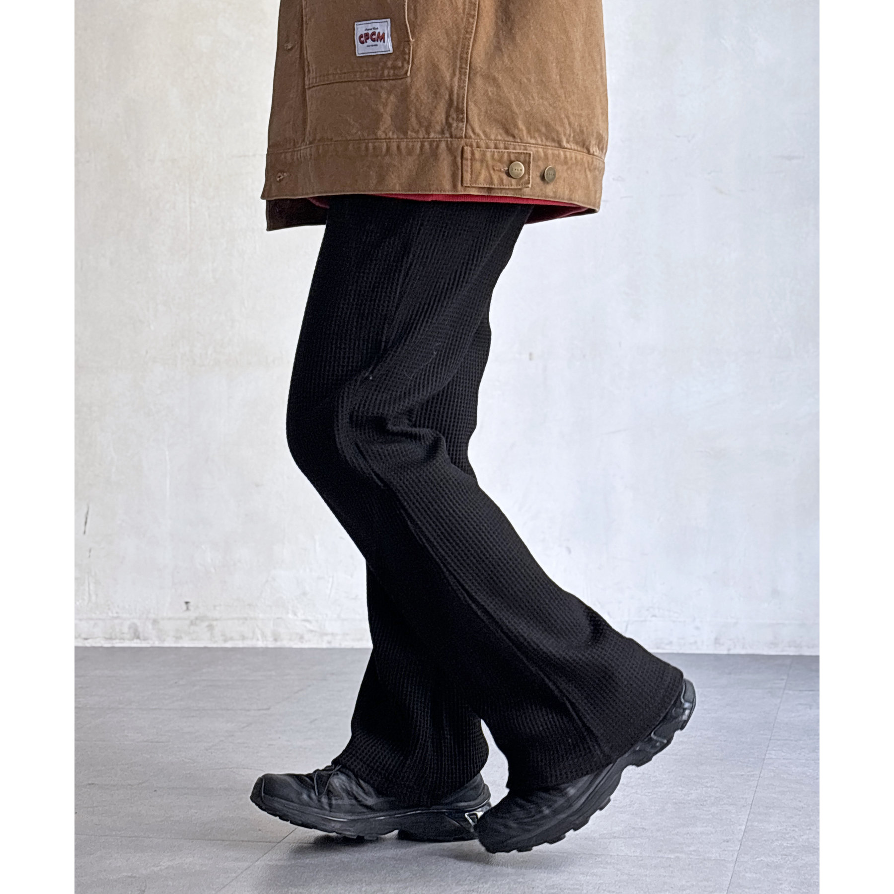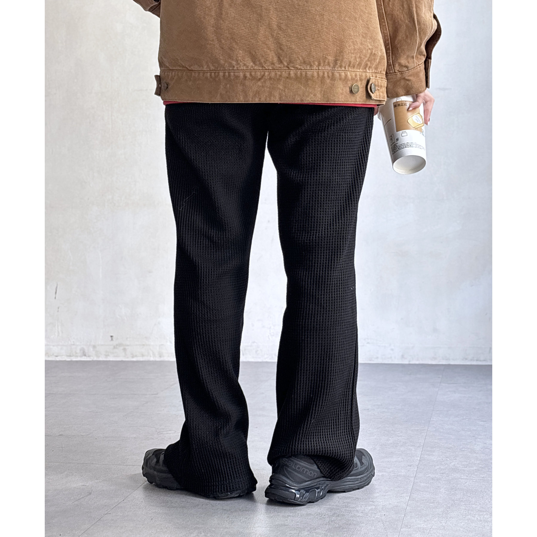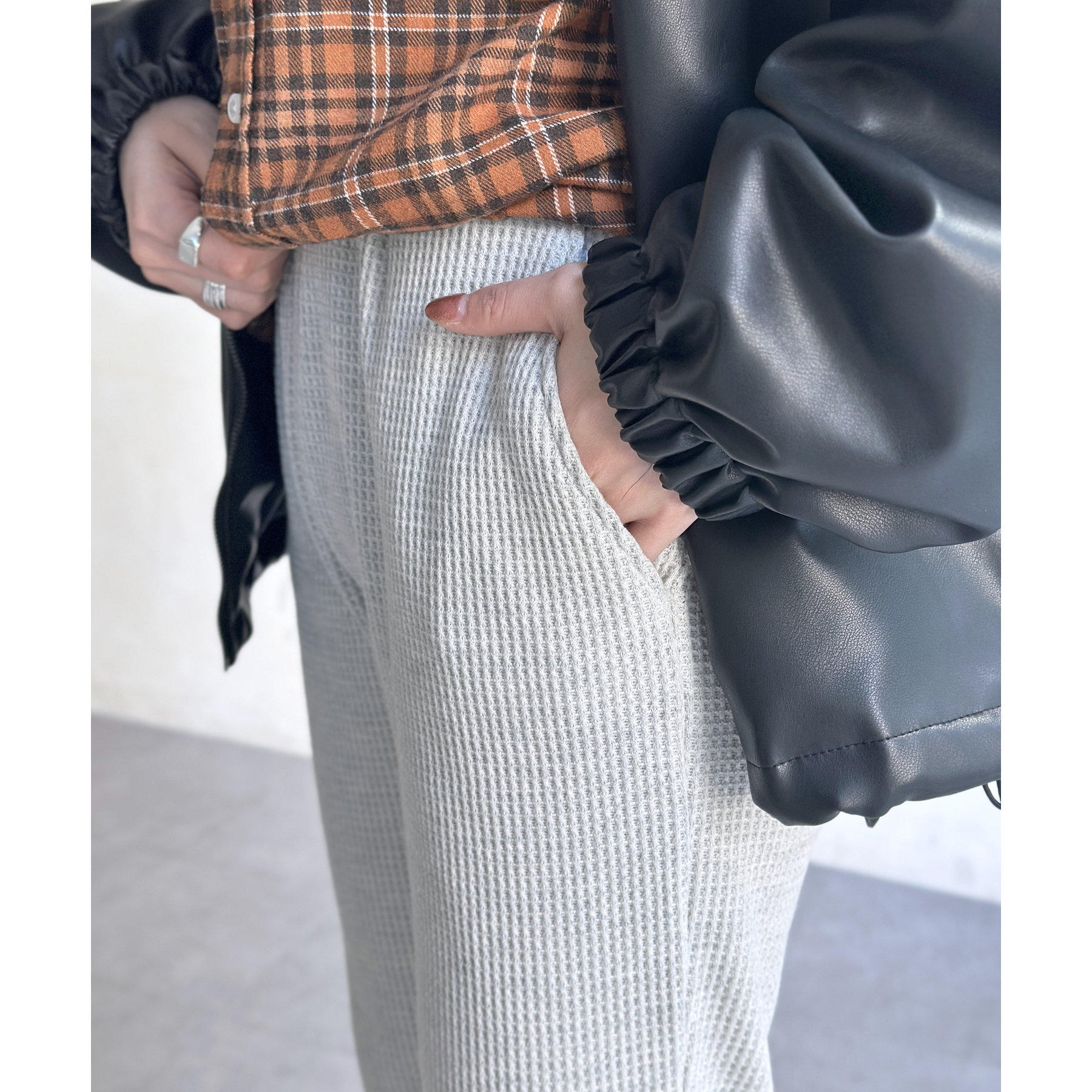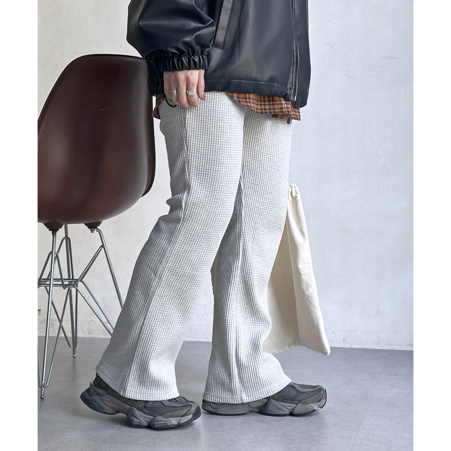 ワッフル素材でリラックスした着心地のイージーパンツ