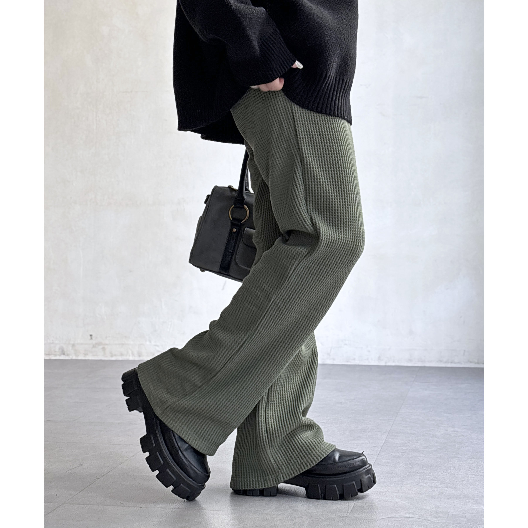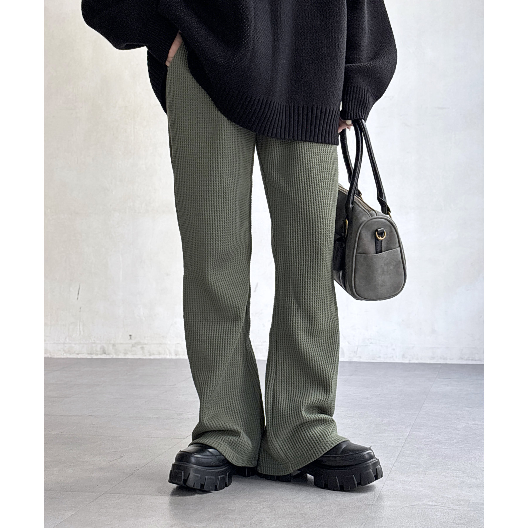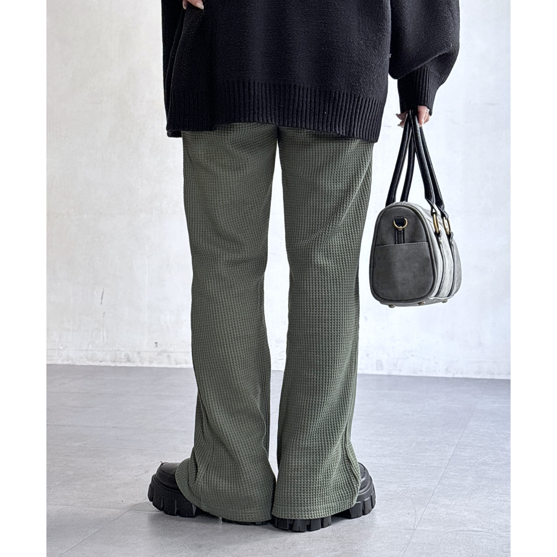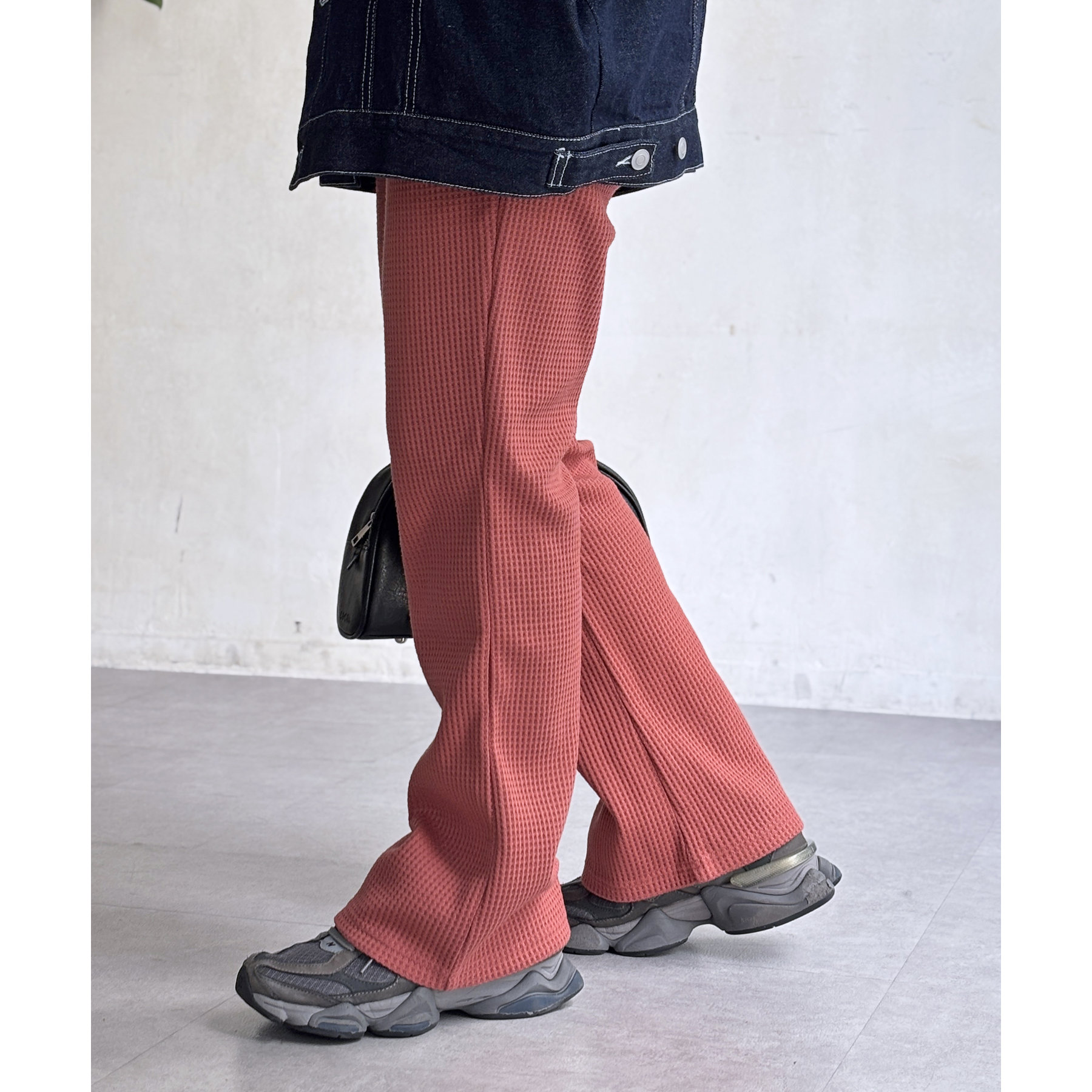 【マイナス3キロ見え!】ワッフルフレアパンツ