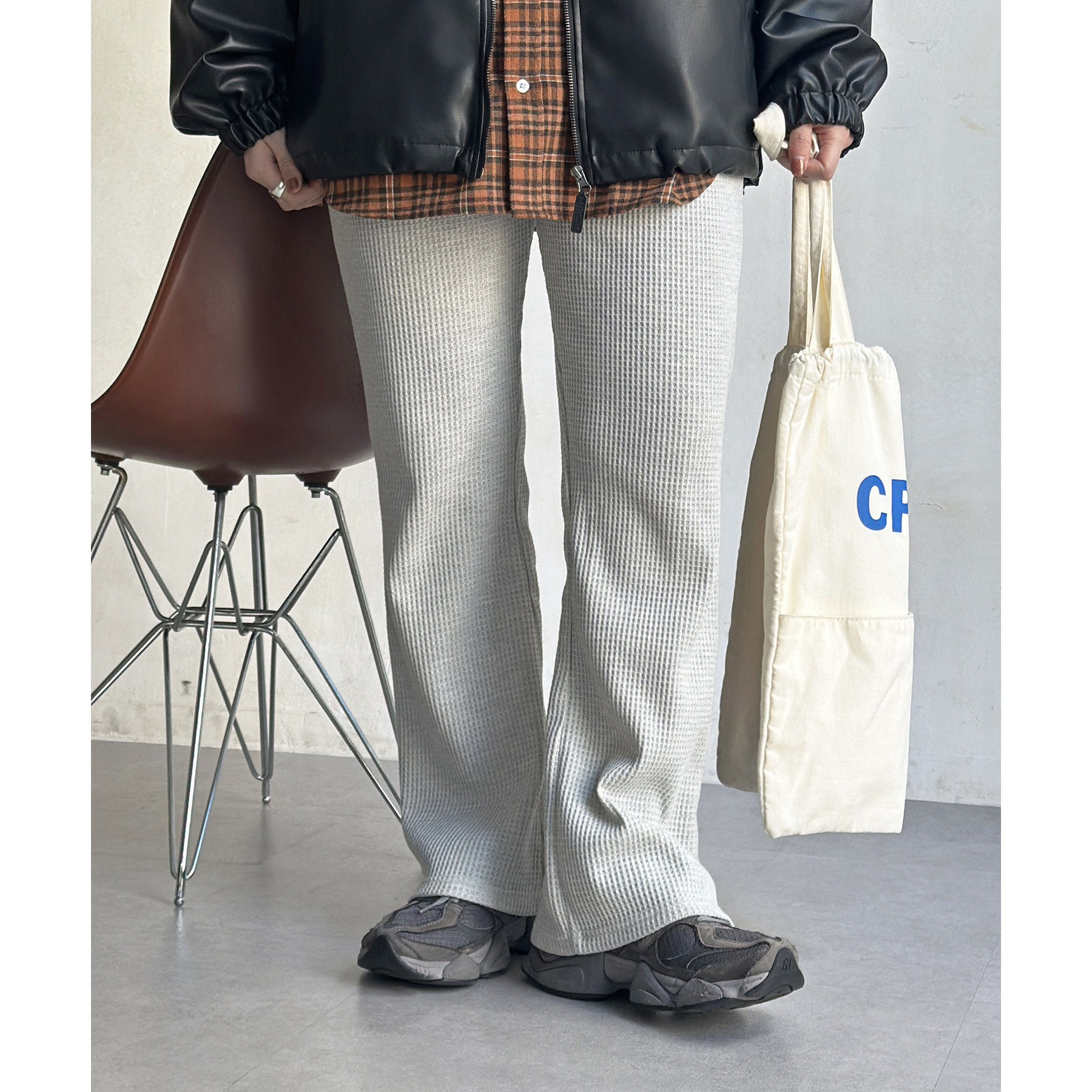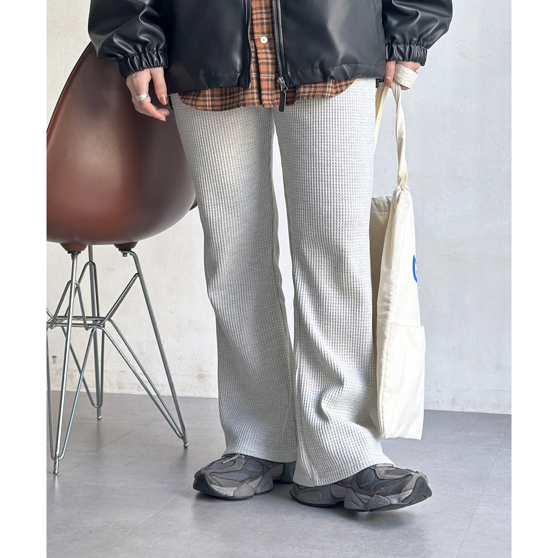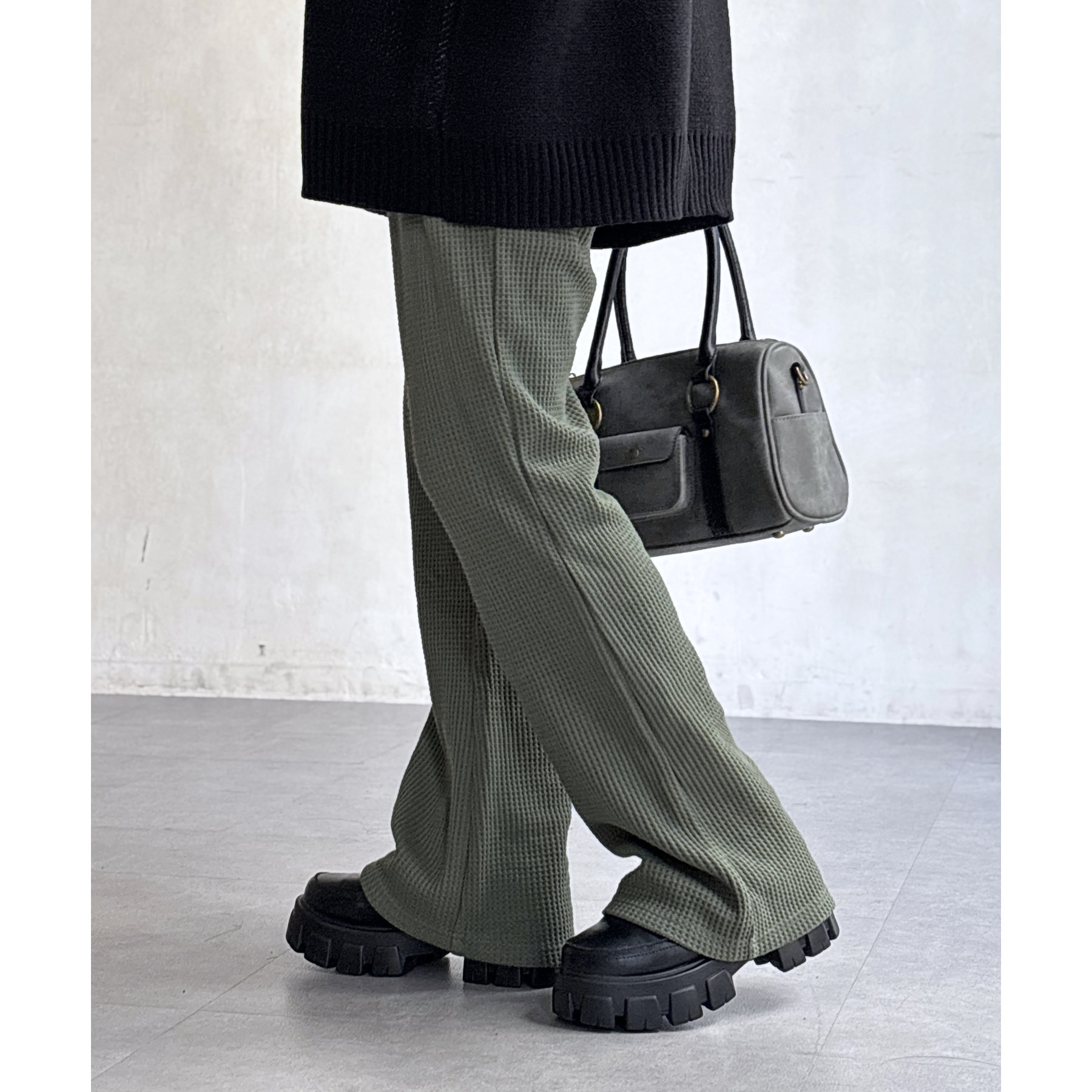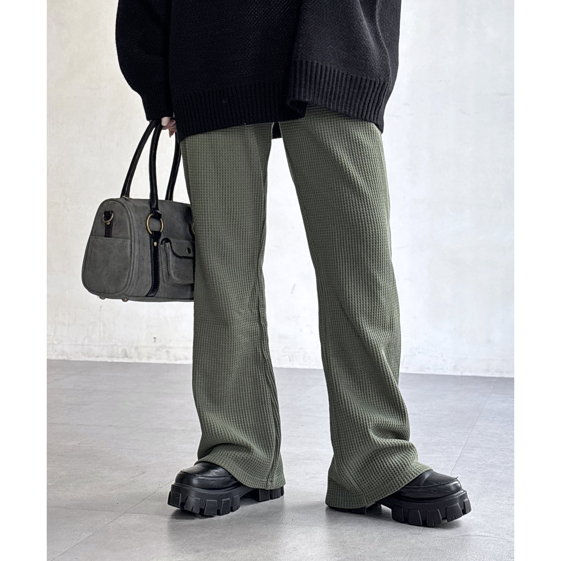 【マイナス3キロ見え!】ワッフルフレアパンツ