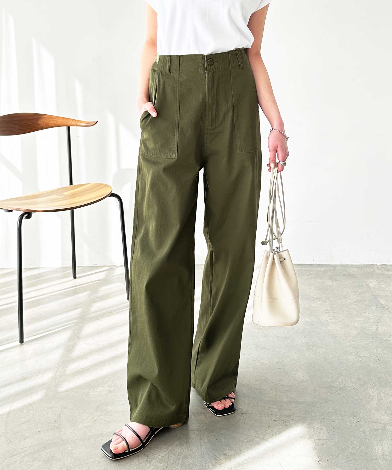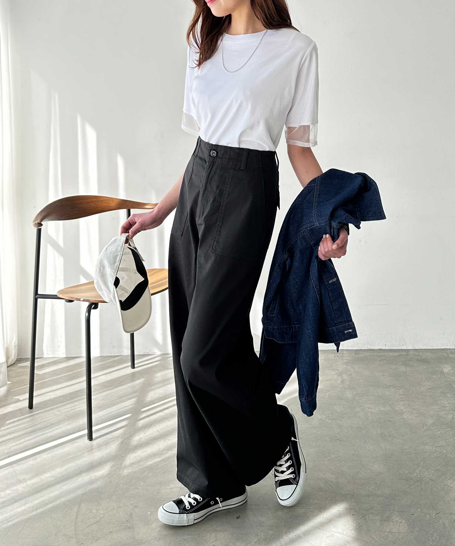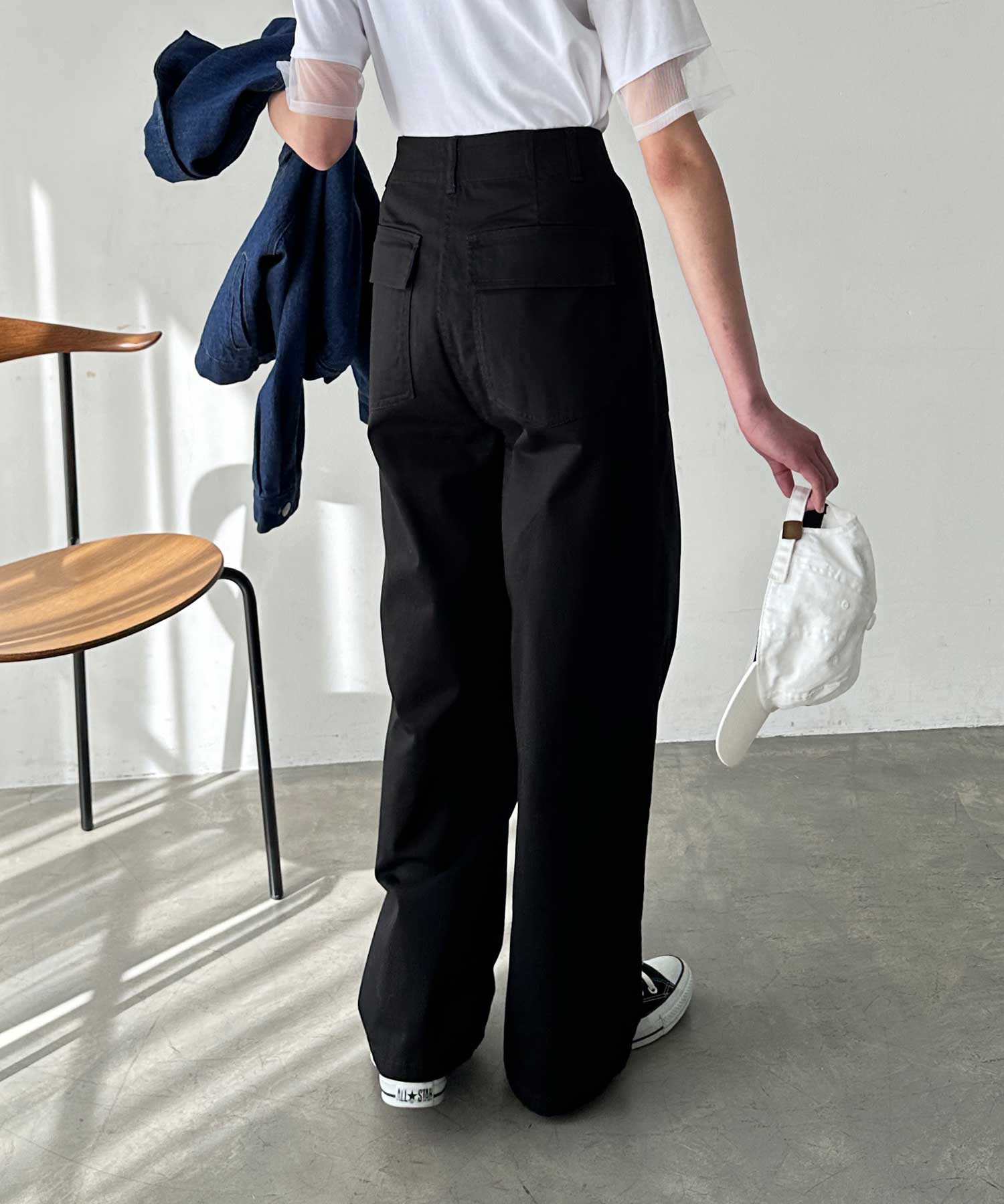 コットンワイドベイカーパンツ