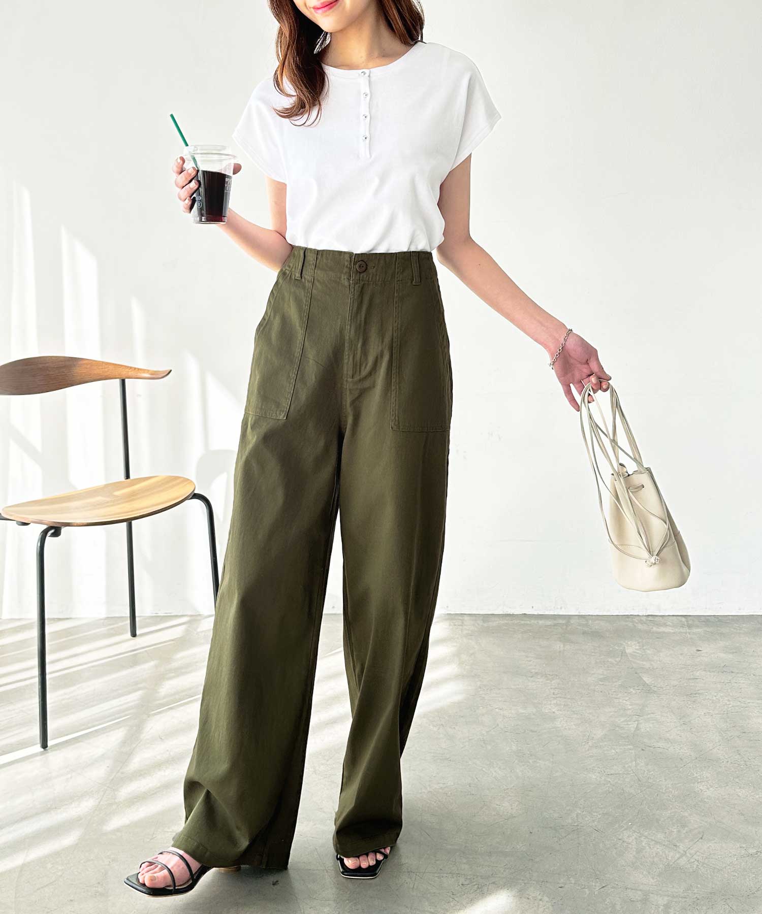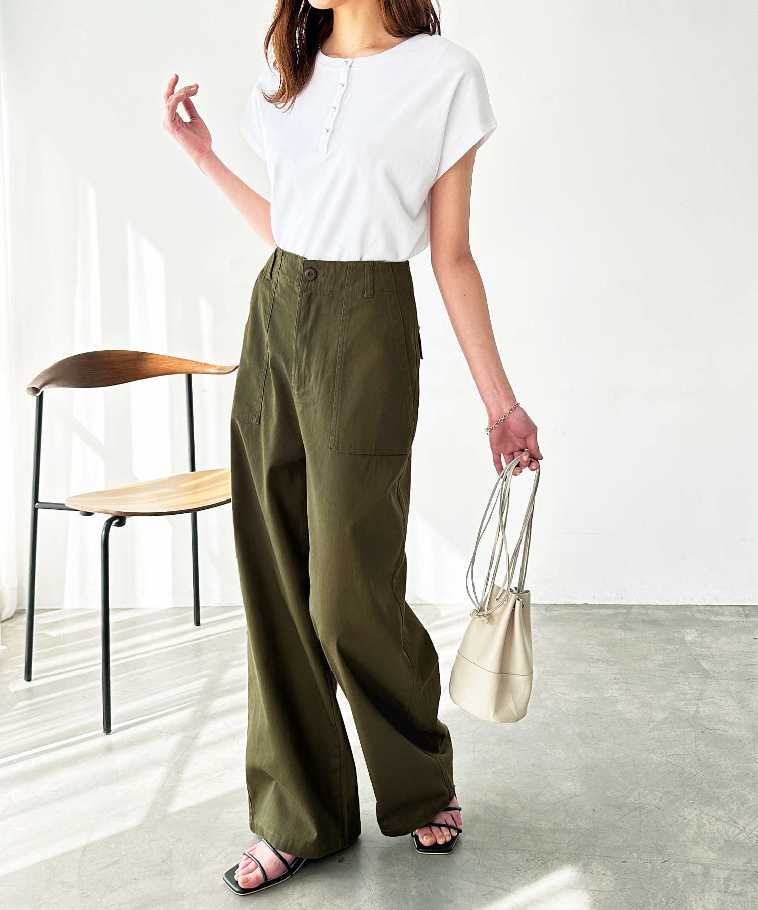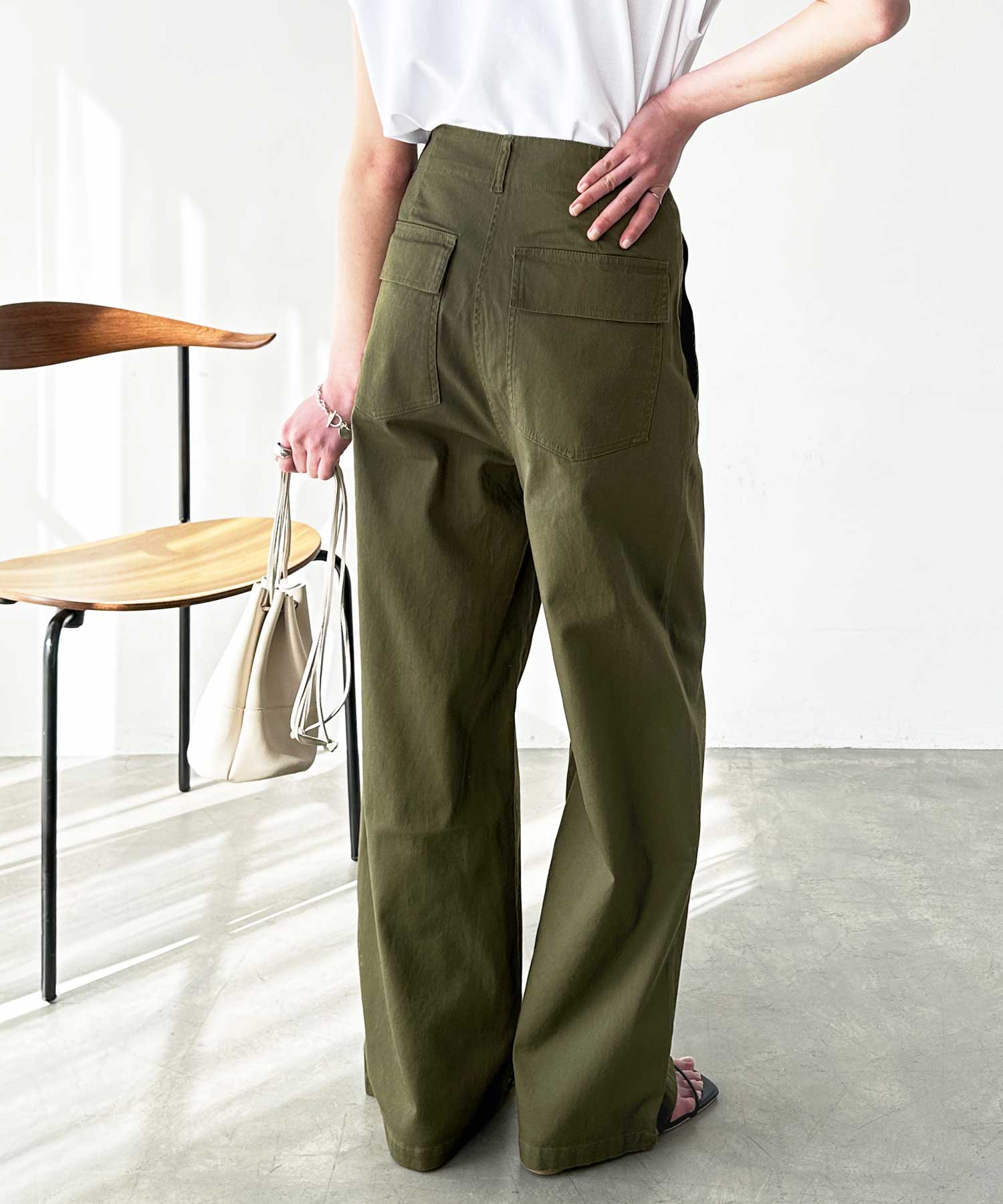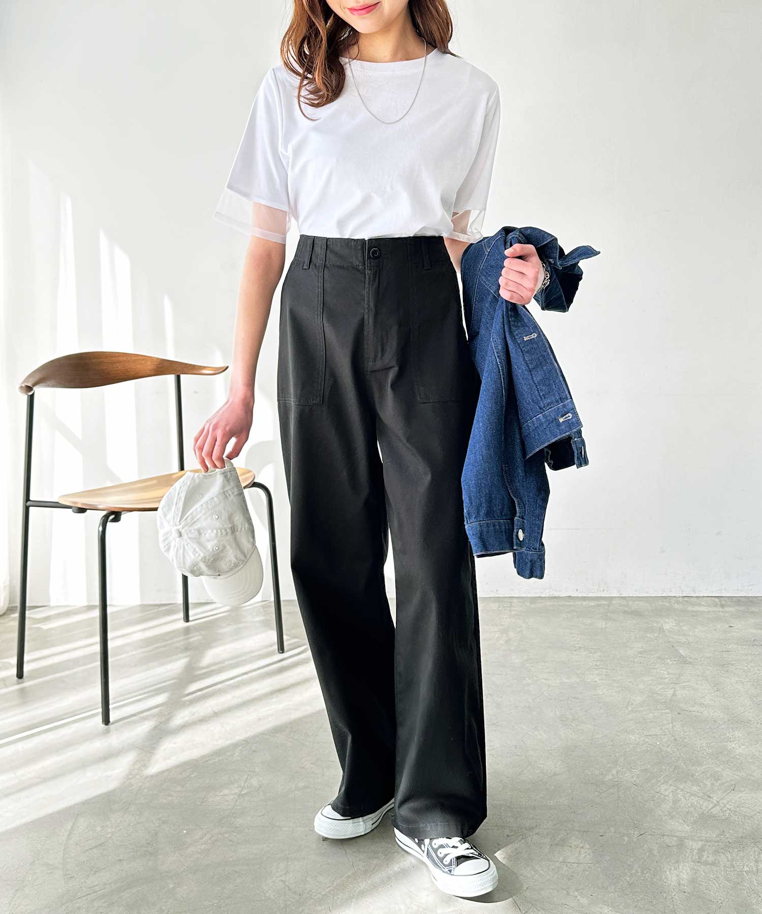 コットンワイドベイカーパンツ