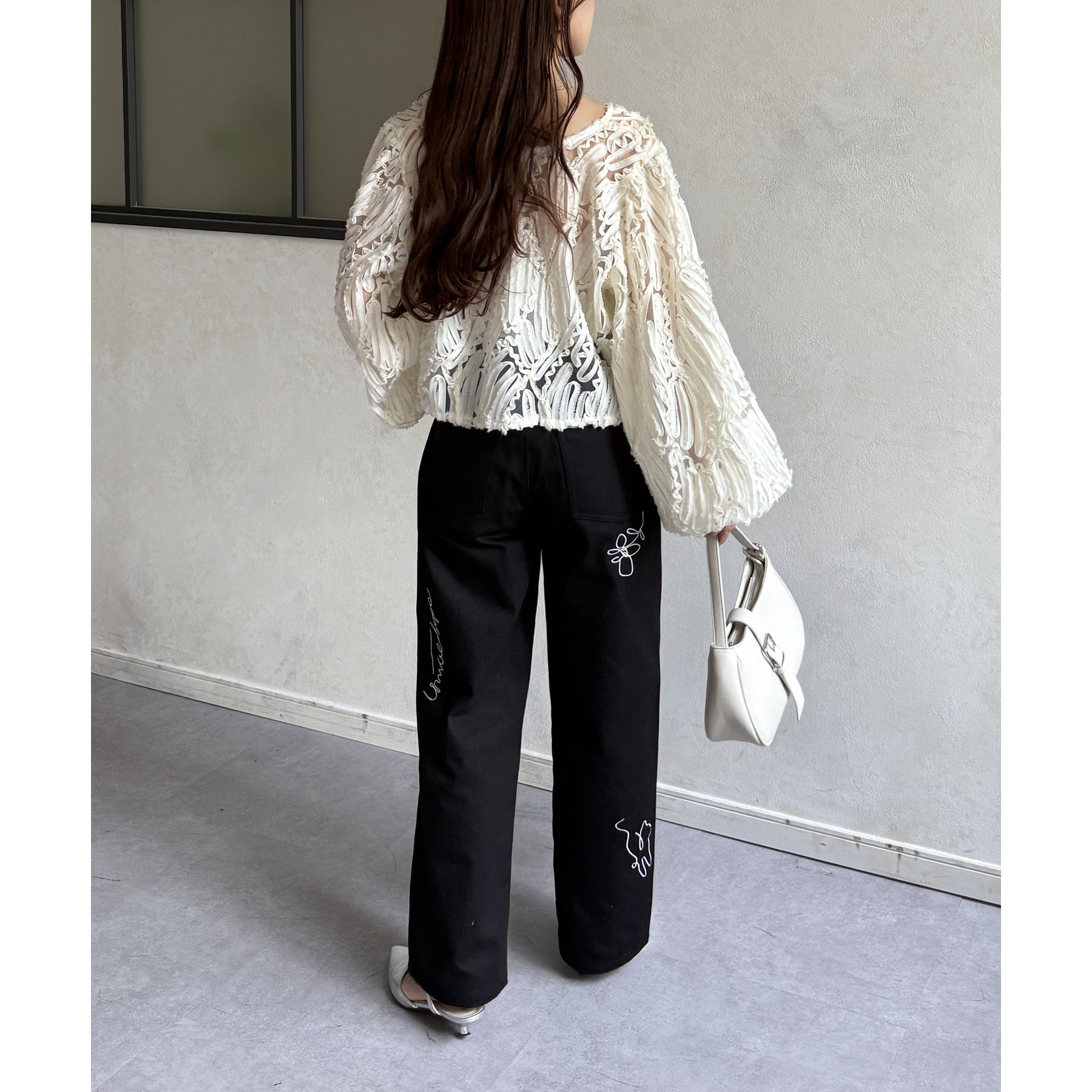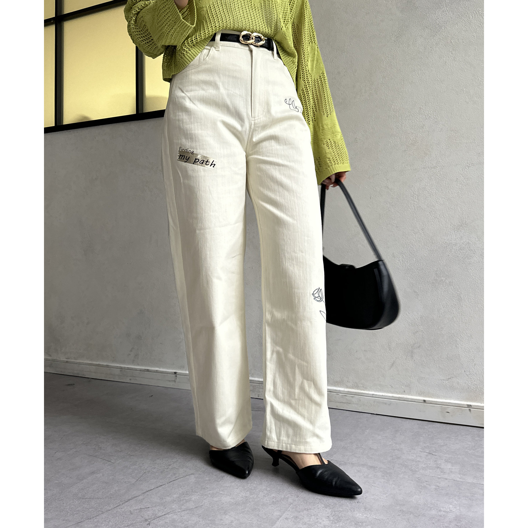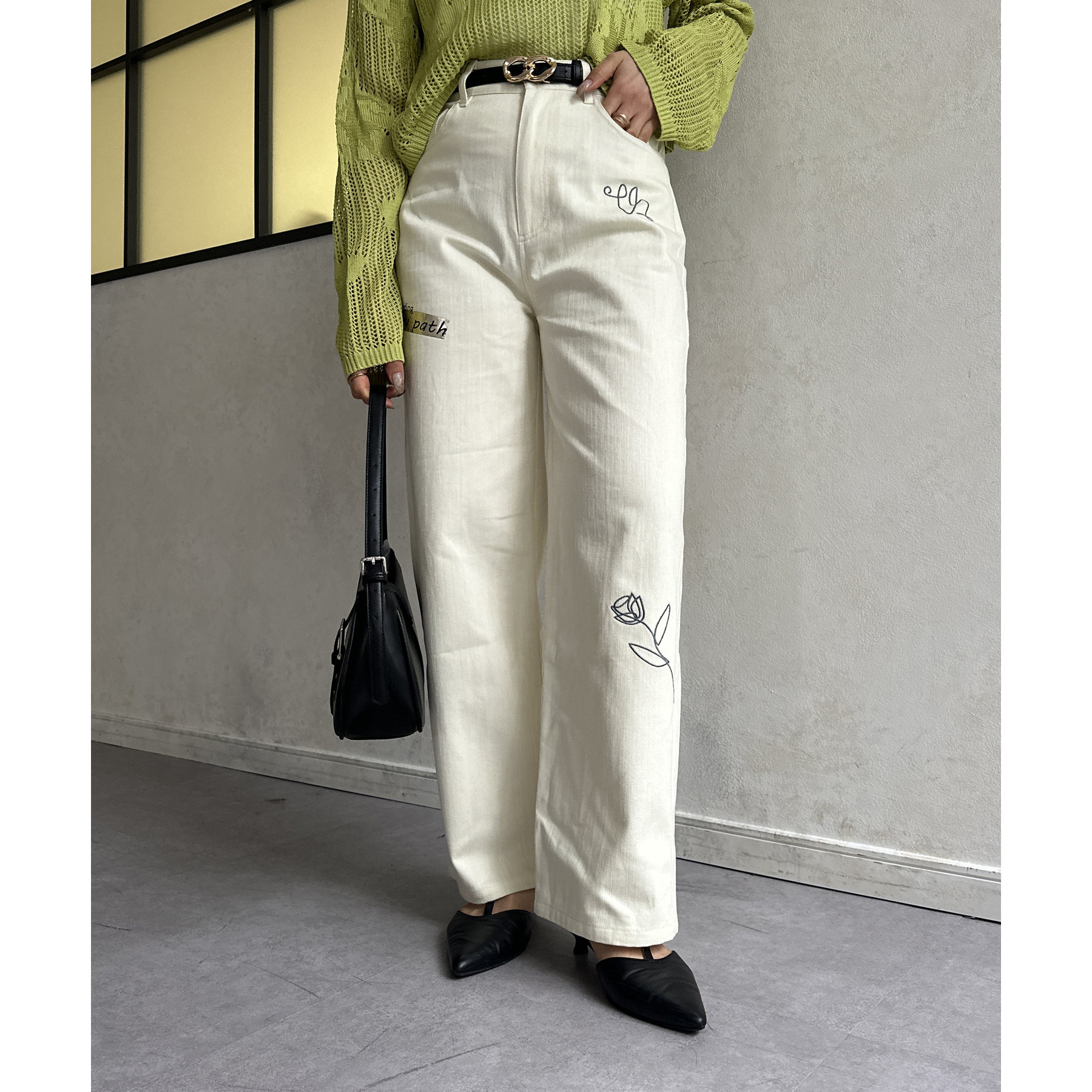 #ワイドパンツ #デザインパンツ #刺繍 #春夏パンツ #カジュアル #きれいめ #おでかけ