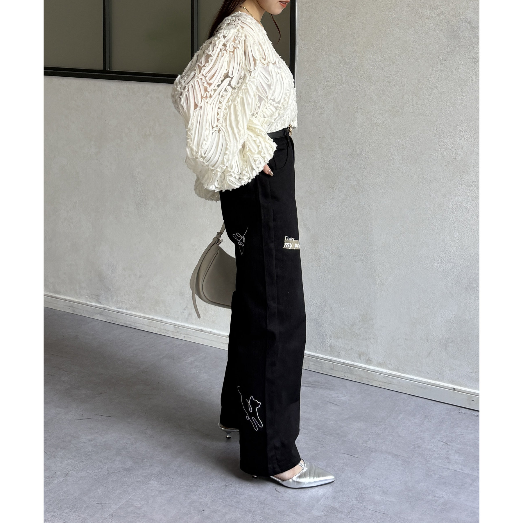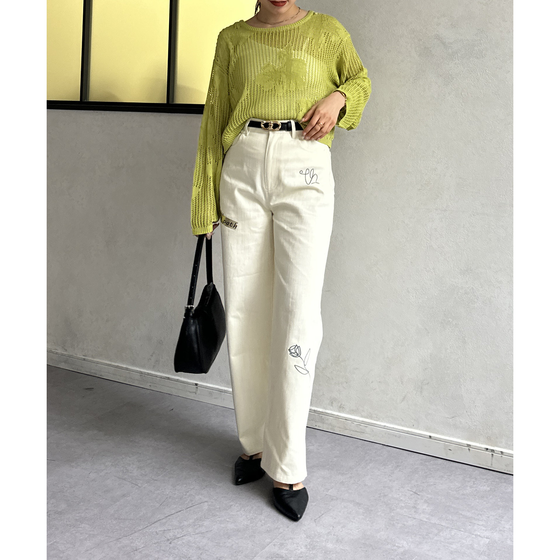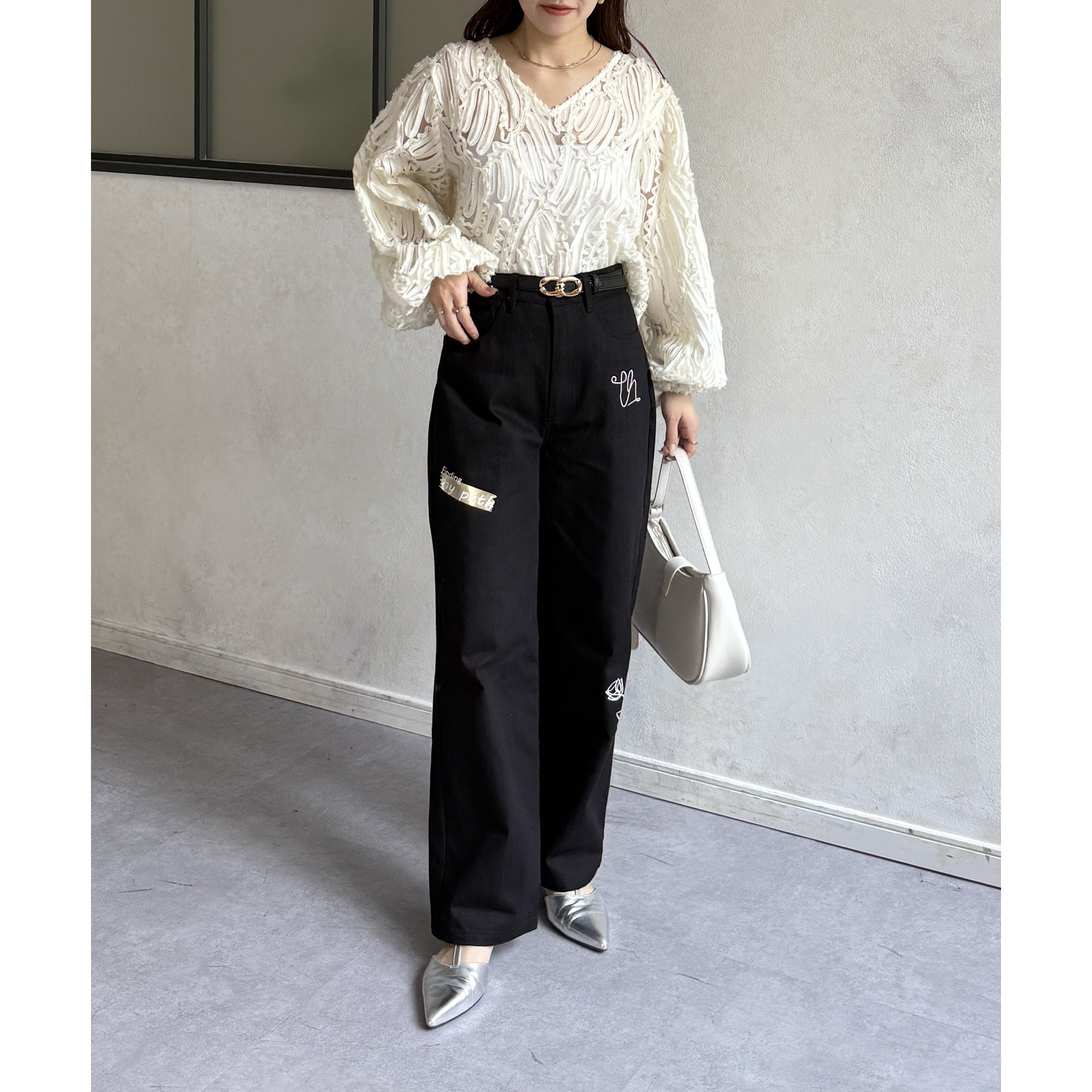 #ワイドパンツ #デザインパンツ #刺繍 #春夏パンツ #カジュアル #きれいめ #おでかけ