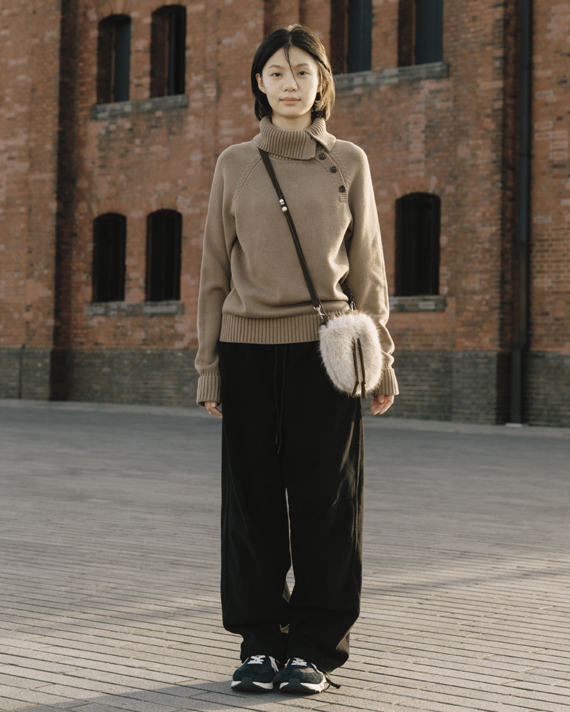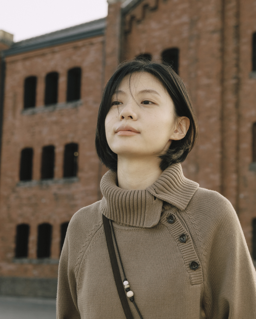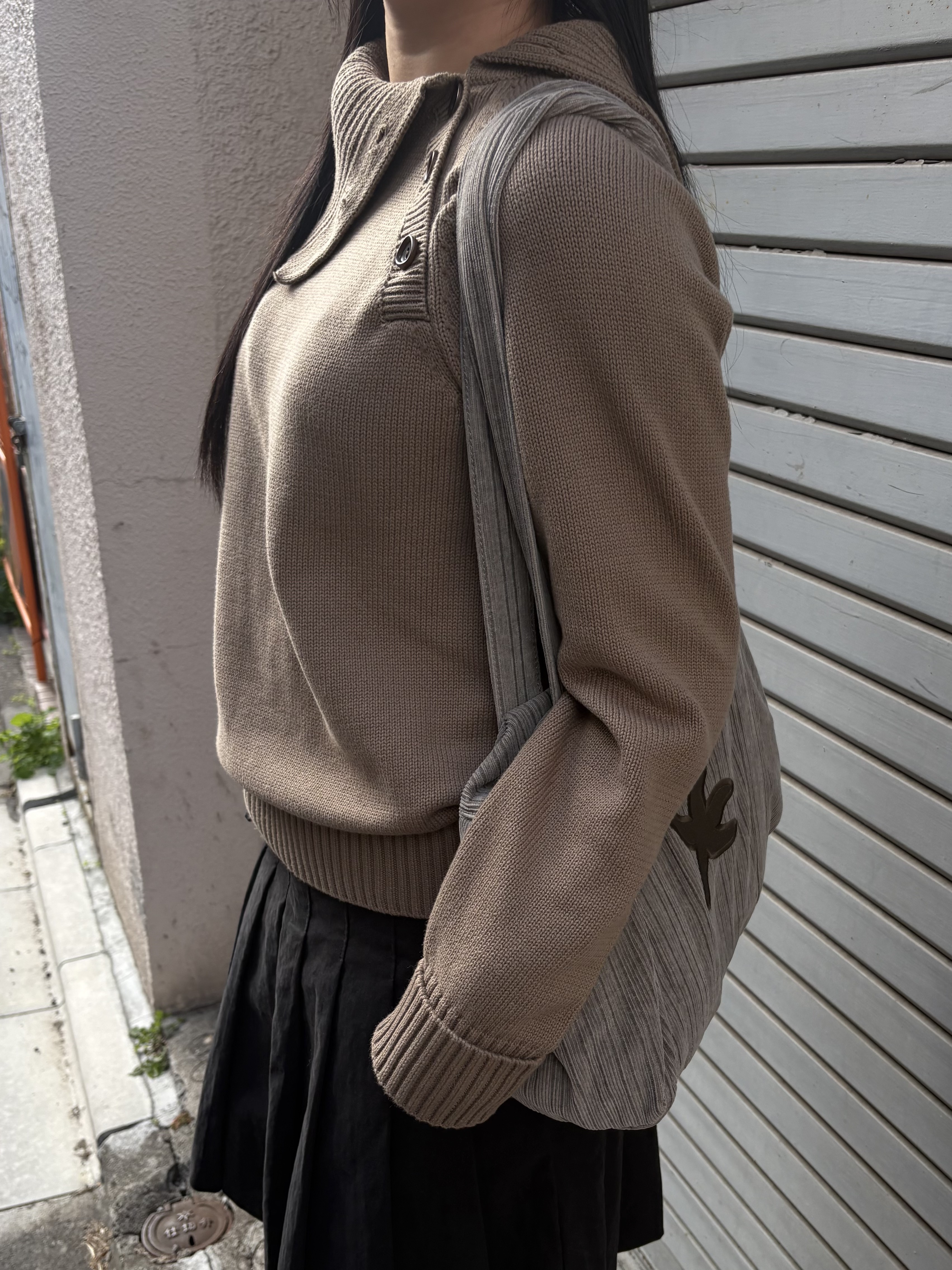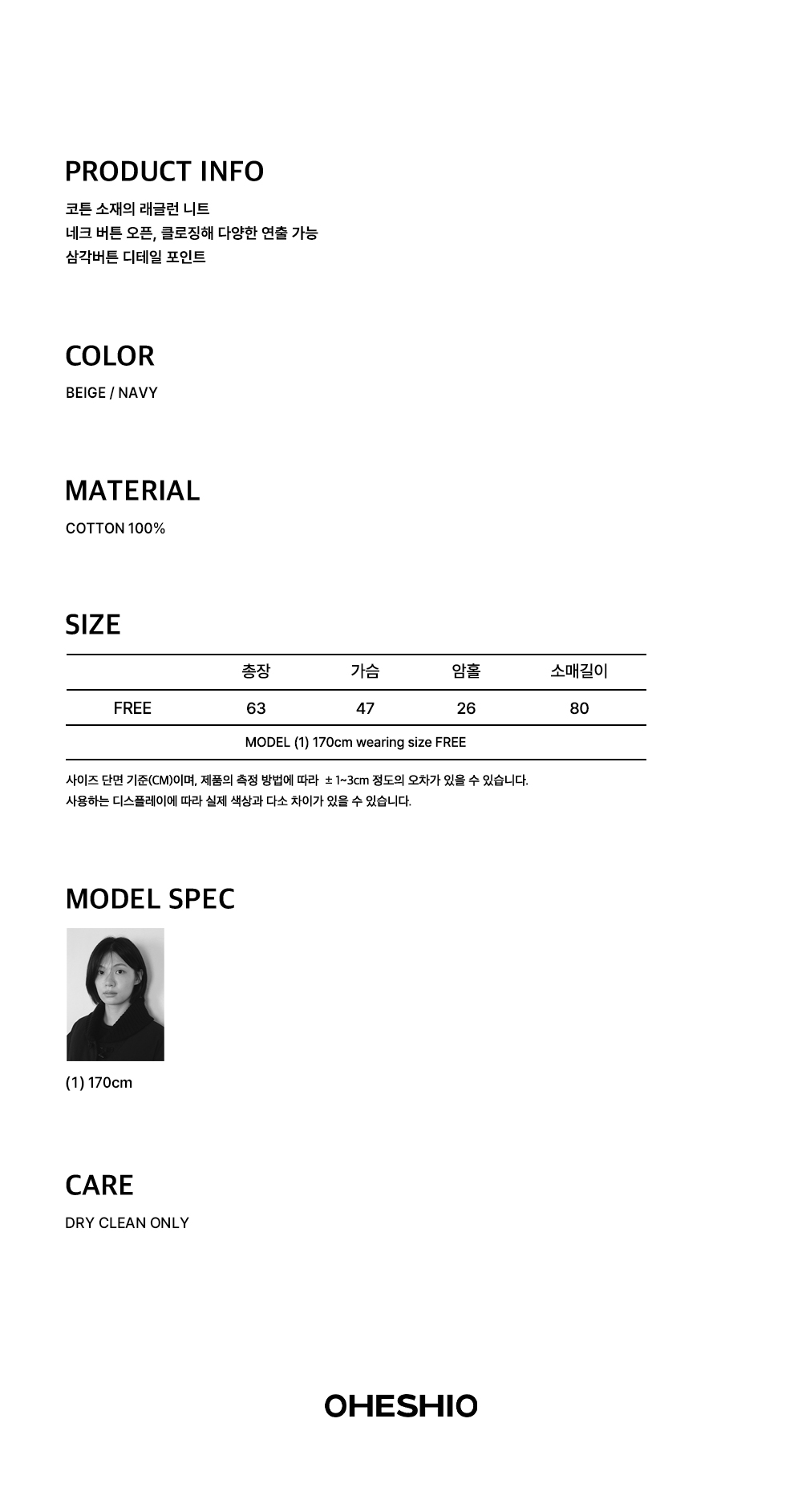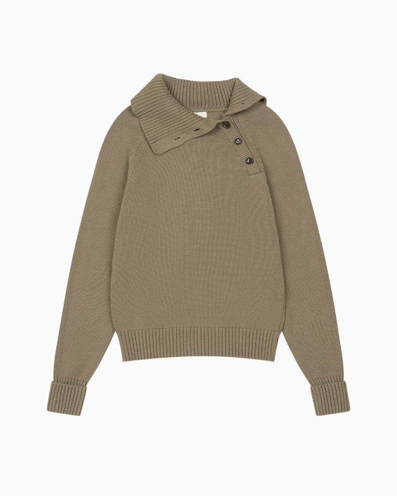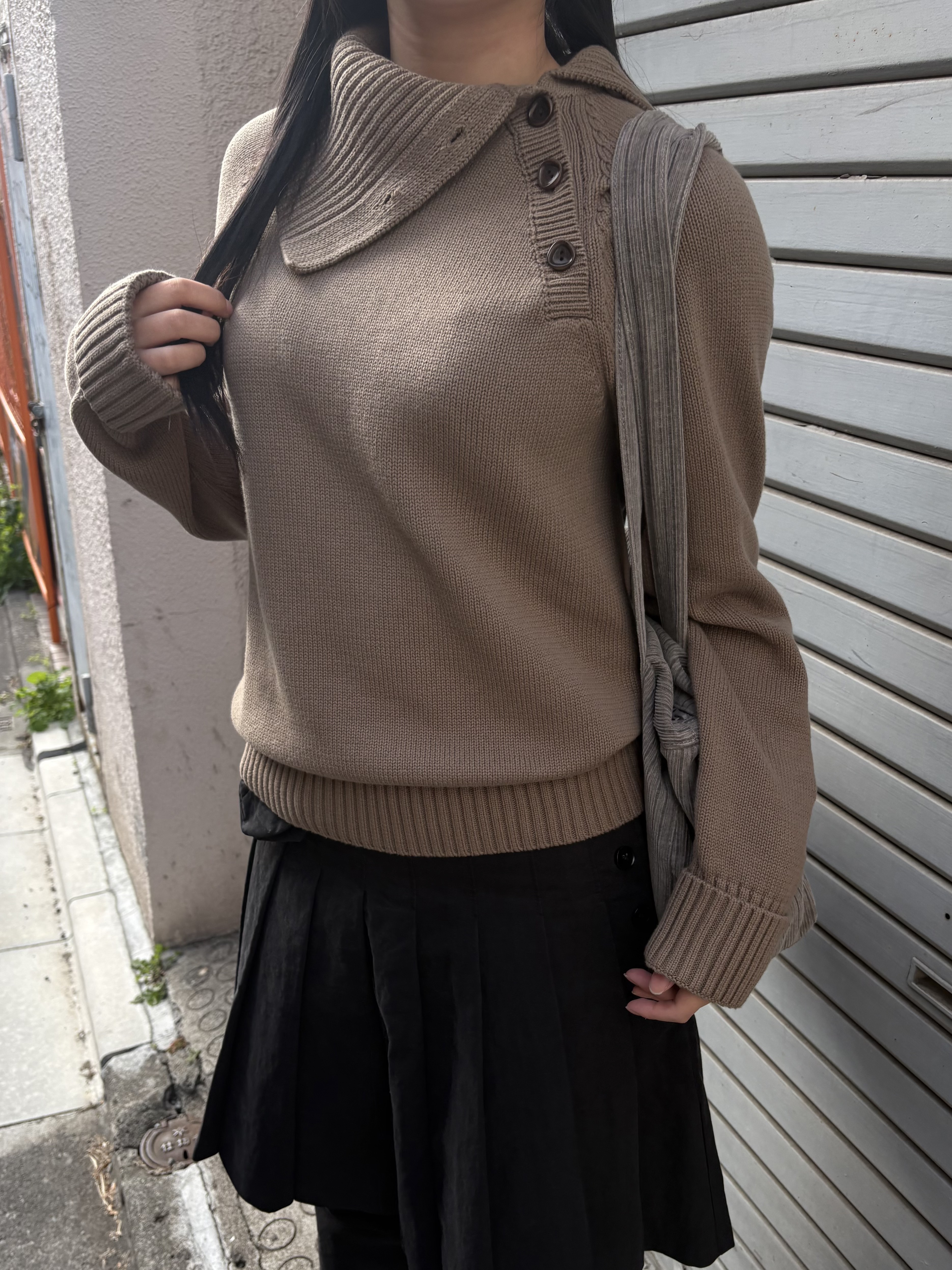 [rino x OHESHIO] BUTTON COLLAR RAGLAN KNIT, BEIGE