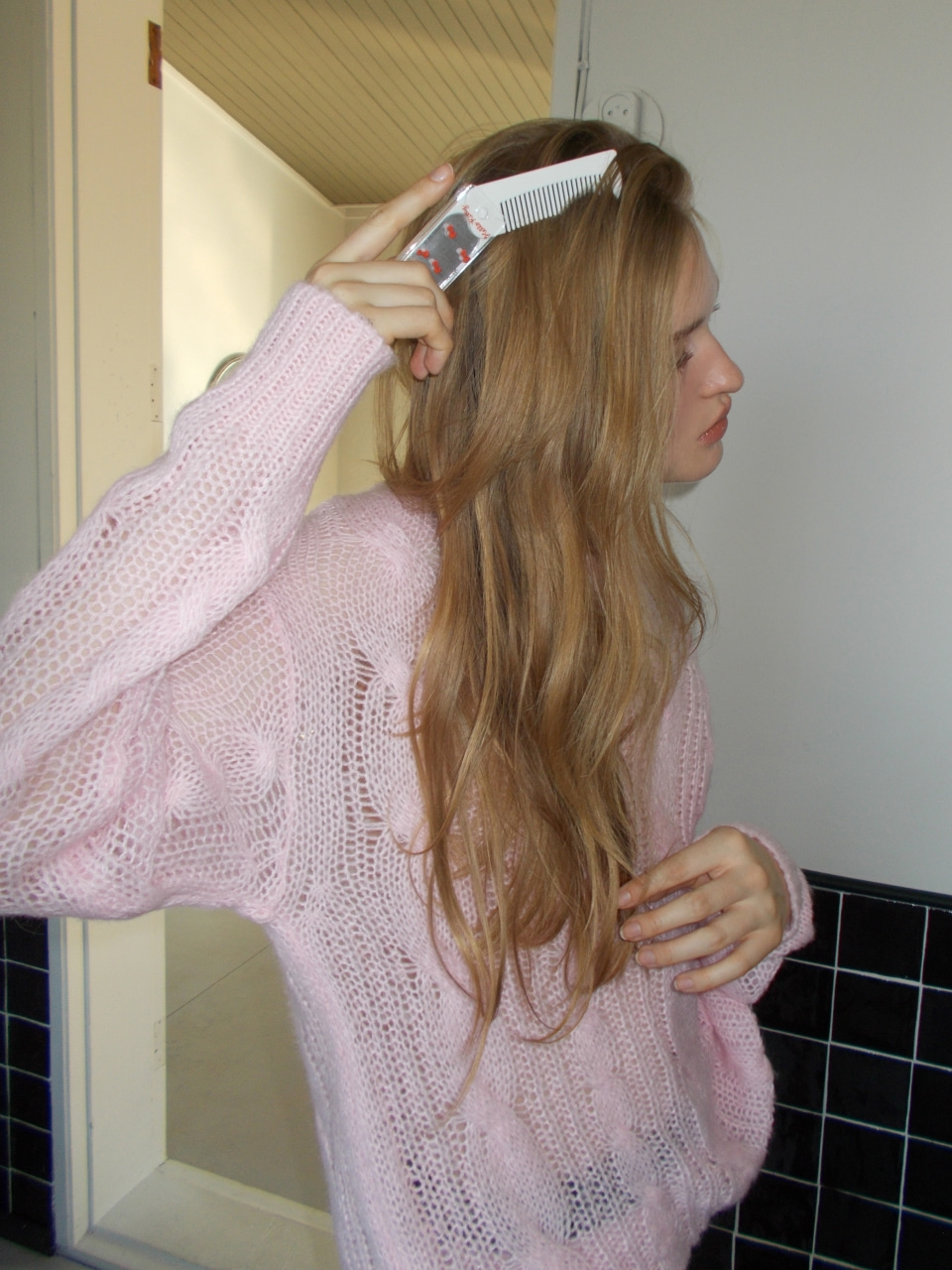 Hairy Cable Pullover Knit, Light Pink