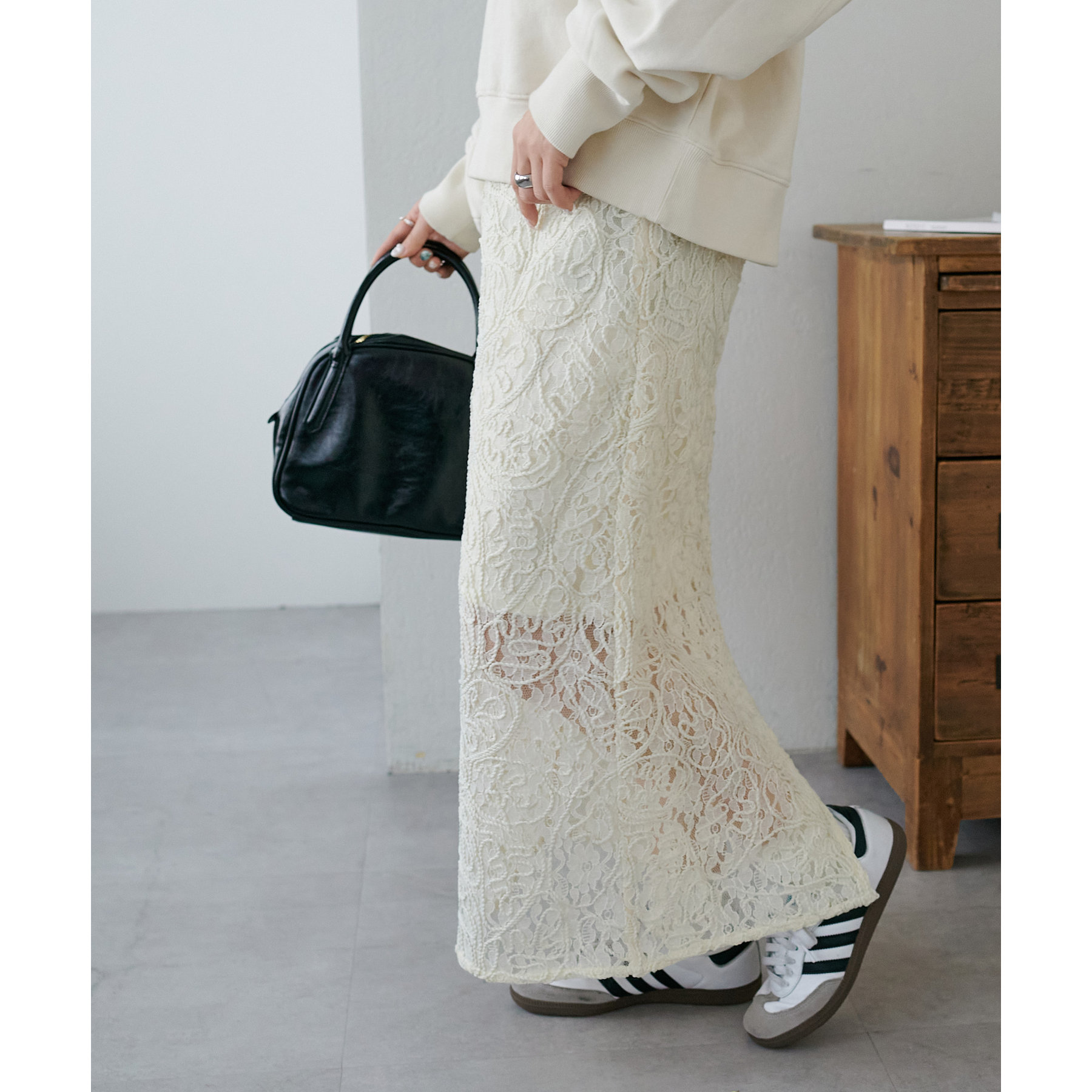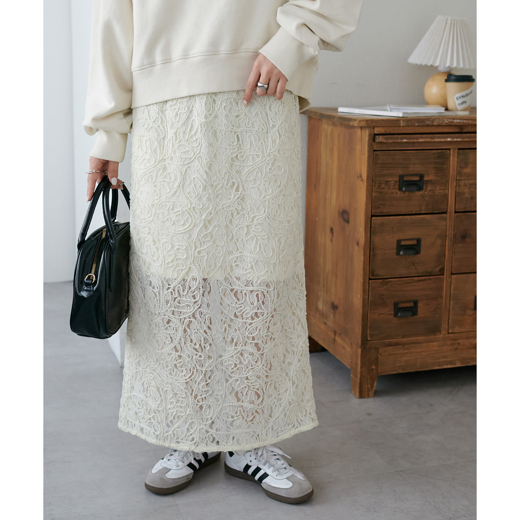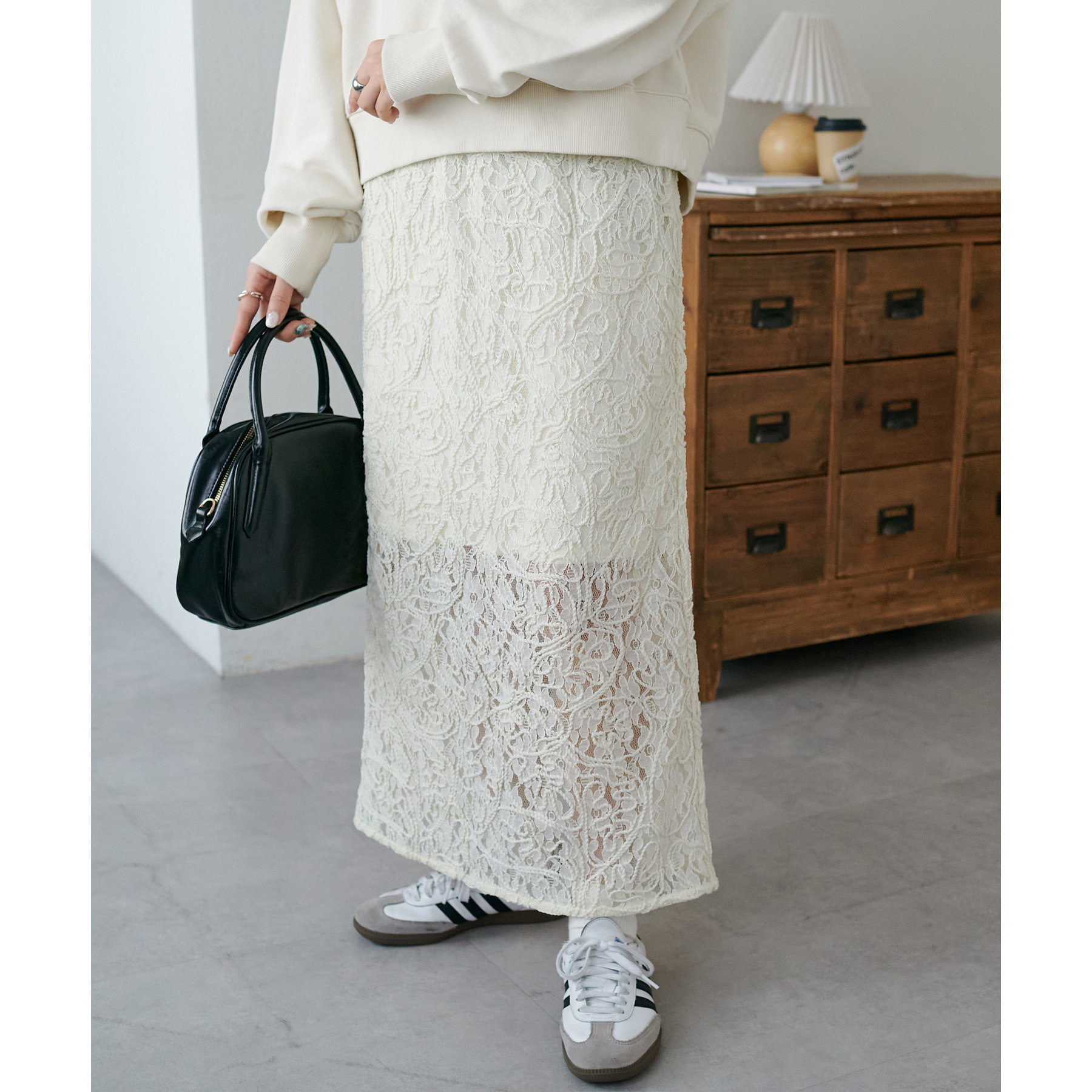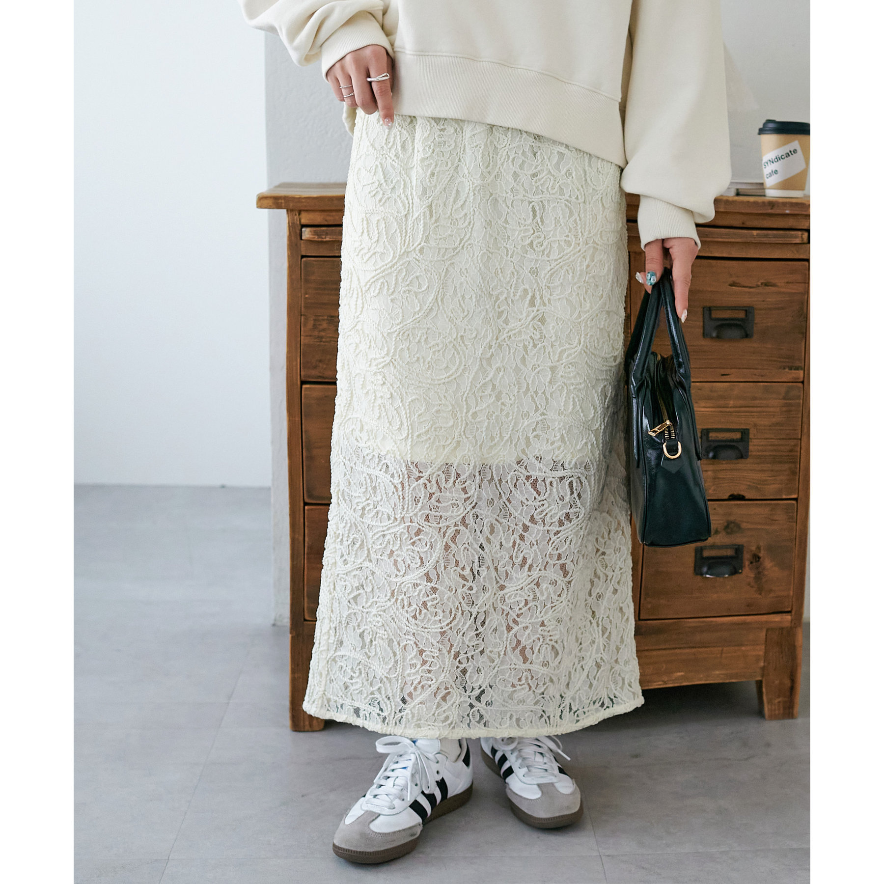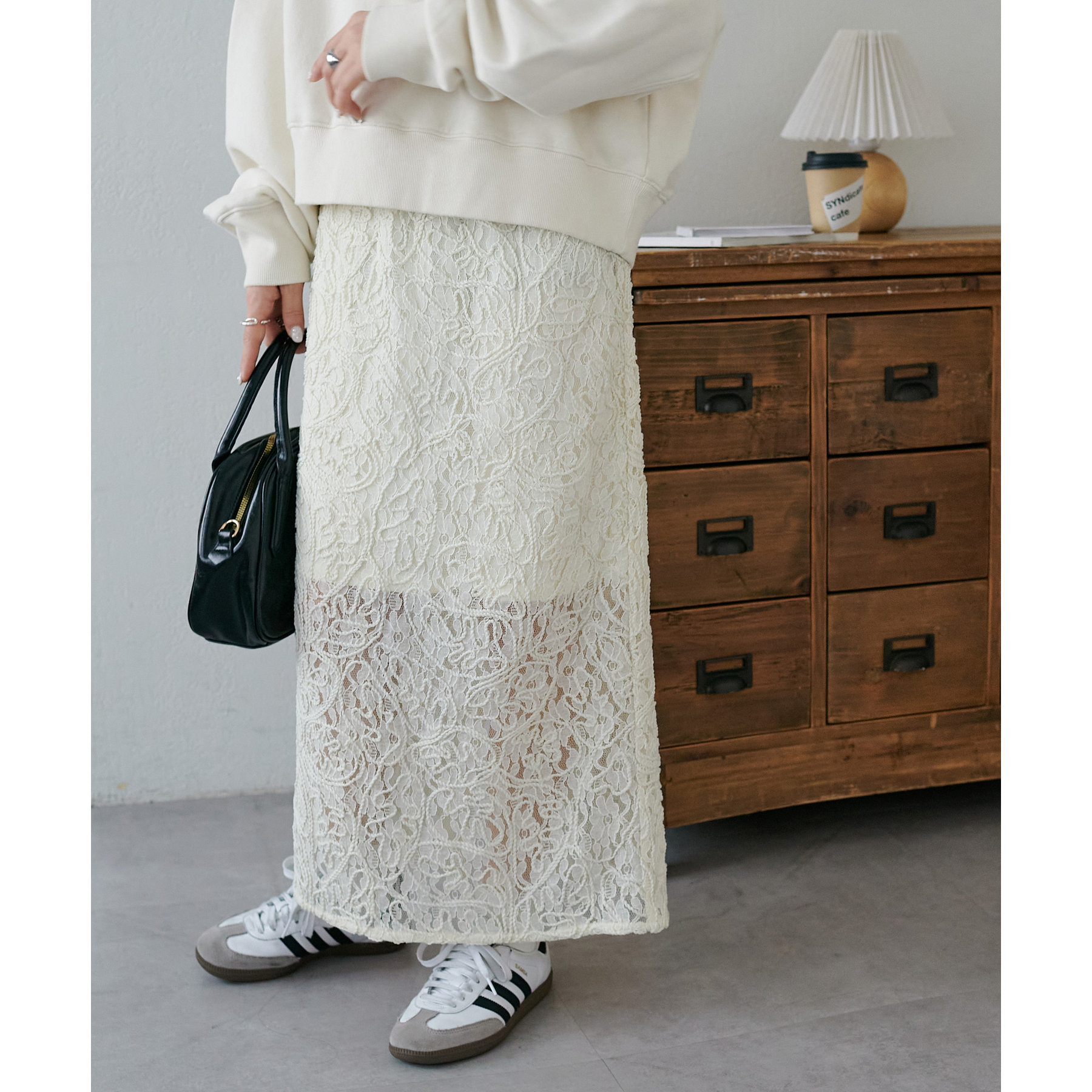 目を惹くレーススカートはシンプルなトップスと合わせてもコーデが決まります〇