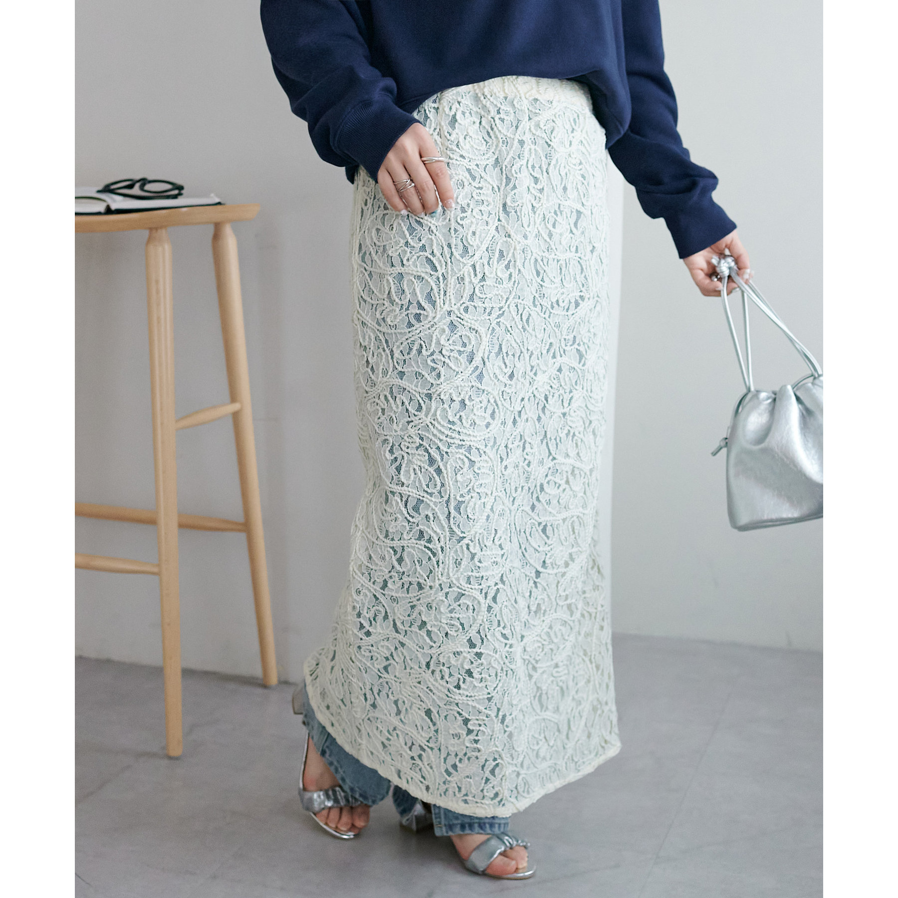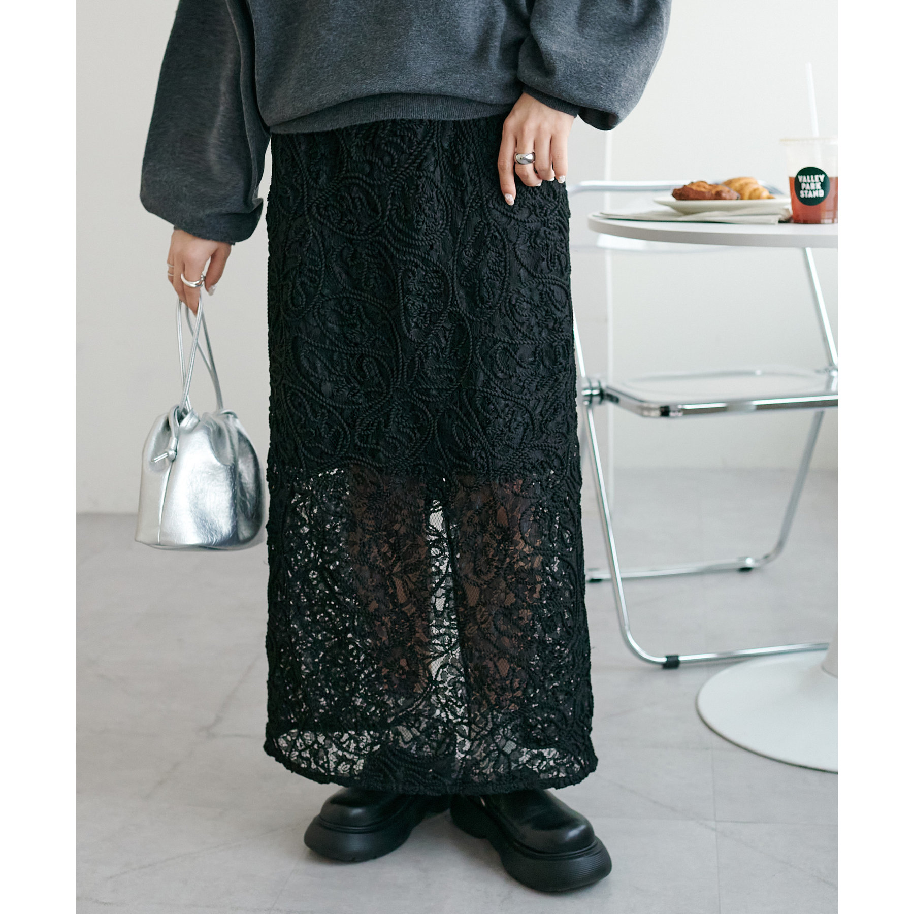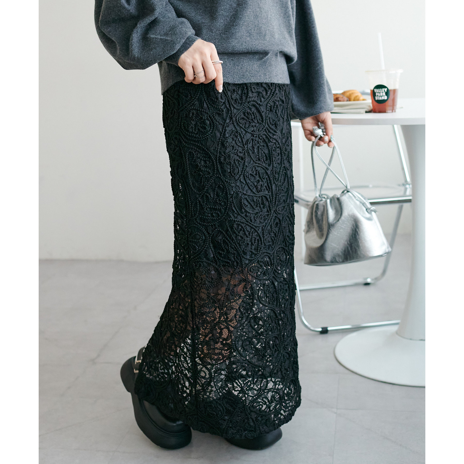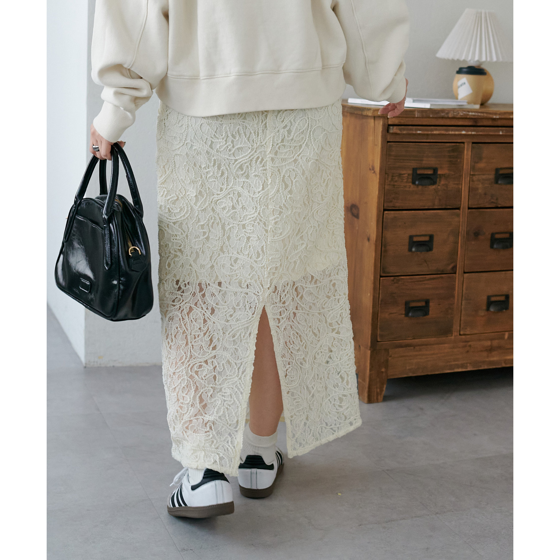 目を惹くレーススカートはシンプルなトップスと合わせてもコーデが決まります〇