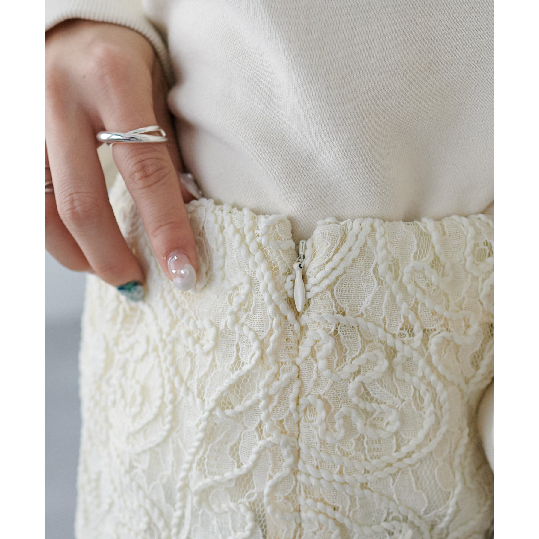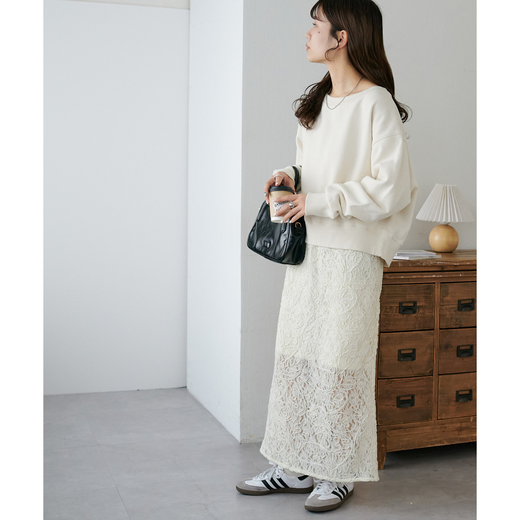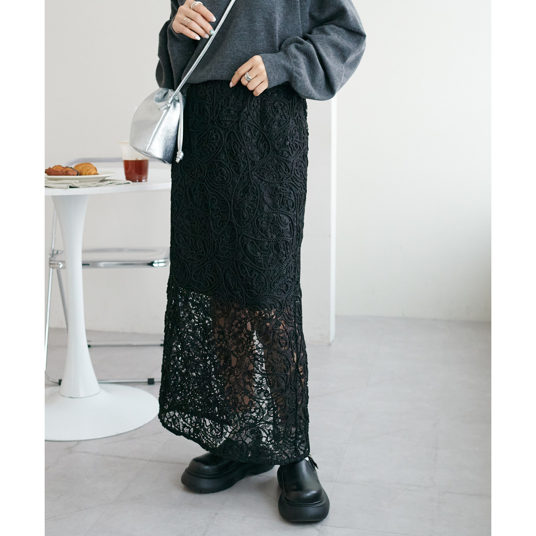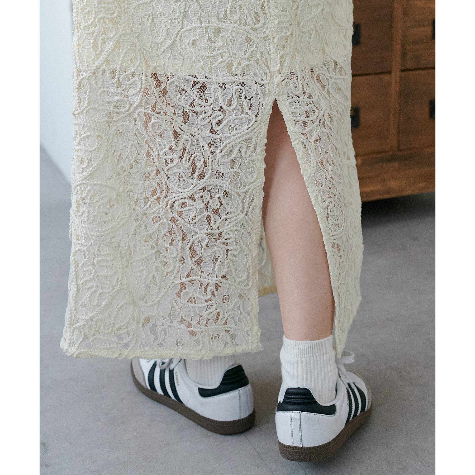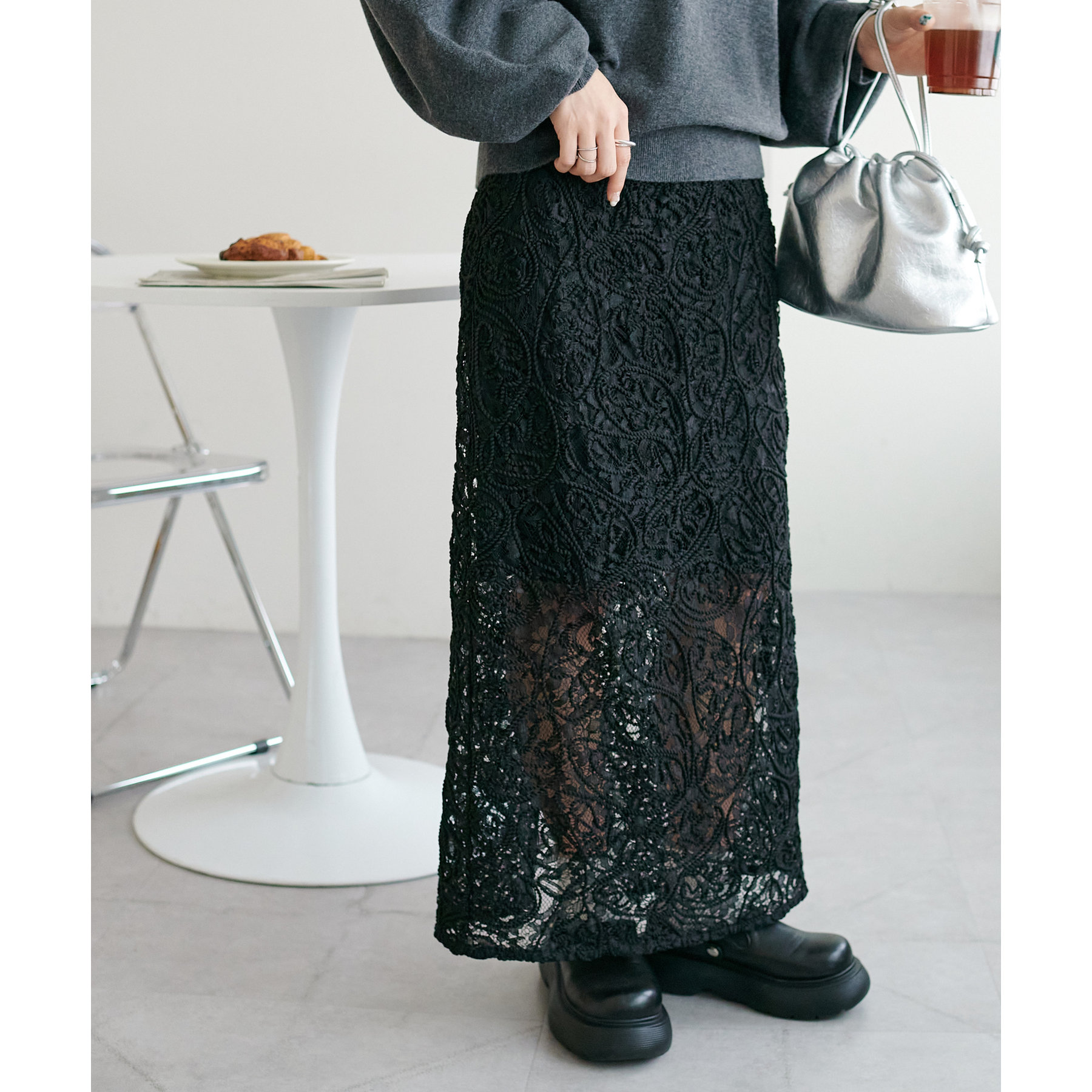 目を惹くレーススカートはシンプルなトップスと合わせてもコーデが決まります〇