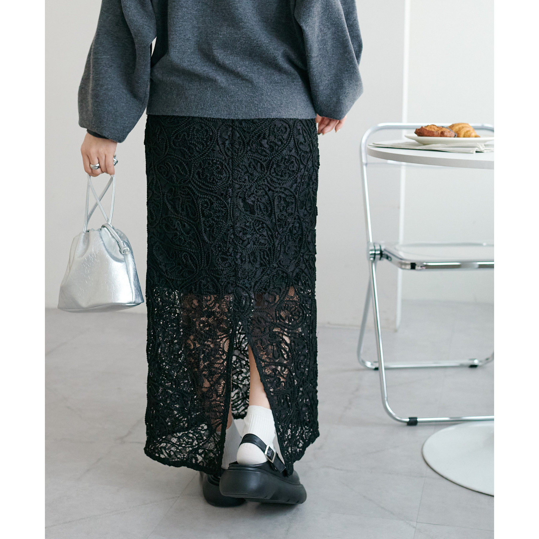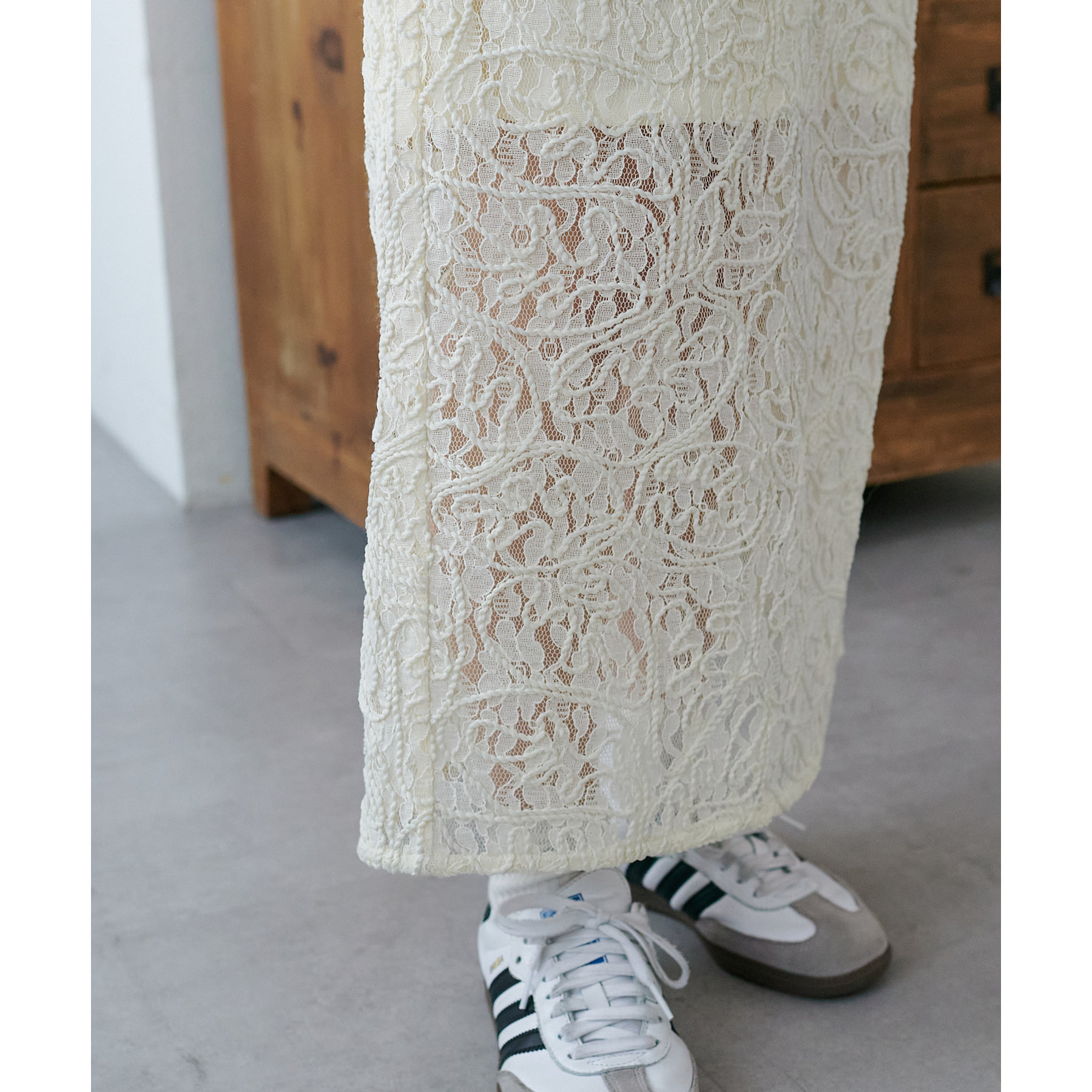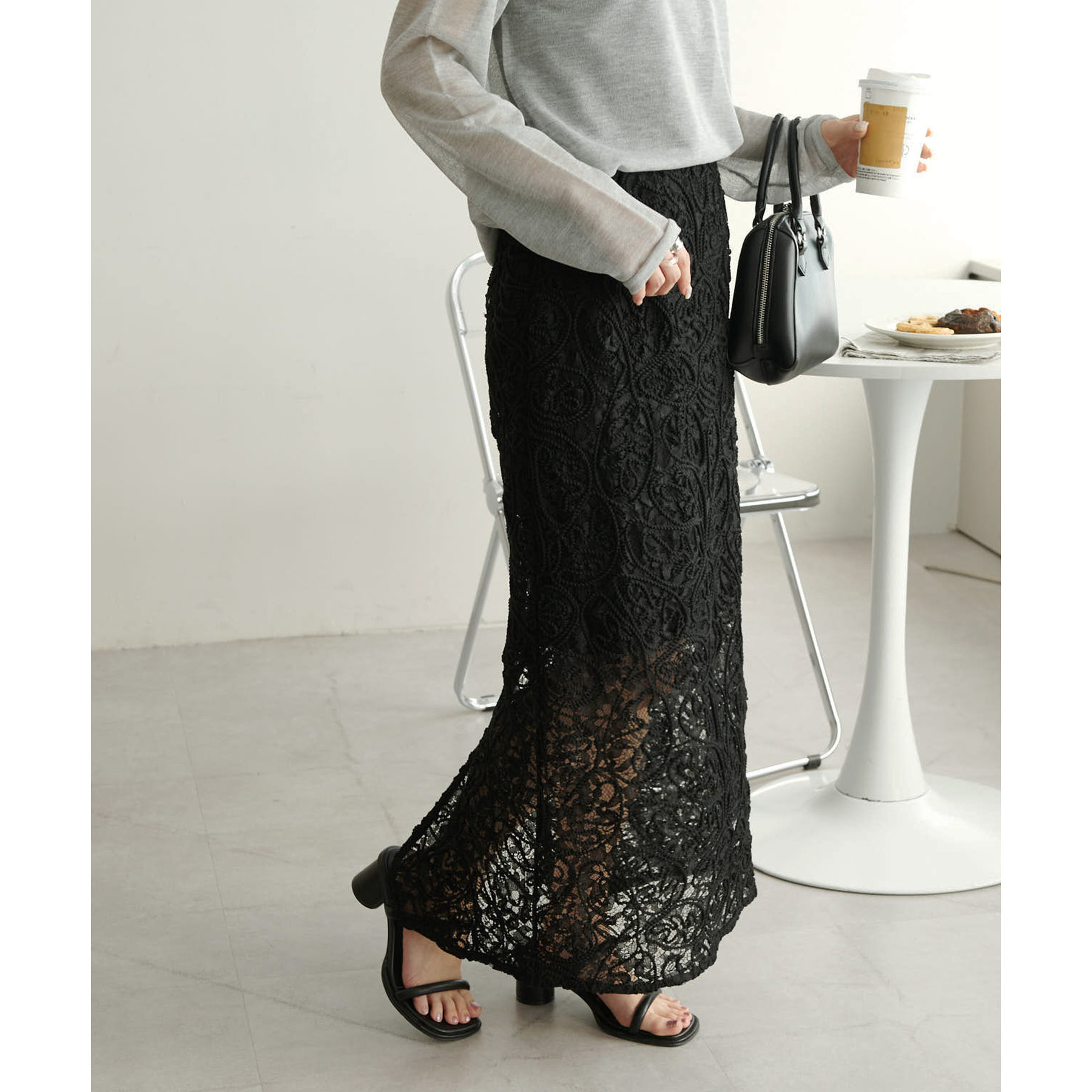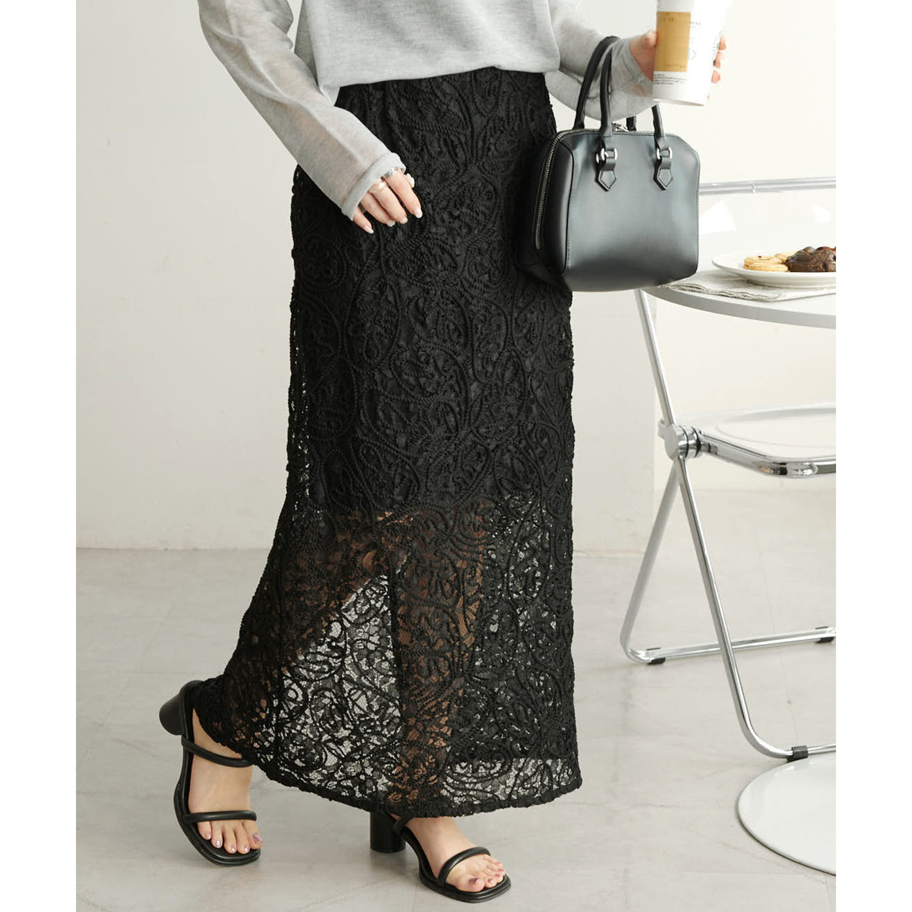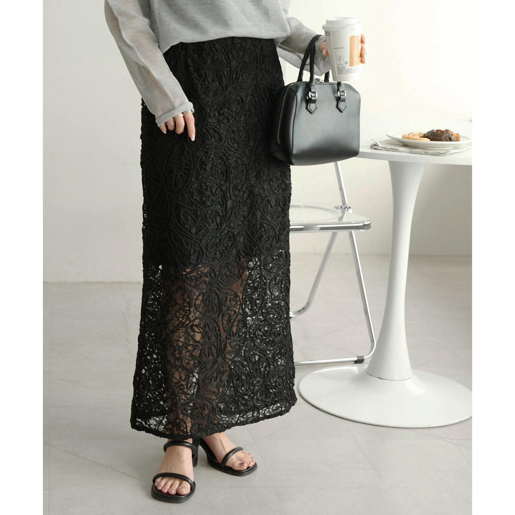 Iラインが綺麗に見えるナロースカートをレース柄に仕上げたことで、華やかな雰囲気を楽しめます♪