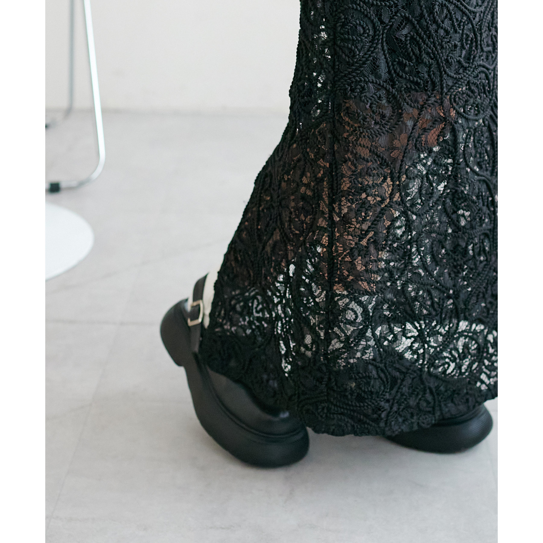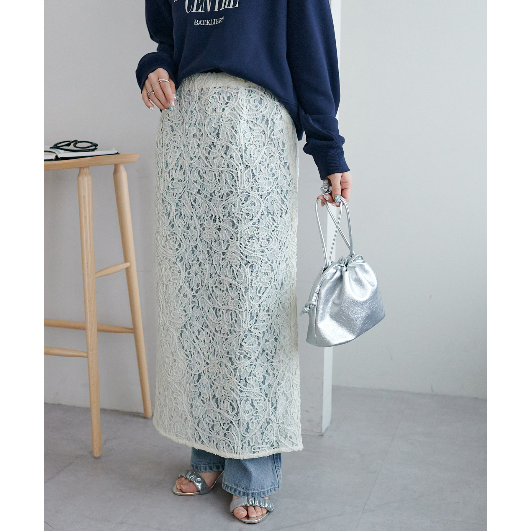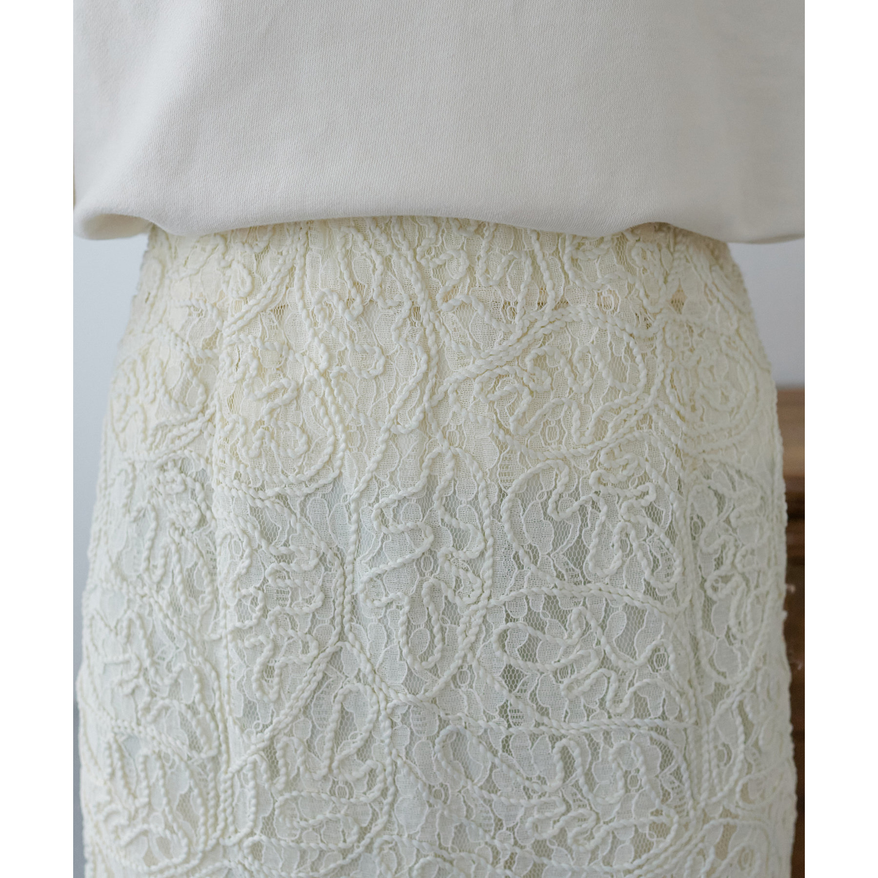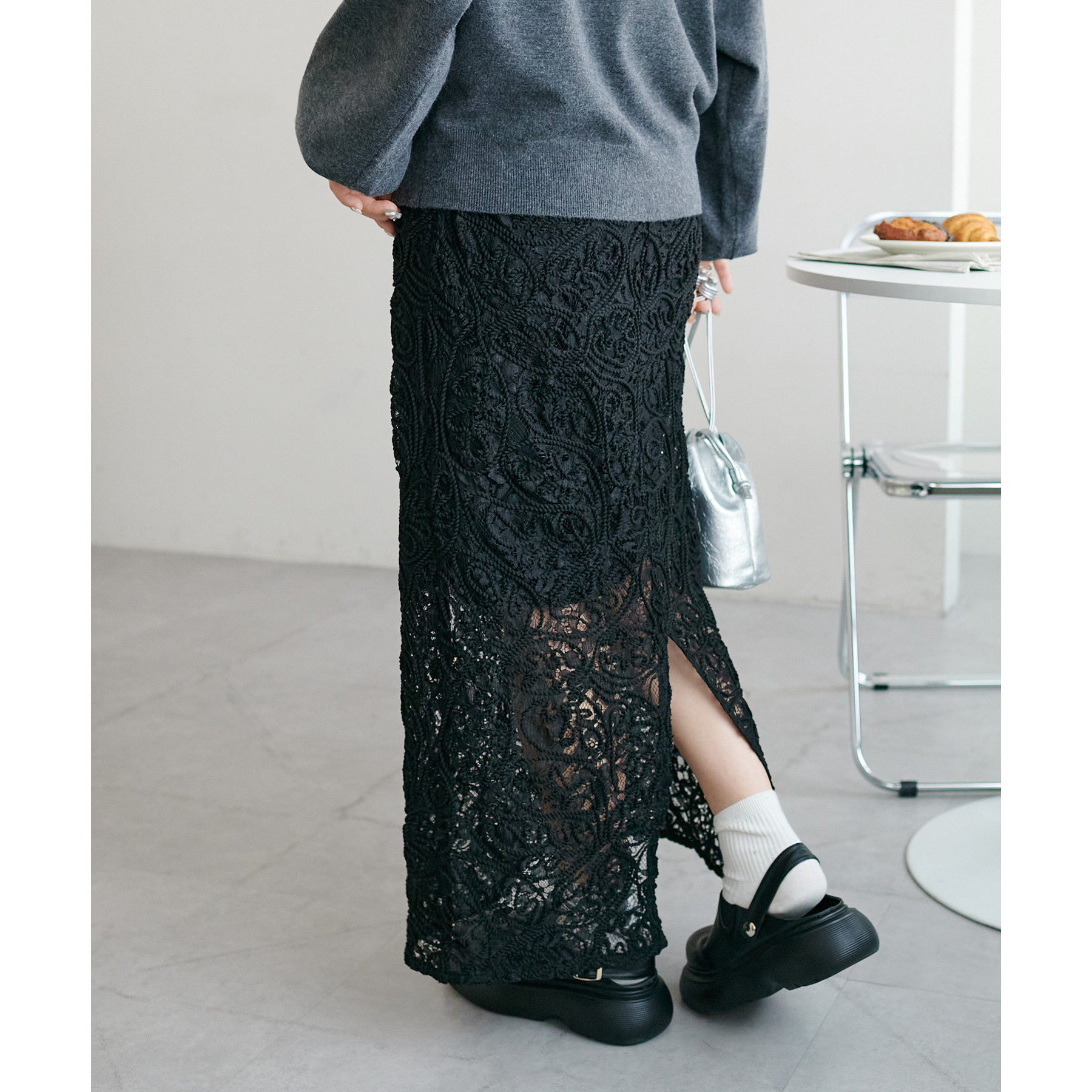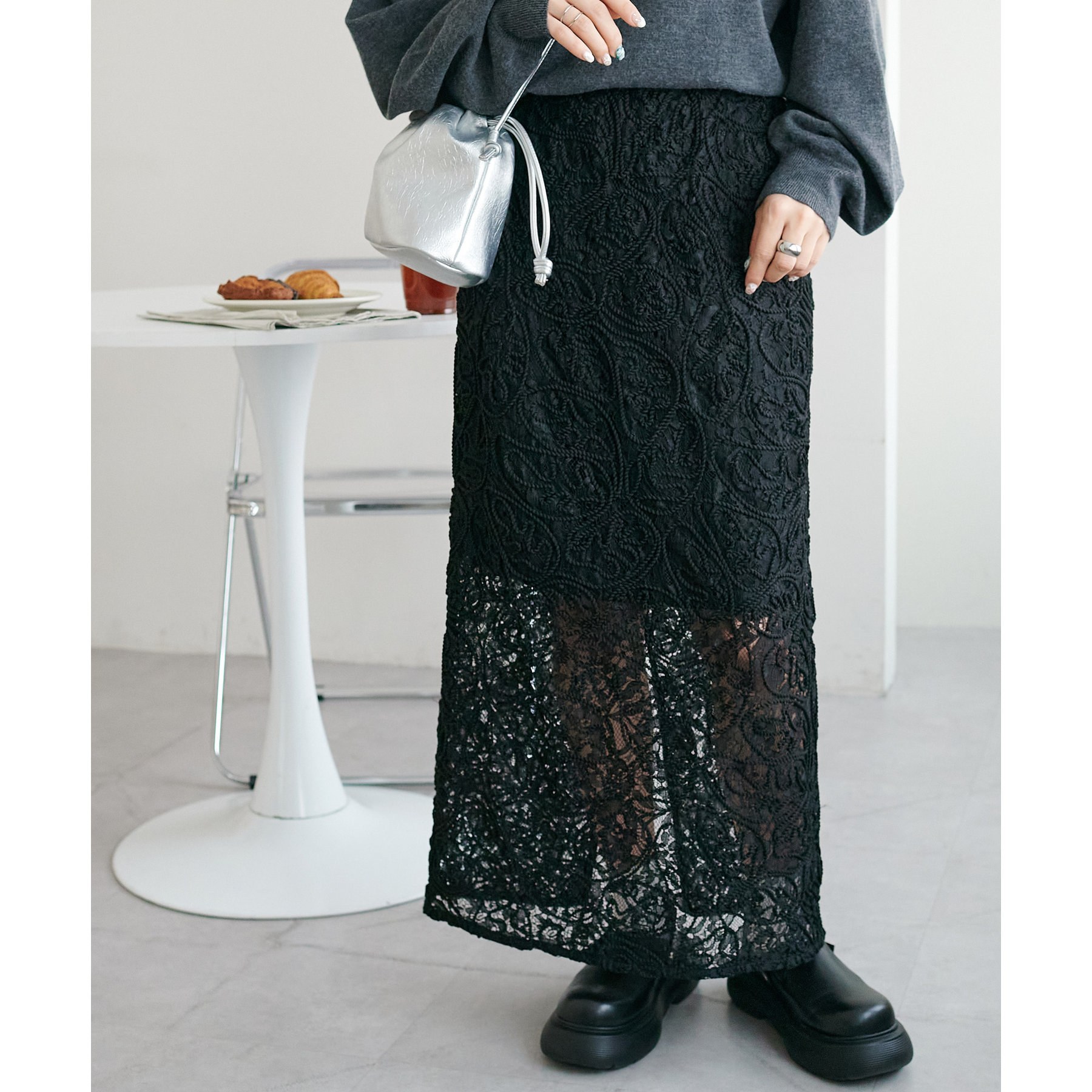 Iラインが綺麗に見えるナロースカートをレース柄に仕上げたことで、華やかな雰囲気を楽しめます♪